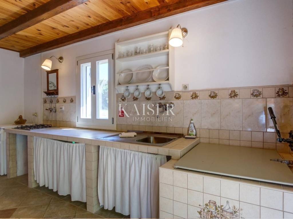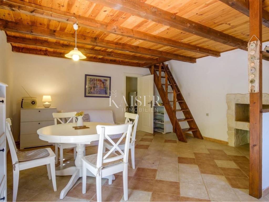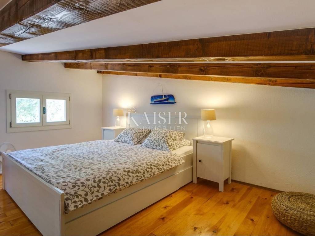 Kaiser Immobilien presents a small stone house in Mali Lošinj, located just 300 meters from the sea in the quiet Zabodarski bay. The house is surrounded by a large Mediterranean garden, ideal for relaxing and enjoying nature. It is equipped with a solar system for electricity and water heating, and has a connection to the water supply network and a septic tank. This detached house is self-sustaining, and also offers an outdoor shower. Considering that the tourist rental has been established for 10 years, there is a possibility of continuing this successful business activity. The house consists of a spacious kitchen with dining room, bathroom, outdoor terrace for socializing, while on the first floor there is one spacious bedroom. This property represents an excellent opportunity for investment in a peaceful environment, just a few minutes from the sea. This property is an ideal opportunity for either living or investment! For all questions, please feel free to contact the agent: Davor Piškulić davor@kaiser-immobilien.hr +00 385 95 583 8240 WhatsApp, Viber