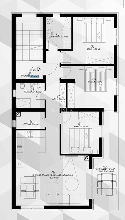 Pula, the oldest and largest city on the Istrian peninsula, is known for its rich history, enchanting Roman monuments such as the impressive Arena and the vibrant atmosphere of a Mediterranean city. Pula's exclusive settlement is Pješčana Uvala, known for its luxury villas, well-maintained beaches and top-notch restaurants. This peaceful oasis provides an ideal setting for relaxing by the sea, away from the hustle and bustle of the city, while also providing quick access to all the amenities and attractions that Pula has to offer. The combination of historical authenticity and modern luxury makes this area the perfect place to live, relax and enjoy the Istrian lifestyle. Kaiser Immobilien presents a luxurious apartment of 95.40 m² located on the first floor of a modern residential building in a prime location. The apartment is accessed by a 10.80 m² staircase that leads to the entrance to a spacious hallway of 8 m². On the right, the hallway leads to a spacious living room with a dining area and an open-plan kitchen of 30.80 m², and behind the kitchen there is a practical storage room of 3.30 m². The apartment has three spacious bedrooms measuring 10.30 m², 13.10 m² and 13.50 m², with the largest room having its own bathroom measuring 5.30 m² equipped with a shower, toilet and window. Two bedrooms and the living room have direct access to a covered terrace measuring 12.60 m², perfect for enjoying the fresh air. In addition to the main bathroom, the apartment has an additional modern bathroom measuring 4.80 m². On the ground floor of the building there is a storage room measuring 3 m² belonging to the apartment and two parking spaces measuring 12.50 m2. The building was built with high-quality materials and is built with foamed professional blocks, without additional plaster, which ensures better thermal insulation and 40% greater vapor permeability compared to classic blocks. All rooms are air-conditioned, and the external air conditioning units are located on the roof to eliminate noise. The air conditioners are high-class from renowned manufacturers such as Mitsubishi, Daikin, Vaillant, Toshiba and Hitachi. Electric underfloor heating provides additional comfort, and the plumbing installations are made of high-quality PEX pipes, while the sewage pipes are silent, which contributes to the peace and pleasant atmosphere in the apartment. The sanitary facilities include Geberit Sigma built-in cisterns and high-class Hans Grohe faucets, while the bathrooms are equipped with floor-level flat showers. The balcony sliding walls are made in a lift-and-slide version in an elegant anthracite color with six-chamber profiles, which ensures superior insulation. The floors are covered with laminate with a minimum thickness of 12 mm and high-class ceramic tiles, while the staircase is covered with stainless steel granite. The facade of the building has 10 cm of polystyrene insulation with a final layer of Baumit silicate plaster, which, in addition to superior energy efficiency, also provides a modern aesthetic impression. Given the prestigious location, the apartment offers a view of the sea, and in the immediate vicinity is the sandy Verudela Bay. The apartments in this building belong to a higher class of construction, surpassing standard projects on the market. The building is further enhanced by a modern glass railing on the balconies, which adds to the luxurious feel and sense of spaciousness. Proximity to amenities: Restaurant - 300 m Café - 700 m Shop - 170 m Sea - 350 m Beach - 350 m Marina - 650 m Pula City Center - 6 km Airport - 11 km Distance to major cities: Pula- Ljubljana: 200 km Pula- Vienna: 580 km Pula- Budapest: 600 km Pula- Prague: 900 km Pula- Munich: 600 km Pula- Zagreb: 264 km The agency's commission for the buyer is 3% + VAT and is paid in the case of purchasing a property, upon conclusion of the first legal act. Interested buyers can view the property only after signing a real estate brokerage contract. ID-CODE: 127-085 If you would like to visit the property in person, please contact: Jennifer Hofmann E-mail: jennifer@kaiser-immobilien.hr Tel: +385-91-515-0887 http://kaiser-immobilien.hr/