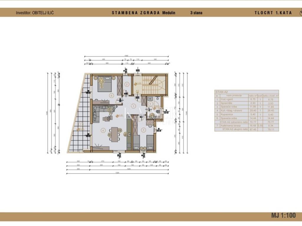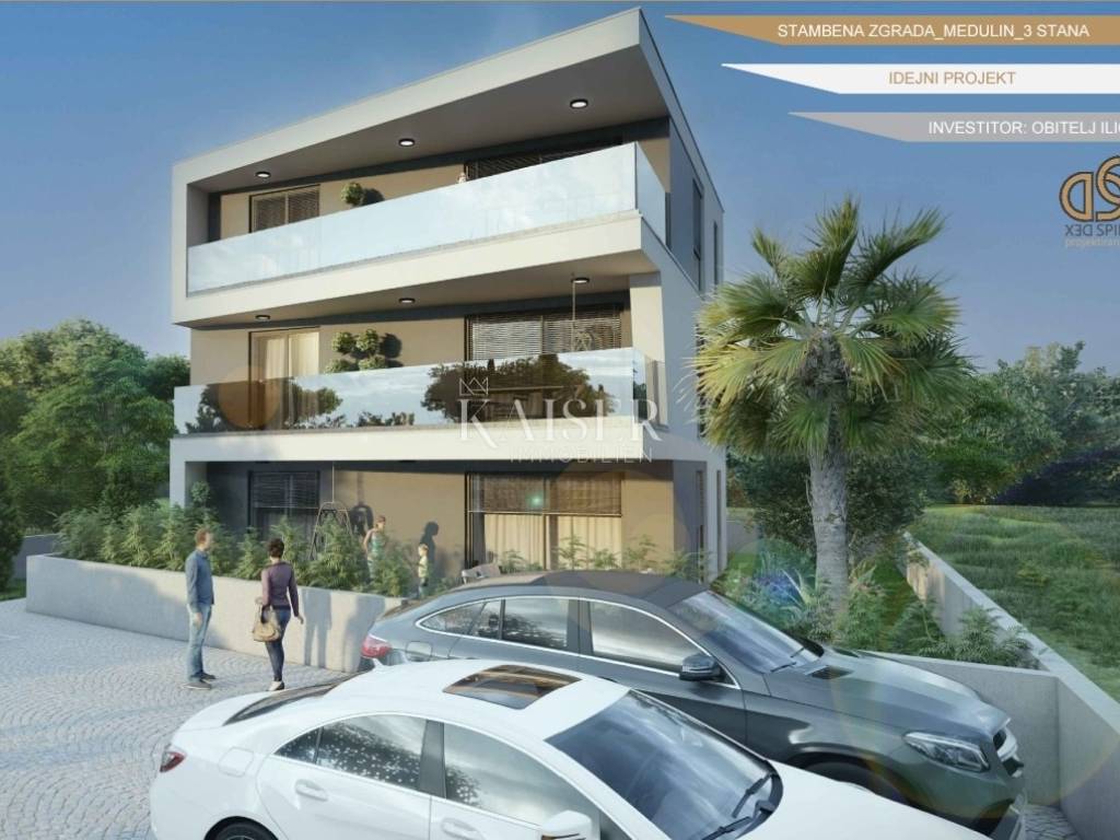 Kaiser Immobilien agency offers an apartment with a garden and parking spaces in Medulin. Medulin is located in the south of Istria, a tourist resort known for its beautiful beaches, clean and clear sea and beautiful nature, rich tourist content. The Medulin Riviera offers unique natural beauty, numerous bays and beaches, rich tourist and sports facilities and an excellent gastronomic offer. Medulin with all its facilities is ideal for family life, as well as for tourist investments. The apartment is located on the first floor of a newly built small residential building whose completion deadline is the end of August 2025. The building is located in the Lokve settlement, less than a kilometer from the sea, a quiet part of Medulin with all the facilities necessary for a comfortable life. The apartment has an area of 70.77 m2, has a large covered terrace of 16.7 m2 and two parking spaces. It consists of a hallway with a wardrobe, storage room, open space living room with dining room and kitchen with access to the terrace, and two bedrooms and a bathroom. The apartment is built to a high standard, equipped with high-quality PVC carpentry, electric blinds, high-quality ceramics, underfloor heating in the living room and bathroom, and two air conditioners. All facilities necessary for life are nearby. Medulin center: 750 m Beach, coast: 750 m Pula airport: 13 km Zagreb airport: 280 km Vienna, Munich: 600 km The agency commission for the buyer is 3% + VAT, and is paid only when the property is sold, when the first legal act is signed. For all further information, please contact: Marijana Cuculić Phone: + 385 98 186 9950 E-mail: marijana.cuculic@kaiser-immobilien.hr