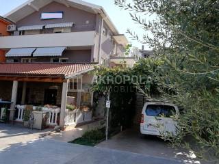 The house was built in 1985 and renovated in 2018 Ground floor - commercial space, equipped as a catering facility, equipped for a restaurant, 100 m2, with parking space. Apartment on the first floor, 100 m2 Apartment on the second floor, 100 m2 Garage 70 m2.