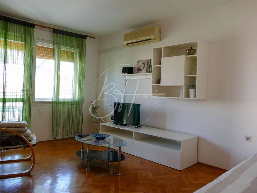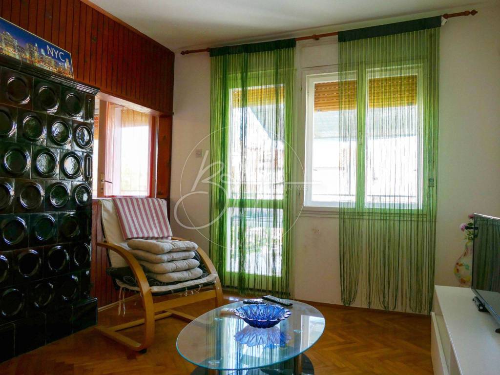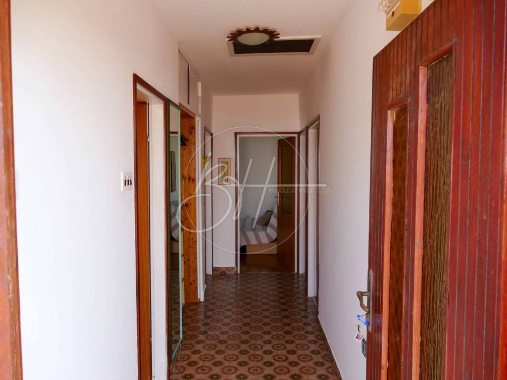 The first floor consists of a hallway, kitchen with dining room and living room, two bedrooms, bathroom, storage room and a spacious balcony with a beautiful sea view.