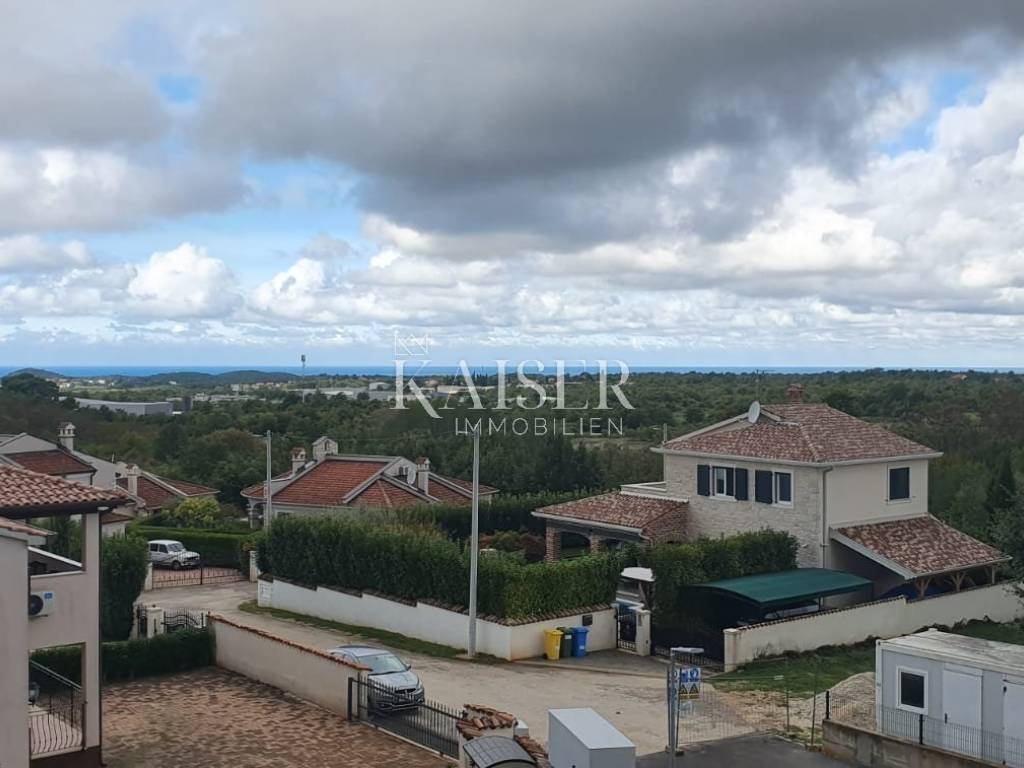 Kaiser Immobilien presents you a new high-quality apartment in a new building, in an excellent location, only 6 km from the city of Poreč, with a view of the sea and its own garden. The place where the apartment is located has a complete infrastructure, shop, school, kindergarten, restaurant, pizzeria... The net area of the apartment is 75 m2, and the total usable area is 86 m2 + garden 196 m2. During the construction, top-quality materials and high-quality equipment were used. The apartment consists of an entrance hall, an open space where there is a kitchen, dining room and living room with access to the balcony, it has two bedrooms, one of which has access to its own balcony, a bathroom and a guest toilet. The apartment is heated and cooled by air conditioning, while the bathrooms and toilets have built-in electric underfloor heating. The price of the apartment includes a storage room and two parking spaces. The garden is charged additionally by agreement. The apartment has a nice long horizontal view of the sea. If you are also looking for an apartment for yourself or your family, contact your agent.
