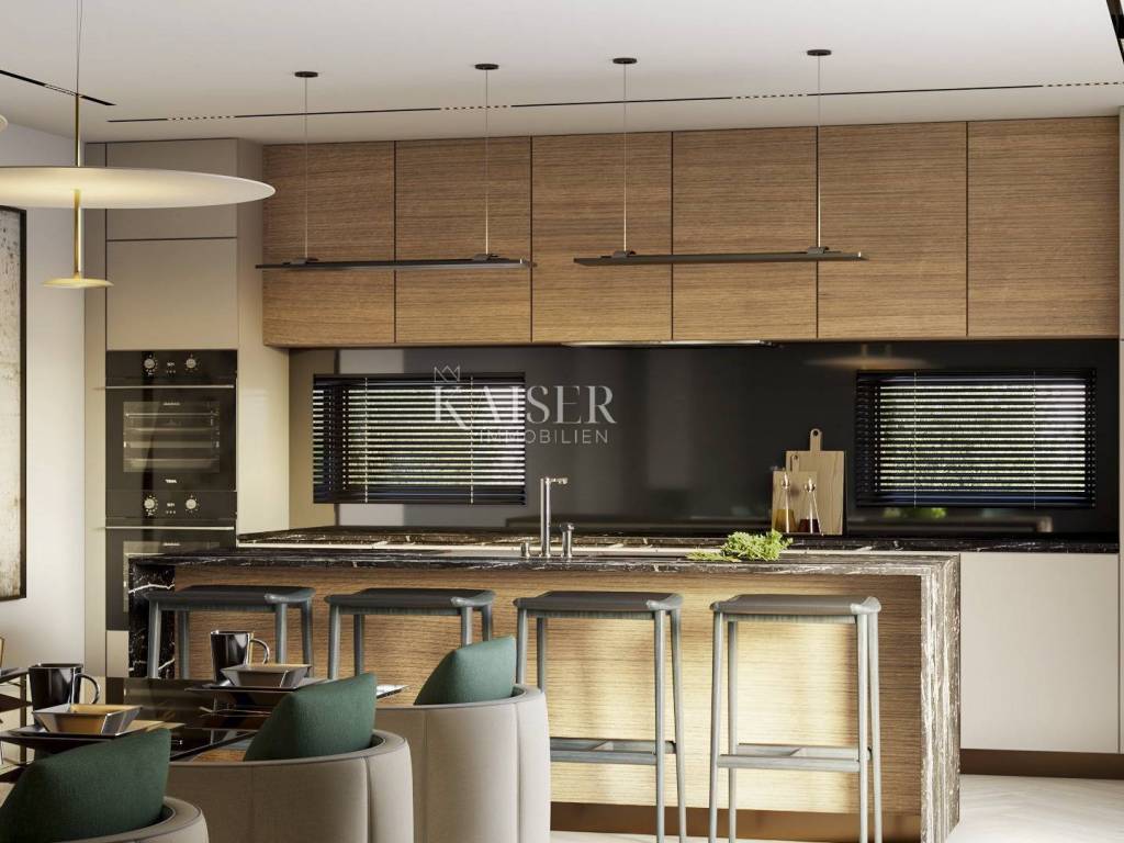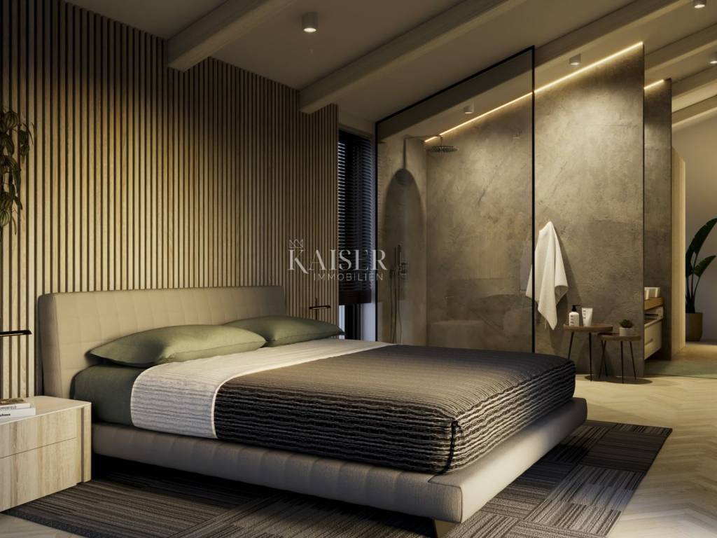 Kaiser Immobilien offers for sale a beautiful and exclusive villa located only three km from the city of Poreč, which is in the completion phase. The villa is located in the suburbs of the city of Poreč, in a very attractive location, and because of this, all the necessary amenities, including the beaches, are only a few minutes' drive away. This exclusive and modern villa is a combination of contemporary Istrian construction with a modern interior. The villa is located on a plot of 1328 square meters on a completely private plot surrounded by a private wall. This luxurious modern villa is decorated with a size of 324 m2 net area, a somewhat unusual appearance and a completely modern and attractive design. The villa consists of a ground floor, a first floor and a roof terrace. The entire concept of the villa is designed with a lot of openings, these will be larger glass walls and windows that will bring sunlight and daylight into your space throughout the day. Entering the villa, we come to the ground floor of the villa, where there is an entrance hall with a space for socializing with a large pool table. From the spacious hall, on the right, you enter the night area, where there is a bedroom with its own bathroom, a storage room and a boiler room, as well as a laundry room and a guest toilet, while on the left part of the ground floor there is a large kitchen with a living room of 62 m2, and a covered terrace. . An internal staircase leads to the first floor, where the central part is dominated by a gym with a sauna, while on the left and right there are 3 bedrooms, each with its own bathroom, as well as a balcony and a covered loggia. The external stairs lead to the roof terrace of 37 m2, where there will be a hot tub and a space for socializing. The spacious garden of 1200 m2 will have a garage, a swimming pool and an outdoor kitchen for enjoying with family and friends. The house will be heated under the floor by means of a heat pump, which will also be used to heat sanitary water. Cooling will be via air conditioners, with one air conditioner in each room. The exterior joinery will be aluminum. The first phase of solar panels will be installed on the roof. There is a well with its own water on the plot, for watering the garden. This house will be sold fully furnished with high-quality and handmade furniture, and the price includes VAT, so if the house is bought by a legal entity (company), they will be able to request a VAT refund. If the house is bought by a natural person, no real estate transfer tax is paid on the purchase price. Distance of the property to the city: Poreč - Pula Airport, 45 km Poreč - Ljubljana, 162 km Poreč - Vienna, 544 km Poreč - Prague, 868 km Poreč - Munich, 565 km If you want this new, modern villa to become your new home. , contact the agent at phone number 00385 923782803, or at the email address: ivana@kaiser-immobilien.hr. Agency commission is 3% + VAT.