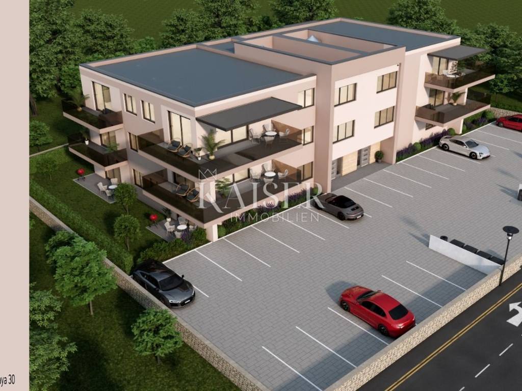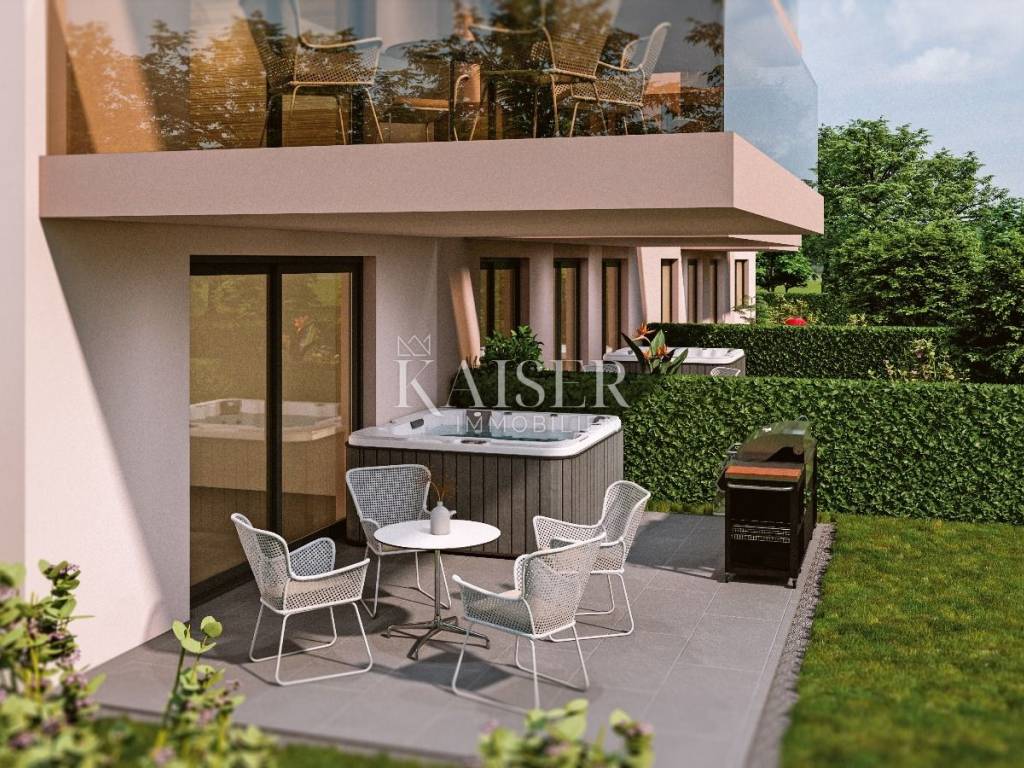 Kaiser Immobilien offers for sale an elegant one-bedroom apartment with a private garden in a modern residential complex, just a 5-minute drive from Poreč and 2 km from the sea. An elegant one-bedroom apartment is for sale, located on the ground floor of a building that is part of a modern residential project with two buildings and a total of 16 top-quality apartments. Floor plan and layout The apartment marked 0.1.A with a total area of 70.73 m² offers 58.18 m² of closed living space. It consists of: - hallway, - spacious living room connected to the kitchen and dining room, - one comfortable bedroom, - bathroom. The apartment is especially valuable due to the covered terrace of 10.83 m², which leads to a private garden of 38 m² - the perfect space for relaxing, socializing or gardening. The apartment also comes with two parking spaces, included in the price. - Quality of construction and equipment - The apartment is designed with an emphasis on functionality and comfort, with plenty of natural light and a harmonious connection of indoor and outdoor spaces. - The building is built to the highest standards: - Caparol facade system with 14 cm of thermal insulation, - PVC windows with triple glazing and mosquito nets, - Mitsubishi Multi-Split heating and cooling system. - The interiors are enriched with top-quality materials: - Italian Florim ceramics, - First-class parquet. Buyers are given the option of choosing the finishing according to their own wishes. Additional benefits - video intercom, - internet and telephone connection, - satellite system, - elevator connecting all floors with storage in the basement. Completion deadline and tax benefits The completion of the works is scheduled for May 2026. As the apartment is sold through a company, the buyer is exempt from paying 3% real estate tax. Why choose this property? This apartment is an ideal choice for: a first home - modern, functional and comfortable, a place to relax - with a private garden and terrace to enjoy, a safe investment - thanks to the attractive location and top-quality construction.