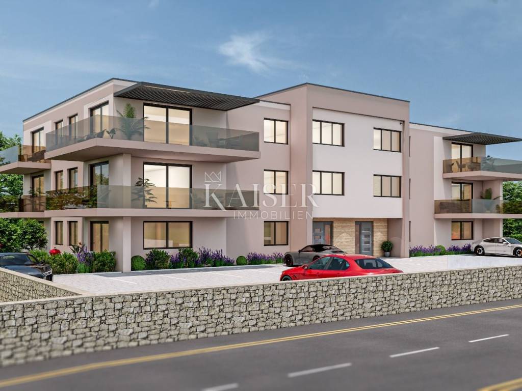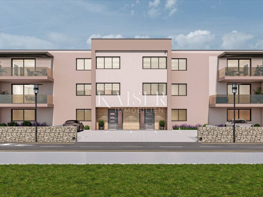 Kaiser Immobilien offers for sale an elegant three-bedroom apartment located on the ground floor of a building just 5 minutes drive from Poreč and 2 km from the sea. The apartment is part of a modern residential project consisting of two buildings and a total of 16 top quality apartments. The apartment marked 2.2.A has a total area of 131.85 m², of which it offers 115.24 m² of closed living space, and the layout includes: - hallway - spacious living room with kitchen and dining room, - three comfortable bedrooms and two bathrooms - two balconies, one covered with an area of 10.83 - loggia - wardrobe - pantry The price also includes two parking spaces. Quality of construction and equipment: Caparol facade system with 14 cm of thermal insulation, PVC windows with triple glazing and mosquito nets, Mitsubishi Multi-Split heating and cooling system for year-round comfort, interiors equipped with top quality materials - Italian Florim ceramics and first-class parquet. The apartment is additionally equipped with a video intercom, internet and telephone connection, satellite system, and the building has an elevator that connects all floors with the basement, which also contains the associated storage room. Completion of the works is planned for May 2026. The buyer is exempt from paying 3% real estate tax because the apartment is being sold through the company. This property represents an excellent opportunity - whether as a first home, a holiday home or a secure investment. The combination of modern architecture, privacy and functional outdoor space makes this apartment special on the market. If you are looking for a new apartment in an attractive location, please contact us with confidence at: Phone: 00385923782803 Email address: ivana@kaiser-immobilien.hr. Seller: Ivana Gašparini. The agency fee is 3% + VAT, and is charged with the first legal act.