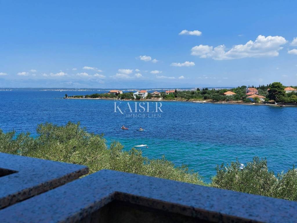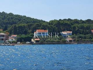 Kaiser Immobilien puts on the market a detached house in the first row to the sea on the island of Ugljan. The floor plan of the house is basement + ground floor + first floor, beautiful intimate garden of 3400 m2, garage of 30 m2, laundry room, tavern. The property consists of two apartments with large terraces and a wonderful view of the sea. Very good connection with the continent, the airport and attractive tourist locations, which makes this property a very attractive investment for tourism or private use. It is possible to build buildings and other uses on the plot. Potential for building, for example, a hotel with up to 80 beds or 2 detached residential buildings with a total of 12 apartments. Open view of the sea and Zadar hinterland.
