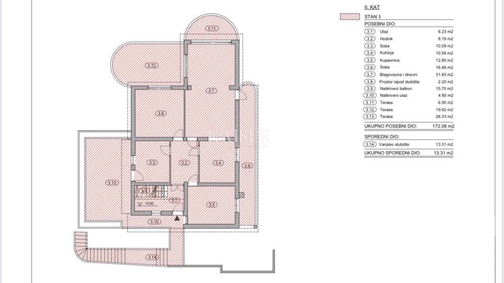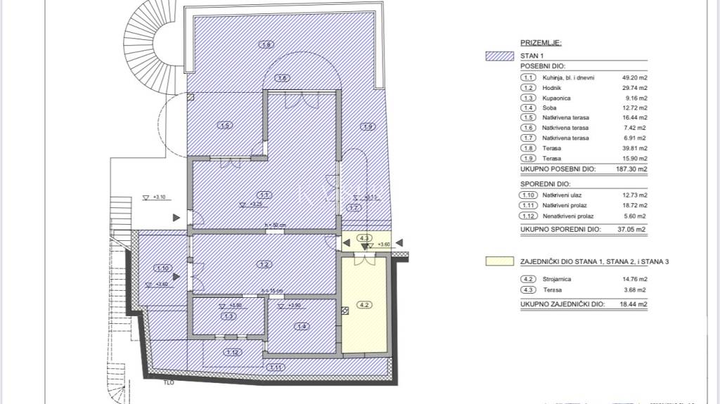 The total area of ​​the property is 205.35 m2, the net area taking into account the relevant coefficients is 155.34 m2.