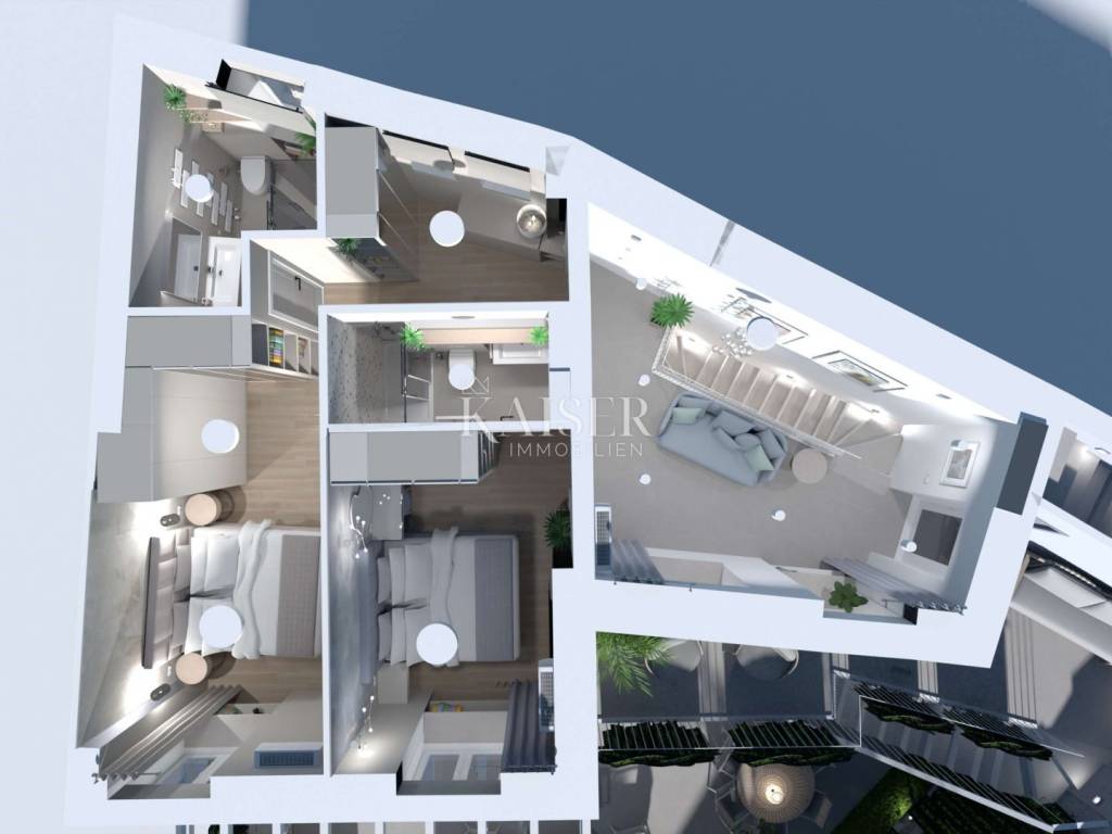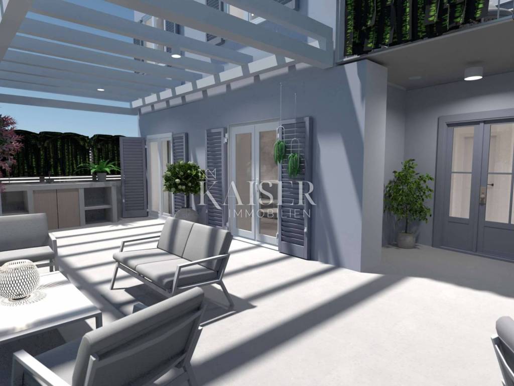 The island of Lošinj, located in the Kvarner Bay, is a true paradise for all lovers of natural beauty, crystal clear sea and sun. Known for its beautiful beaches, Lošinj offers a variety of opportunities for relaxation and enjoyment. From hidden coves with breathtaking blue waters to wide pebble beaches, every visitor can find their perfect place under the sun. Kaiser-Immobilien mediates the sale of a beautiful newly built luxury apartment based on an intelligent house of 146 m2 of living space, located in a quiet location 50 meters from the main promenade of Mali Lošinj. This apartment is ideal for anyone who wants to enjoy a luxurious life by the sea, surrounded by natural beauty and unforgettable views, and for those who know how to appreciate peace, nature and a sophisticated lifestyle. The apartment is located in a building with 2 residential units, with a modern architectural solution, high standard and high-quality materials. It is perfect for a family or as a luxury apartment for vacation and rental. The outdoor terraces are perfect for relaxing after a day spent on the nearby beaches, diving, hiking in the nearby hills or cycling, while the panoramic view of Lošinj harbor and Augusta Bay is literally breathtaking. Distance from the property to: • Rijeka Airport, 98 km • Zagreb Airport, 263 km • Ljubljana, 219 km • Vienna, 600 km • Prague, 932 km • Munich, 628 km This apartment represents an ideal opportunity for those who want to enjoy the Mediterranean lifestyle or invest in a property on one of the most beautiful islands in the Adriatic Sea. Do not miss the opportunity to become the owner of this beautiful property and secure your own piece of Mediterranean paradise! Agent recommendation! The agency's commission for the buyer is 3% + VAT and is paid in the case of purchasing a property, upon conclusion of the first legal act. For more information, please contact the agent: Ladislav Kreiner e-mail: ladislav@kaiser-immobilien.hr tel: +420 602 405298