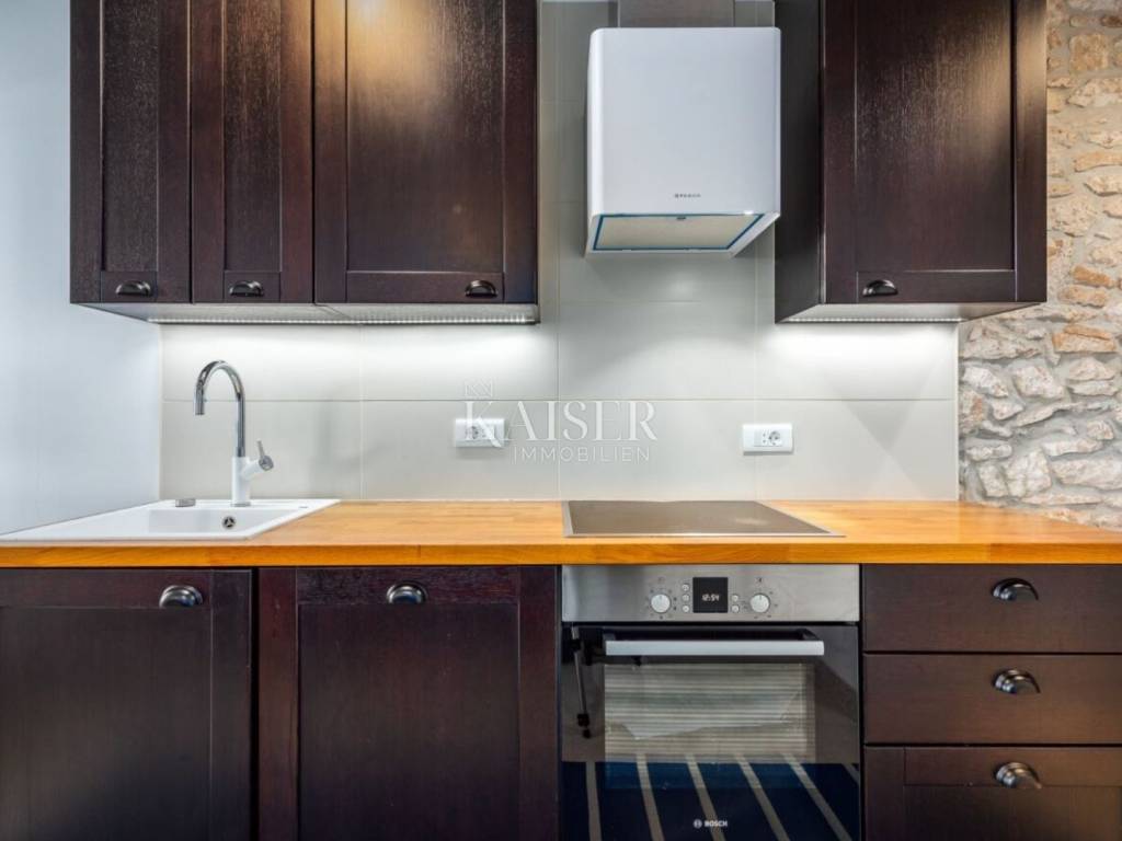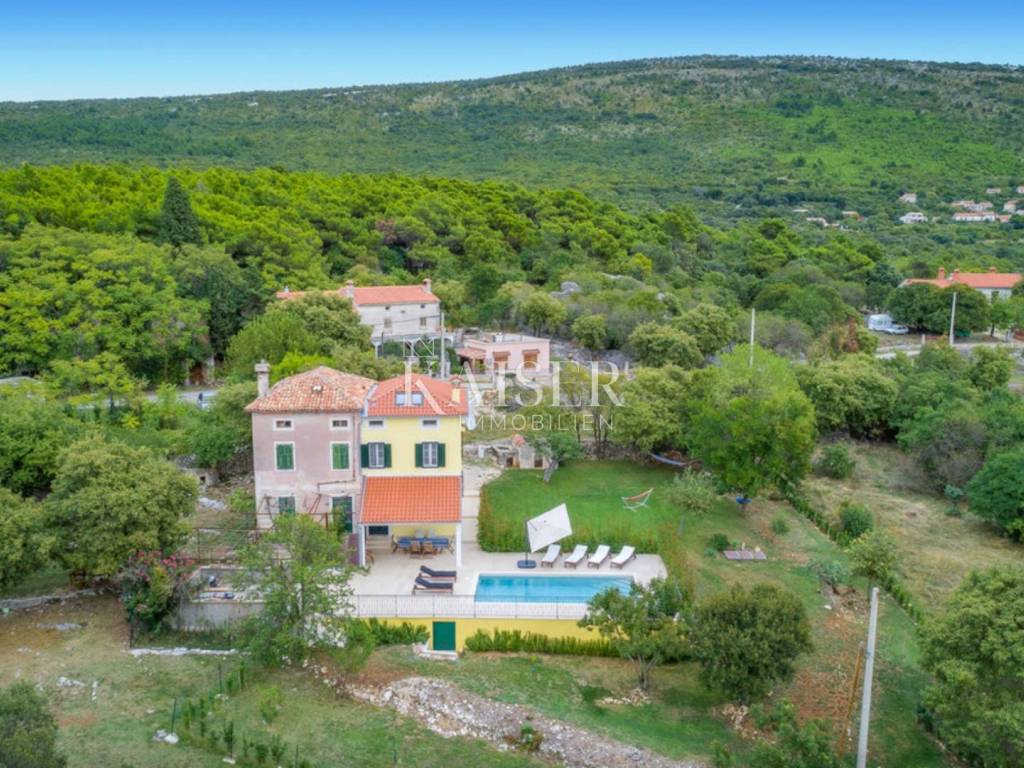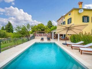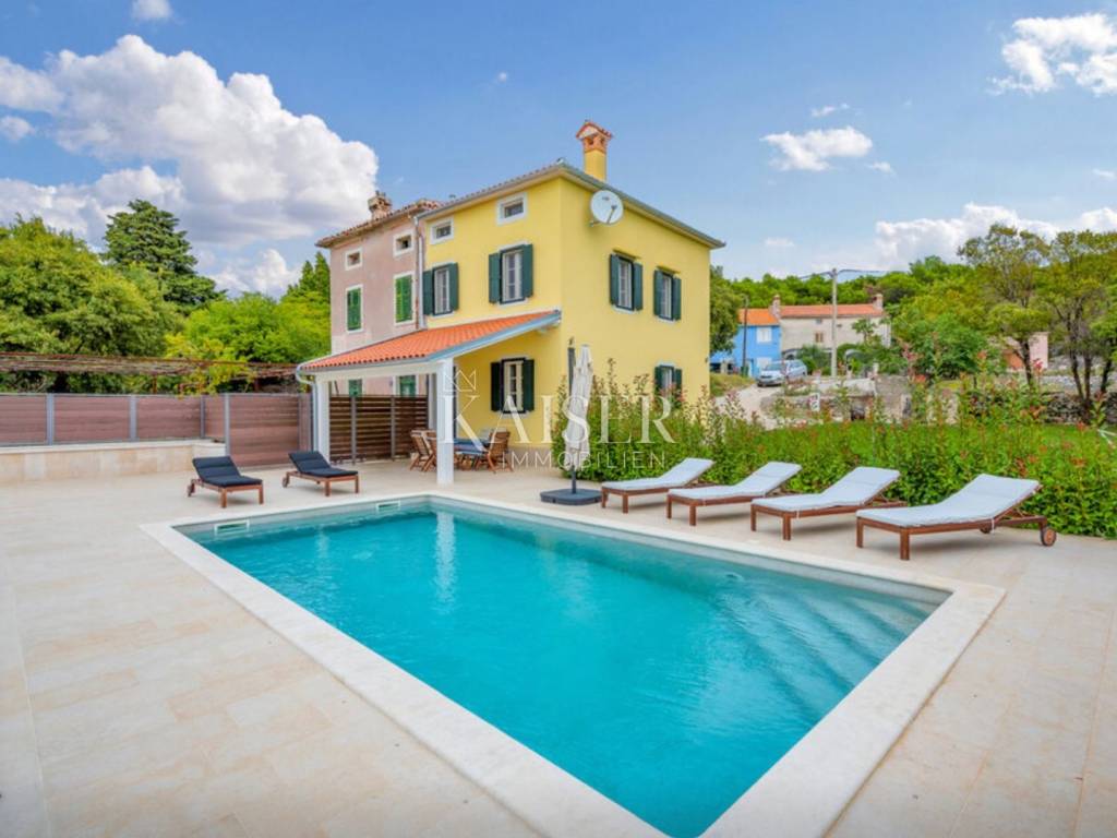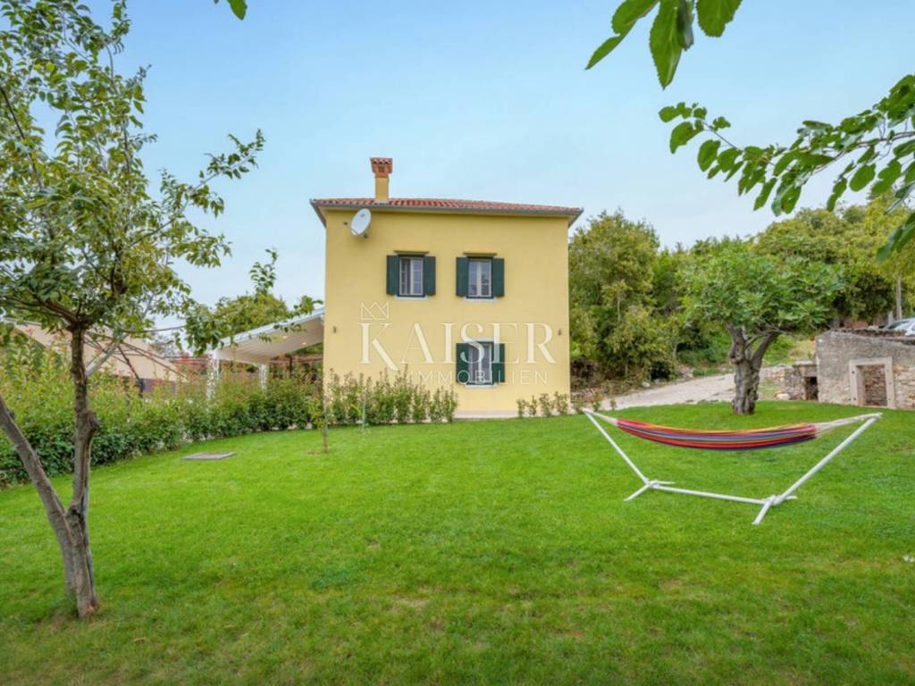 Kaiser Immobilien presents a unique opportunity to purchase a beautiful authentic house with a swimming pool. The elegantly renovated stone semi-detached house with a swimming pool is located in the quiet Istrian village of Trget, on the eastern coast of Istria, only 14 km from the historic town of Labin. The distance to the first beach, or rather a bay with crystal clear sea, is only 3 km, which makes this property a perfect combination of peaceful surroundings and proximity to the sea. This peaceful village, surrounded by greenery and untouched nature, provides an idyllic atmosphere for a pleasant family everyday life or a luxurious vacation in privacy. It consists of 120 m2 of living space distributed over three floors. On the ground floor of the house there is a spacious and contemporary living room that is harmoniously connected to the modernly equipped kitchen and dining room, creating an open and bright environment ideal for family gatherings and relaxation. It also offers a bathroom and direct access to the yard with a swimming pool, taking advantage of the functionality and comfort of the space. Upstairs there are two comfortable and carefully decorated bedrooms equipped with air conditioning units, and they are complemented by a sophisticated bathroom with a modern design that provides an additional level of comfort and practicality. The attic of the house is adorned with an intimate bedroom whose special atmosphere stems from warm wooden details and an abundance of natural light, and what makes it unique is the view of the sea and the surrounding Istrian landscape. On the ground floor and in all bathrooms, underfloor heating is installed, which ensures superior comfort and pleasant warmth during the colder months, while a heating and cooling system via air conditioning units has been implemented throughout the house, which allows perfect temperature regulation at any time of the year. Solar system installations have been installed on the roof. The property is located on a spacious plot of land totaling 1,285 m², providing plenty of space for additional facilities and horticultural landscaping or the development of new ideas, which gives the house great investment potential. The traditional building and indigenous elements combined with Mediterranean garden plants and an intimate swimming pool create a pleasant atmosphere throughout the year. The centerpiece is an elegant swimming pool surrounded by a paved sundeck and comfortable loungers, while below is a covered area ideal for socializing and dining outdoors. The landscaped and shaped garden offers aromatic herbs and indigenous trees of this region. The location is excellent in terms of year-round living, the city center is a 15-minute easy drive away, while the famous tourist destinations of Rovinj, Fažana and Medulin are only an hour's drive away. Poreč and Umag, as well as the city of Rijeka, are located an hour and 30 drive away. For more information, please feel free to contact the agent. Ana Beović ana@kaiser-immobilien.hr +385 91 618 3332