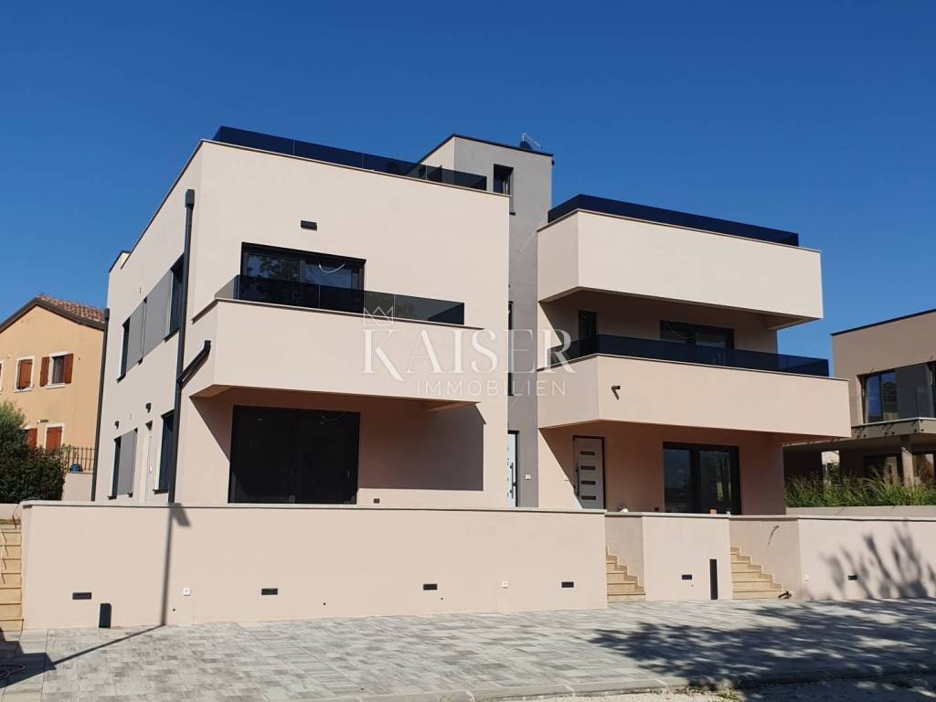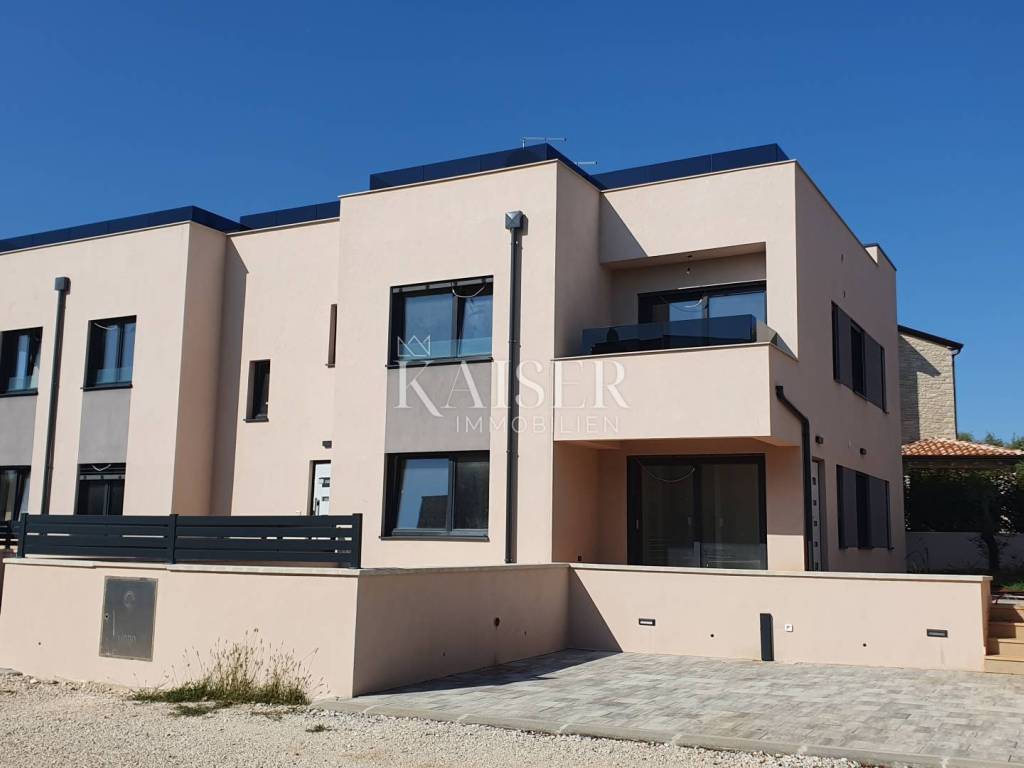 Beautiful apartments in a new building - a prestigious location in Poreč Kaiser Immobilien offers for sale luxury apartments in a modern new building, located in one of the most sought-after and prestigious parts of Poreč. The project includes two elegant buildings, each with a total of four residential units, carefully designed to provide comfort, functionality and high quality of living. The buildings are located in a quiet, newly built part of the settlement, surrounded by new buildings and modern infrastructure, which makes this location particularly attractive for both family life and investment in tourist rentals. Layout of apartments in buildings The apartments on the ground floor have their own gardens that provide privacy and the opportunity to enjoy the outdoors. The apartments on the first floor have spacious roof terraces, ideal for relaxing or socializing with a view of the surroundings. Apartment A - ground floor Apartment A is for sale, which is located on the ground floor. Apartment area: 106 m² net Land area: approx. 100 m² (part paved, part grassy area with irrigation water) Parking spaces: 2 private parking spaces Entrance: private entrance through a portun Layout of the rooms: - spacious hallway, - three bedrooms, - two bathrooms with toilet, - basement / storage space, - private yard with a decorated area for socializing and relaxing. Quality of construction and equipment: The apartment will be equipped to the highest standards: - underfloor heating via heat pump, - first phase of air conditioning installed, - high-quality parquet in the living rooms and bedrooms, - top-quality ceramic tiles in the bathrooms and kitchen. This ground floor apartment represents the perfect combination of modern design, practicality and luxury. Thanks to its quiet location and proximity to all amenities, it is ideal as a family home or as an investment with great potential for long-term and tourist rental. When purchasing this apartment, the buyer does not pay real estate transfer tax. Dear clients, it is possible to view the property only with a signed brokerage contract, which is the basis for further actions related to the purchase and sale and the collection of commission, all in accordance with the Real Estate Brokerage Act. The KAISER IMMOBILIEN agency, as an authorized real estate broker, charges a brokerage fee of 3% + VAT from the buyer and seller for the brokerage service at the time of concluding the Preliminary Agreement or Purchase Agreement. Telephone: 00385923782803 Email address: ivana@kaiser-immobilien.hr. Seller: Ivana Gašparini.