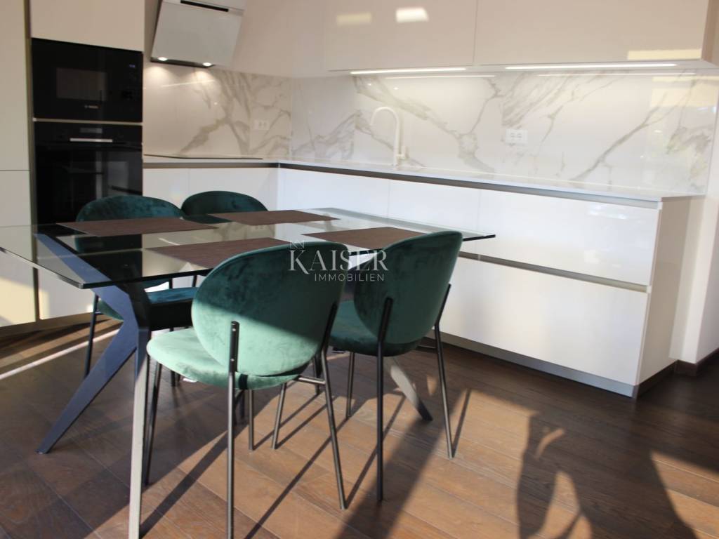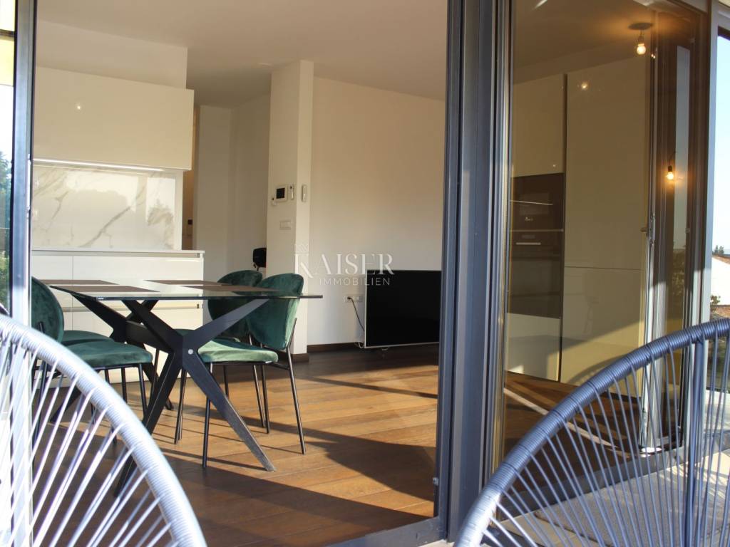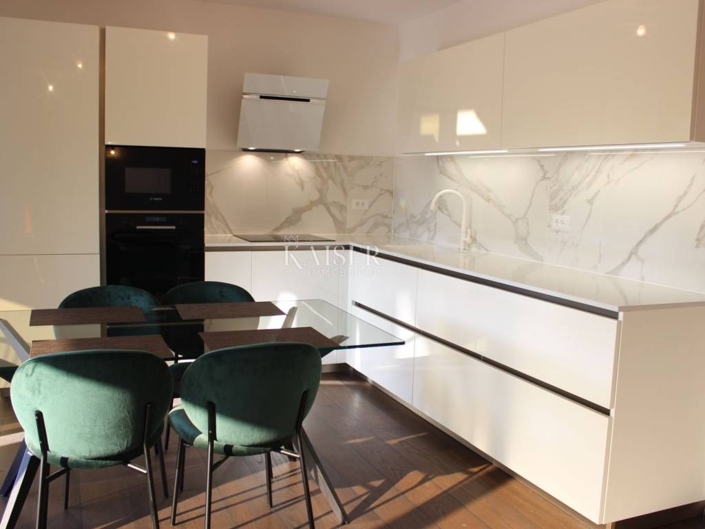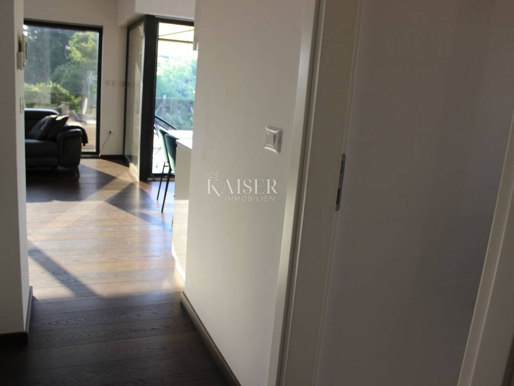 Kaiser Immobilien presents you a beautiful luxury apartment in the most beautiful part of the city of Poreč. The apartment is located just 200 meters from the beach, in a newer building on the first floor, with a view of the sea and the marina. This beautiful luxury apartment has an area of 78.17 m2 apartment + 19.28 m2 storage room and parking in the garage + 13.50 m2 outdoor parking. The apartment has 1 outdoor parking space, in front of the building, 1 parking space in its own garage and storage room. The parking space in the garage is connected to the apartment directly through the building, which makes it easier to get around during rainy days. The apartment building is of unique quality and modern construction and is located just a few minutes walk from the very center of the apartment and all city amenities. Each apartment is equipped with BOSCH underfloor heating on city gas and special parquet for underfloor heating. The gas is separated for each apartment and has separate meters in front of the building. New construction with internal and external thermal and sound insulation. Three-layer ALU Gutmann joinery with thermal insulation glass, electric roller shutters, gas-filled thermal insulation. The common areas of the staircase are equipped with an Otis elevator and a marble staircase with a glass handrail. Dear clients, it is possible to view the property only with a signed brokerage contract, which is the basis for further actions related to the purchase and sale and the collection of commission, all in accordance with the Real Estate Brokerage Act. The KAISER IMMOBILIEN agency, as an authorized real estate broker, charges a brokerage fee of 3% + VAT from the buyer and seller for the brokerage service at the time of concluding the Preliminary Agreement or Purchase Agreement. Telephone: 00385923782803 Email address: ivana@kaiser-immobilien.hr. Seller: Ivana Gašparini.