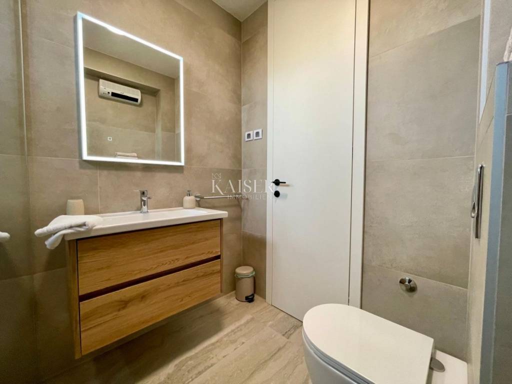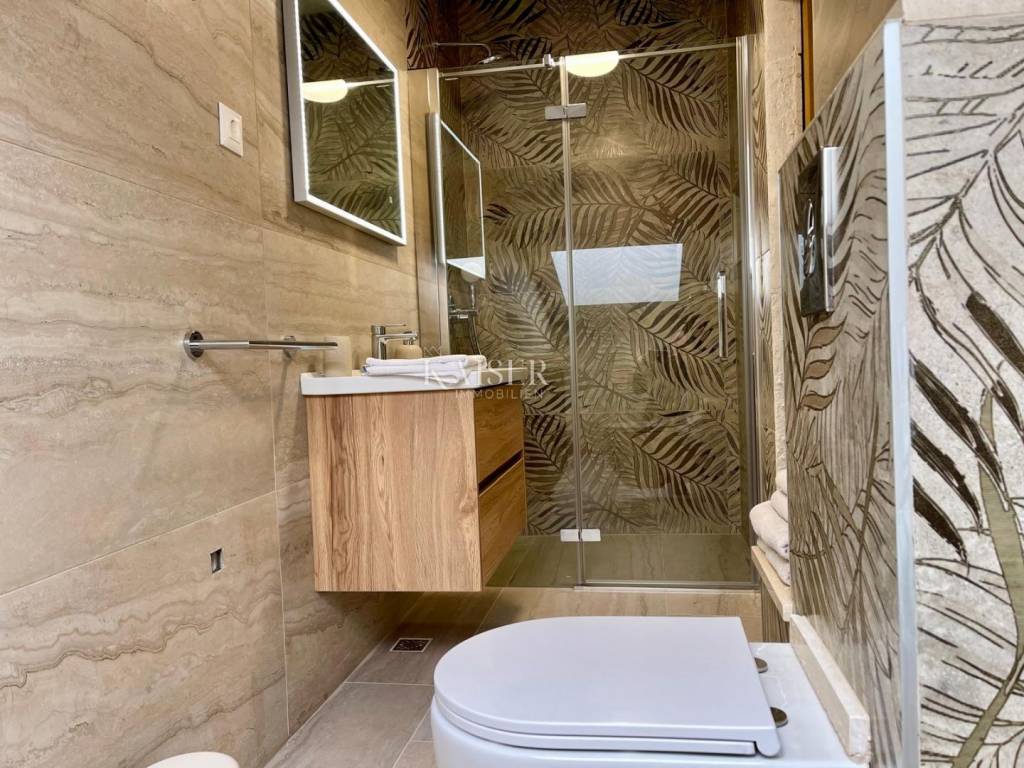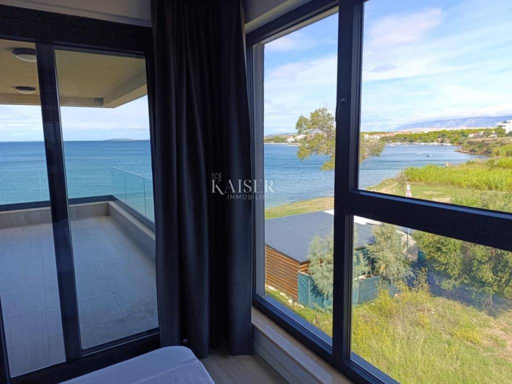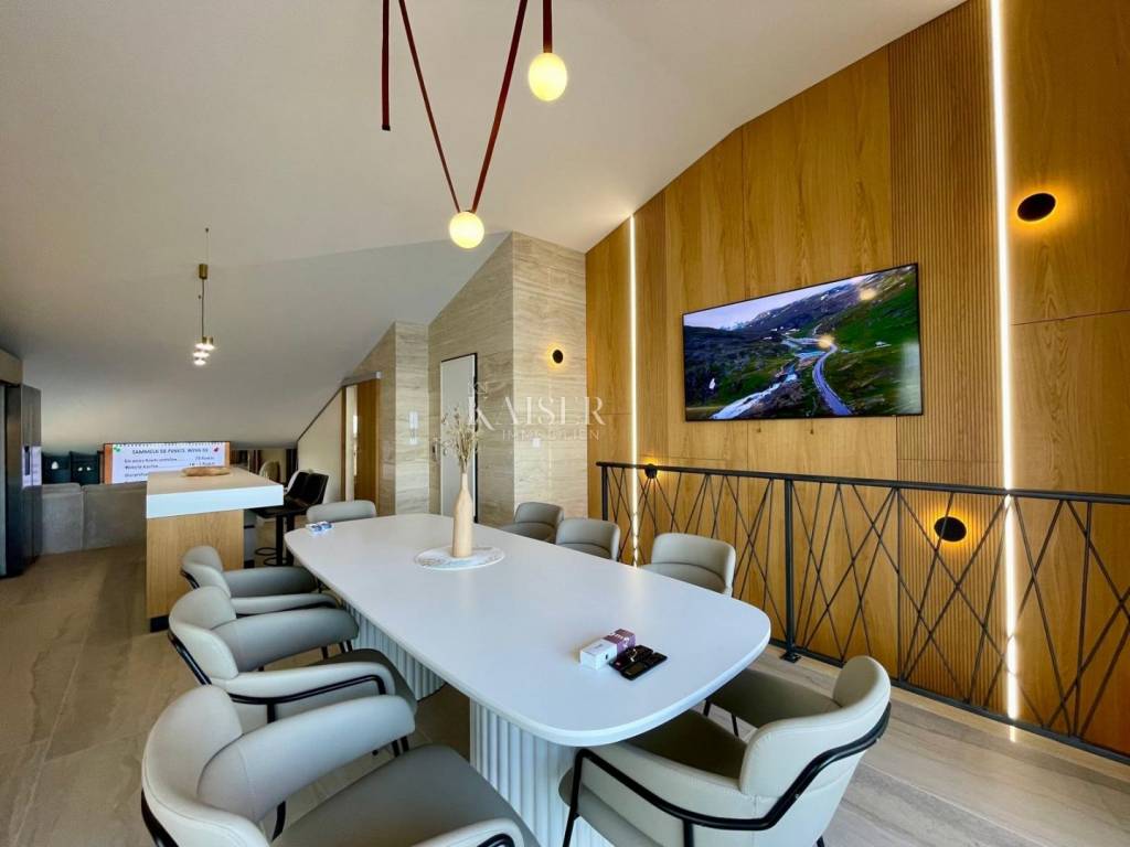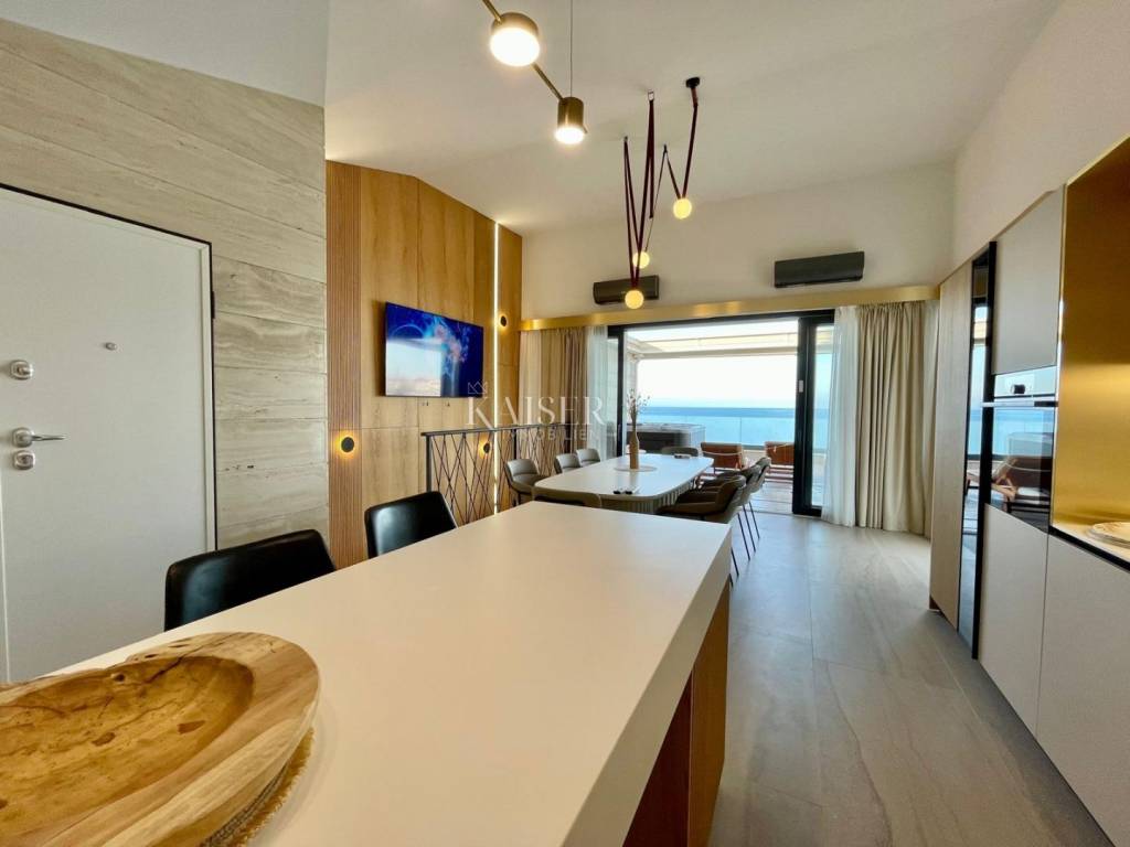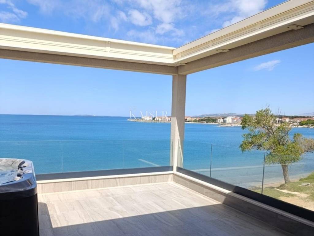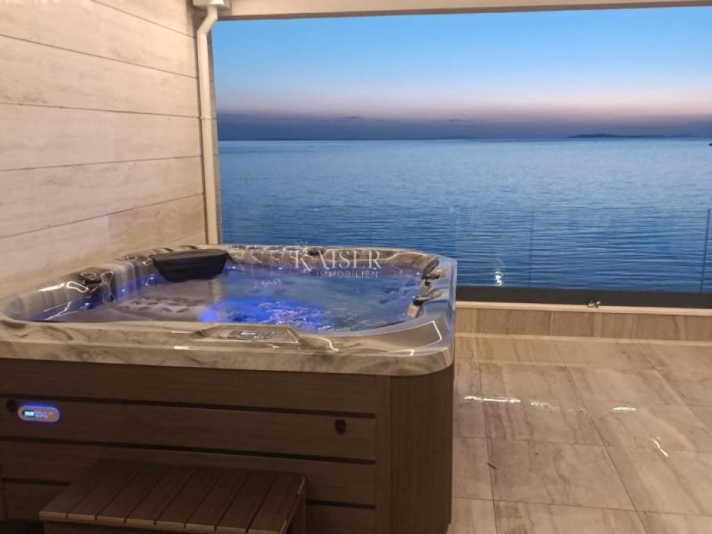Kaiser immobilen mediates in the sale of a luxuriously furnished penthouse apartment in a unique location - first row from the sea, on the island of Pag. The luxuriously furnished apartment, with a total living area of 118m2, spreads over two floors, is located on the second floor and the gallery. Access is provided by an elevator directly to the apartment, but also by a staircase. On the lower floor after the entrance area and hallway there are three bedrooms, two bathrooms, a technical room. All three bedrooms have balconies, two of which have a spacious balcony of 18m2 with an open view of the sea and islands. The spectacular view of the sea is further enriched by the internal staircase leading to the gallery where there is an open-concept living area that includes a living room, kitchen and dining room, and a spacious terrace with a jacuzzi that seems to float above the beautiful blue of the sea and sky. The apartment also includes one parking space and a storage room in the basement of the building. Top quality materials and equipment were used in the construction and furnishing, the building is completely reinforced concrete, 10cm thick rock wool was installed as insulation, which in combination with high-quality PVC joinery results in exceptionally high energy efficiency and earthquake-resistant properties of the highest order. High-quality sanitary ware, top-quality travertine porcelain on the floors, custom-made furniture, appliances from renowned manufacturers, all of which make this apartment a desirable and eye-pleasing choice, and a comfortable temperature in all rooms is provided by a Sinclair split system. The apartment is sold fully equipped and furnished, all documentation in order. This is a property located in a unique location, and the sea view from almost all rooms is difficult to describe in words. An ideal choice for escaping from the hustle and bustle of city life and choosing a place to live on the Mediterranean, or as an investment in tourism. The agency's commission for the buyer is 3% + VAT and is paid in the case of purchasing a property, upon conclusion of the first legal act. ID CODE: 105-271