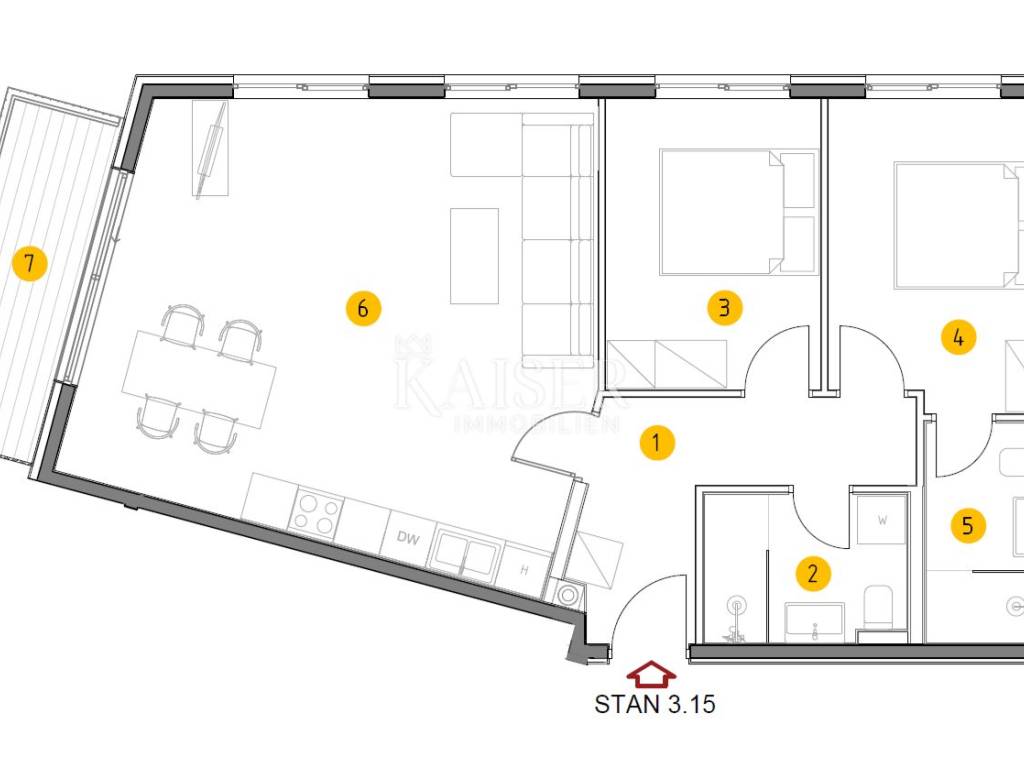 Umag in the northwest of the Istrian peninsula exudes the special charm of a Mediterranean town, in an area where the sea and land offer a wealth of opportunities for adventure, sporting experience and a wealth of tradition. The fertile Istrian soil and delicacies, crystal clear sea, mild Mediterranean climate and proximity to the hilly interior of Istria with cycling and trekking trails - make Umag an ideal destination throughout the year - for active holidays, excursionists and residents. Kaiser Immobilen offers a modern and functional apartment in a new building. The apartment is located in Umag, in the immediate vicinity of all important facilities; shops, kindergarten, school, health center, sports fields, cafes and restaurants. It is also within walking distance of the first city beaches, the city center and promenades, which makes it an ideal choice for living both for young working families and for those looking for rest and peace. This modern and functional two-bedroom apartment in a new building equipped with elevators is located on the third floor and consists of a spacious living room with kitchen, two bedrooms, one of which has its own bathroom, an additional shared bathroom and a hallway, all with a total area of 71m2. The apartment also has a balcony with a beautiful view of 6m2, a functional storage room of 3m2 and a parking space in the garage of 12.5m2. The load-bearing system of the building is entirely designed from reinforced concrete monolithic construction, interfloor panels. The partition walls inside the apartments are made of double-thick plasterboard linings (W112) with additional thermal and sound insulation. The facade lining is provided in the ETICS system with 10 cm thick thermal insulation. The external facade openings are closed with a high-quality multi-chamber PVC profile system. All apartments have high-quality multi-split heating and cooling systems whose operating characteristics ensure maximum comfort and economy. Each apartment has its own water and electricity meter. Sanitary water is prepared via an electric boiler. All apartments have telephone, antenna, TV and internet connections and a built-in intercom installation with video intercom. The highest quality materials and built-in equipment make the apartment extremely comfortable to live in, but also a quality solution for maintaining the value of the investment. In addition to the aforementioned apartment, we offer, within the same property, a number of one-bedroom and two-bedroom apartments with different room layouts and square footage, all of which provide high quality living in a modern new building in a unique location close to all amenities. The apartments, located from the ground floor to the third floor, are vertically connected with elevators and staircases from the parking level to the entrance to the apartments. Modern and comfortable apartments on the upper floors have spacious balconies or loggias, while the apartments on the ground floor have spacious terraces with a garden. All apartments also have functional storage rooms. Each apartment has a secured parking space, with some apartments having a parking space in the garage, and some apartments having a covered parking space. Some apartments also have 2 parking spaces available. Distance: Pula Airport - 80 km Ljubljana - 140 km Munich - 540 km Vienna - 520 km Prague - 850 km The apartment is under construction, and the planned completion of the works is scheduled for summer 2025. The purchase price includes VAT, so buyers are not required to pay real estate tax. The agency's commission for the buyer is 3% + VAT. The commission covers all services related to the purchase and is paid upon conclusion of the first legal act. We are at your disposal for any additional information about this and other apartments on offer. Damir Mlacović damir@kaiser-immobilien.hr http://kaiser-immobilien.hr/ +385-98-339-933