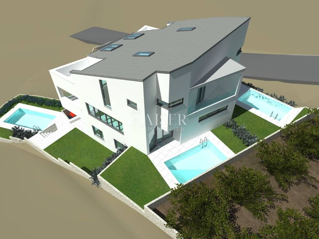 Na prodaju je atraktivno građevinsko zemljište u Puntu na otoku Krku, površine 914 m², s već ishodovanom građevinskom dozvolom i gotovim projektom za izgradnju zgrade s četiri prostrana apartmana (2B skupina) ukupne bruto površine 546 m². Nalazi se u mirnoj ulici , na odličnoj poziciji koja spaja blizinu centra i plaže s privatnošću potrebnom za miran boravak.