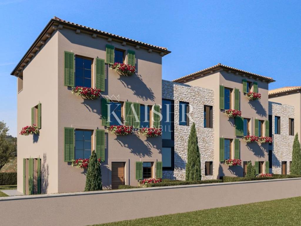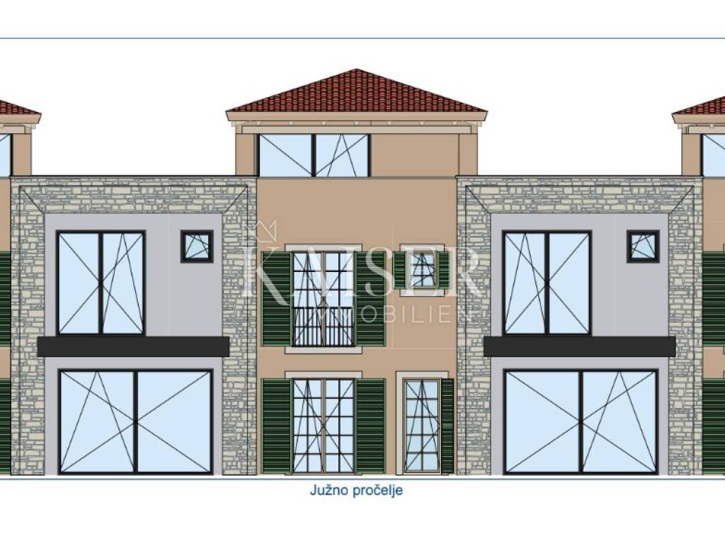 Modern houses in the Istrian style - a combination of contemporary design and tradition Kaiser Immobilien is proud to present for sale a modern residential complex that uniquely combines the best features of contemporary architecture with elements of the authentic Istrian architectural style. This project has been carefully designed to offer comfort, functionality and aesthetics, while preserving the charm and warmth of traditional construction. The perfect home for families: The houses are an ideal choice for young families who want to enjoy a quiet and safe environment, away from the city hustle and bustle and traffic, and yet in close proximity to all important amenities - schools, shops, restaurants and promenades. The residential complex includes a total of five houses: All are two-story buildings, with an emphasis on the spacious ground floor, which represents the central part of the home. Each house has one or two exits to its own garden, which achieves a natural connection between indoor and outdoor spaces. Area and layout of this house: - living space 82 m2 - garden 50 m2 GROUND FLOOR: - kitchen, dining room and living room - bathroom FIRST FLOOR: - two bedrooms - two bathrooms - terrace - hallway Different sizes and layouts allow every family to find the ideal property according to their own needs and lifestyle. These modern Istrian houses offer the perfect balance between traditional architecture and a modern way of life - peace, privacy and authenticity combined with top comfort. Dear clients, it is possible to view the property only with a signed brokerage contract, which is the basis for further actions related to the purchase and sale and the collection of commission, all in accordance with the Real Estate Brokerage Act. The KAISER IMMOBILIEN agency, as an authorized real estate broker, charges a brokerage fee of 3% + VAT from the buyer and seller for the brokerage service at the time of concluding the Preliminary Agreement or the Purchase and Sale Agreement. Telephone: 00385923782803 Email address: ivana@kaiser-immobilien.hr. Seller: Ivana Gašparini.