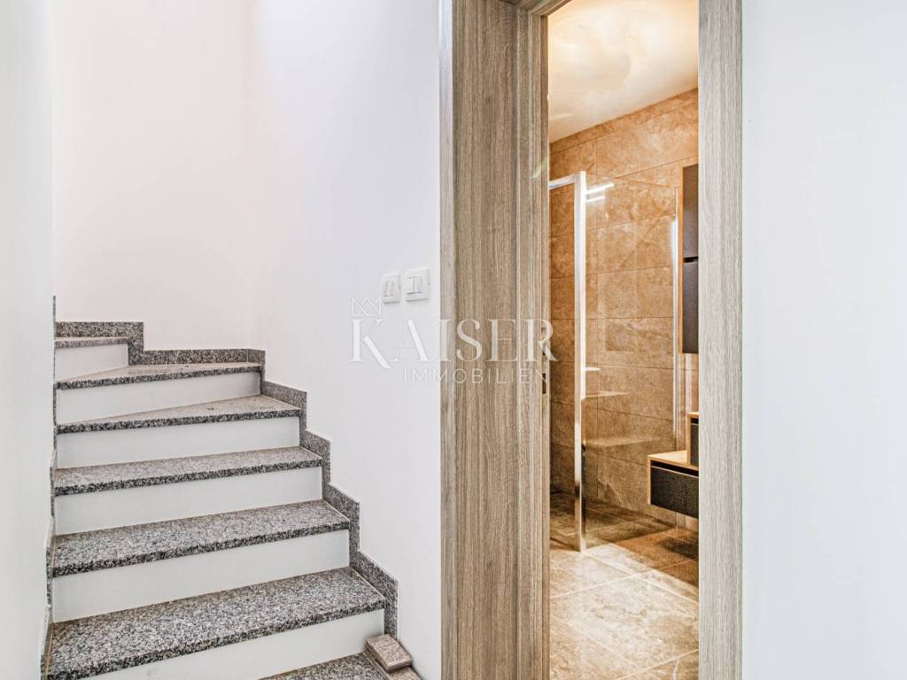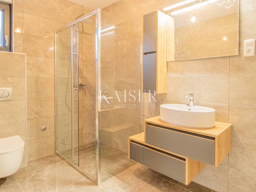 From its offer, Kaiser-Immobilien presents a two-story apartment in Dramlje in a prime location. The apartment consists of a hallway, kitchen, living room, balcony, two bedrooms, two bathrooms and a terrace. The apartment has a beautiful view of the sea. The apartment is equipped with top-quality equipment, from video surveillance, air conditioning controlled using a phone application, Schuco PVC carpentry, glass fence on the balconies. Italian tiles are installed in the apartment. One parking space belongs to the floor. The planned completion of the works is May 5, 2023.