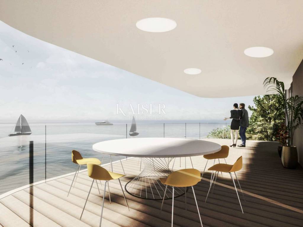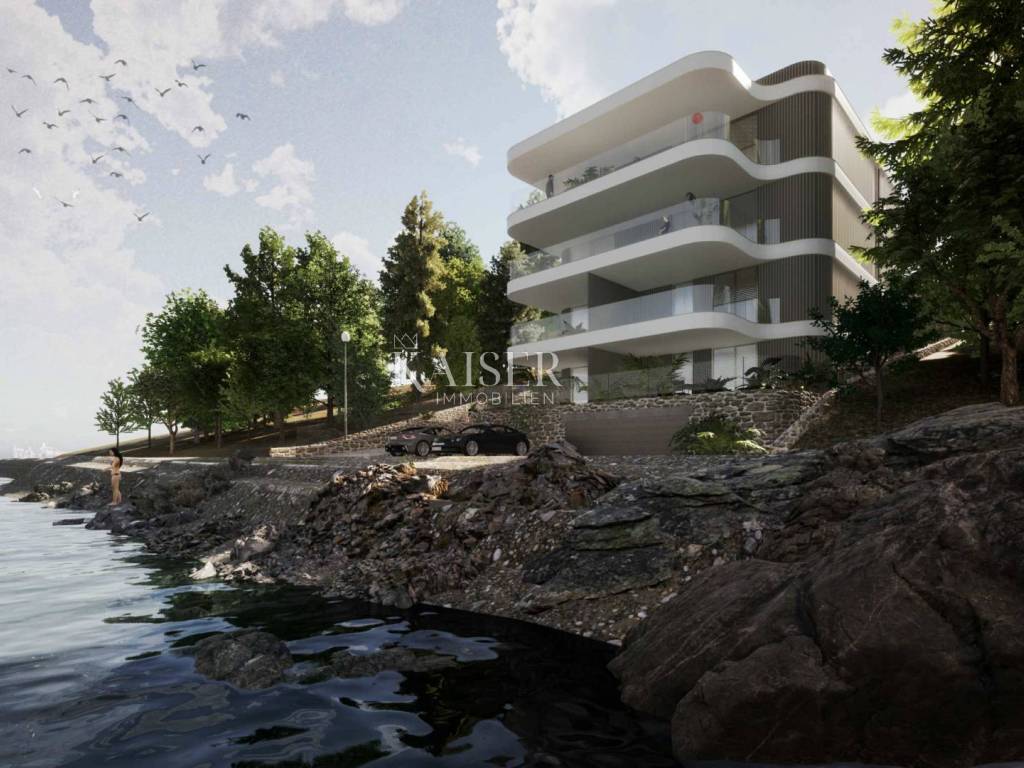 Kaiser Immobilien presents you a luxurious apartment under construction, first row to the sea. We offer a project of two urban villas with ten apartments in an exclusive location. All apartments have a view of the sea and a total area of 60 m2 or 120 m2. The highest quality materials and the highest construction standards are used in the construction. One parking space per apartment is provided in the garage, or an outdoor parking space that is added to the price of the apartment. The expected completion of the works is the sixth month of 2023. The distance from Rijeka is 29 km, and from the airport 17 km. In the earlier stage of the purchase, the customer will have the option of choosing ceramics and parquet. A unique property in a top location. For a viewing or additional information, please contact your agent.