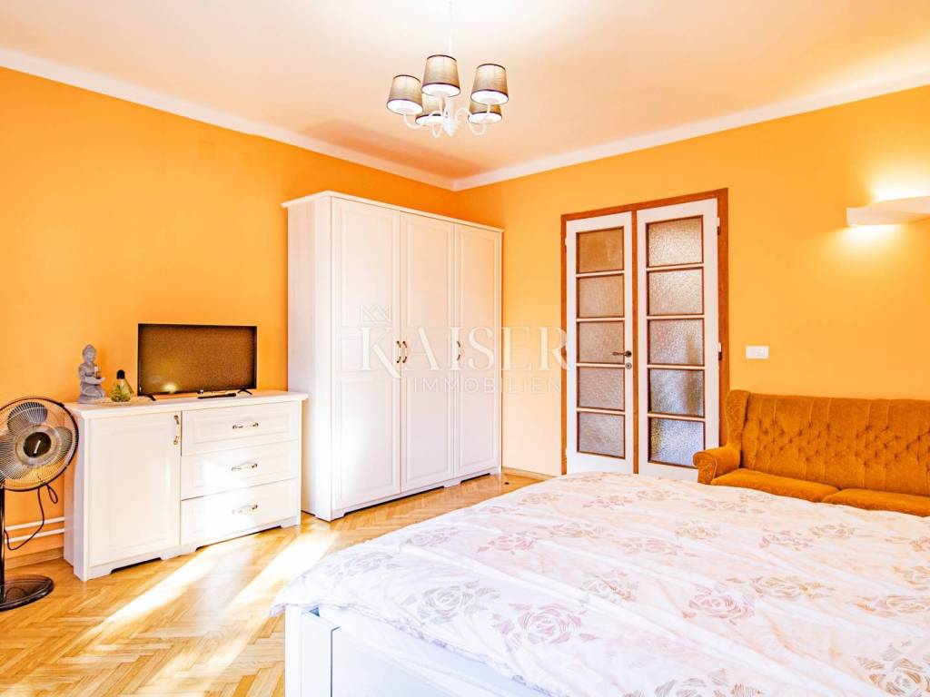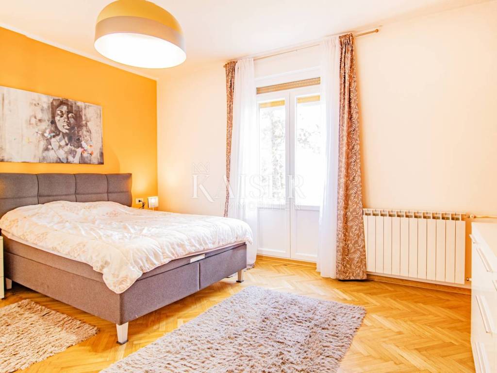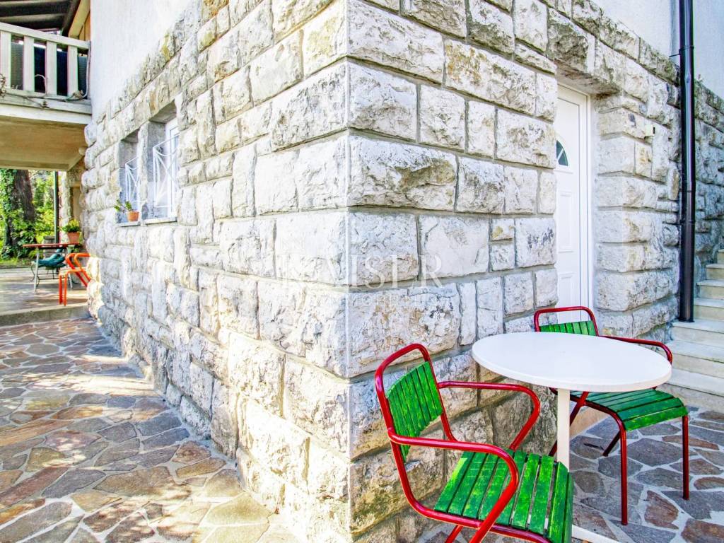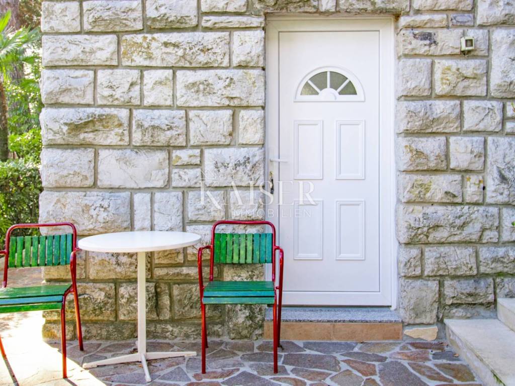A beautiful apartment for sale in a villa in Opatija, located on the 2nd floor, with a total area of 122.70 m2. Essentially, this represents half of the villa in an attractive location and half of the use of the beautiful garden. The offer includes one floor of the villa and 1 apartment. The apartment consists of a hallway, kitchen, living room, three bedrooms and a bathroom, as well as two balconies that offer a beautiful sea view. Both balconies allow you to relax and enjoy the view, and the space is bright and airy. The apartment also comes with a 17.97 m2 storage room in the basement, which has been converted into a fully functional studio apartment, ideal for guests or additional rental income. The total area of the apartment together with the storage room/studio apartment is 140 m2. It was renovated in 2022, including modernization of installations, oil-fired central heating and installation of PVC joinery, which ensures energy efficiency and comfort throughout the year. In addition to central heating, the apartment is equipped with air conditioning, providing additional comfort. The yard, with an area of 1,600 m2, is shared by all tenants and is formed as a park with horticulturally arranged greenery, ideal for relaxing in nature. The apartment also has its own garage of 15 m2 and another 1 outdoor parking space, which is a big advantage in this location. It is located in a quiet part of Opatija, yet in close proximity to all important facilities and the sea! The location is far from major cities: Vienna 4 h 30 min, Berlin 10 h, Zagreb 1 h 40 min, Pula airport 2 h, Trieste 1 h, Ljubljana 2 h, driving by car. For all information and viewing call +385916133776 agent Eli Lovko Agency commission is 3%+VAT