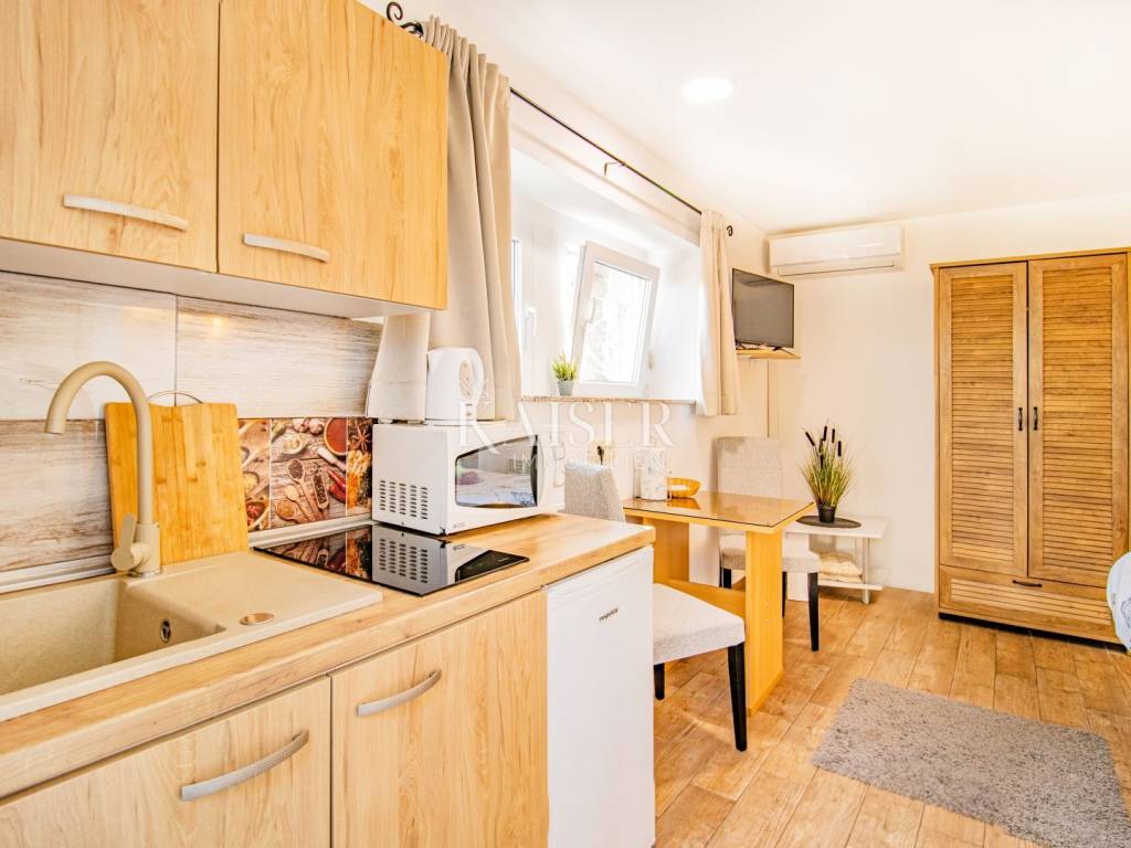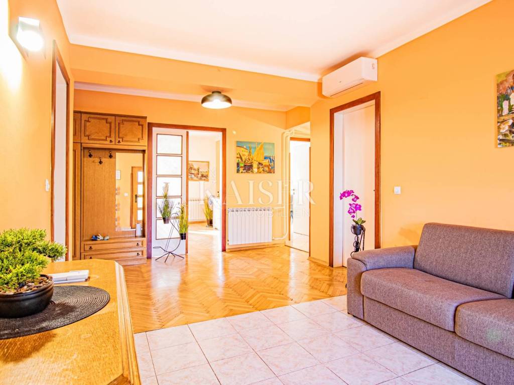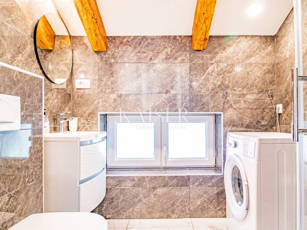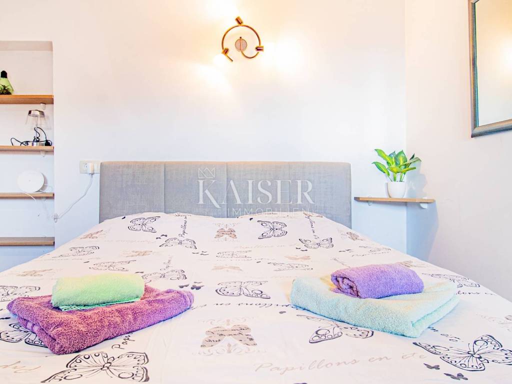 A beautiful apartment for sale in a villa in Opatija, located on the 2nd floor, with a total area of 122.70 m2. Essentially, this represents half of the villa in an attractive location and half of the use of the beautiful garden. The offer includes one floor of the villa and 1 apartment. The apartment consists of a hallway, kitchen, living room, three bedrooms and a bathroom, as well as two balconies that offer a beautiful sea view. Both balconies allow you to relax and enjoy the view, and the space is bright and airy. The apartment also comes with a 17.97 m2 storage room in the basement, which has been converted into a fully functional studio apartment, ideal for guests or additional rental income. The total area of the apartment together with the storage room/studio apartment is 140 m2. It was renovated in 2022, including modernization of installations, oil-fired central heating and installation of PVC joinery, which ensures energy efficiency and comfort throughout the year. In addition to central heating, the apartment is equipped with air conditioning, providing additional comfort. The yard, with an area of 1,600 m2, is shared by all tenants and is formed as a park with horticulturally arranged greenery, ideal for relaxing in nature. The apartment also has its own garage of 15 m2 and another 1 outdoor parking space, which is a big advantage in this location. It is located in a quiet part of Opatija, yet in close proximity to all important facilities and the sea! The location is far from major cities: Vienna 4 h 30 min, Berlin 10 h, Zagreb 1 h 40 min, Pula airport 2 h, Trieste 1 h, Ljubljana 2 h, driving by car. For all information and viewing call +385916133776 agent Eli Lovko Agency commission is 3%+VAT