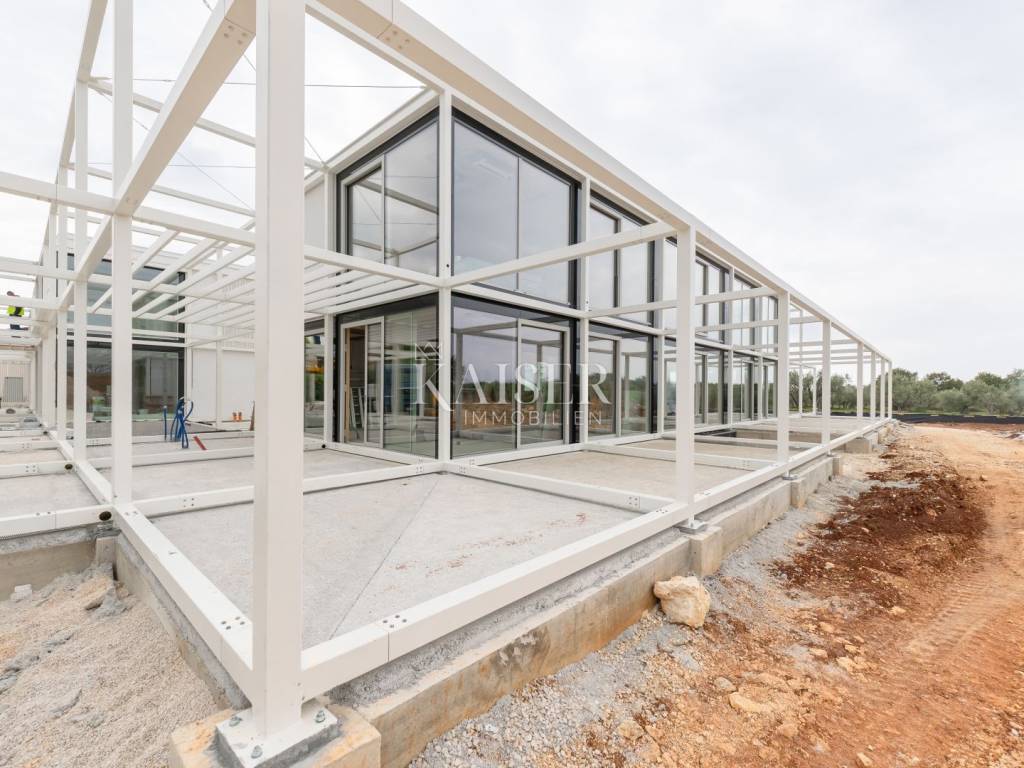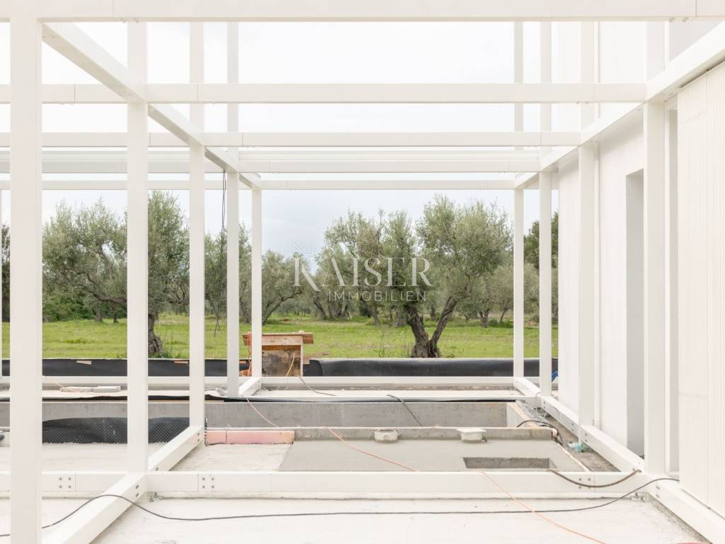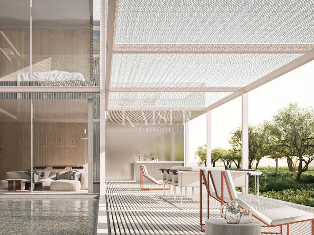 Umag is an elite destination on the western coast of Istria, combining Mediterranean charm, history and natural beauty. Discovered by Roman nobles, who decided to make it their summer residence, Umag still enchants with its history and charm. Known for its beautiful beaches, luxurious restaurants and top-notch sports facilities, including the famous ATP tennis tournament, Umag is the perfect place to enjoy a high standard of living. With the immediate vicinity of the Adriatic Sea and cultural attractions, Umag offers a peaceful oasis with everything you need for a dynamic and sophisticated life. We present you a unique opportunity to own a luxury villa located in one of the most sought-after locations in Umag. This sophisticated property seamlessly combines minimalist elegance, innovative ecological construction and state-of-the-art technology, providing the perfect balance between comfort, aesthetics and sustainable living. Located in a quiet and exclusive area with a beautiful sea view, the villa was designed to provide the ultimate experience of modern living. The spacious open-concept interior, enriched with large glass surfaces, brings in plenty of natural light and a seamless blend of indoor and outdoor spaces. The living room is elegantly connected to the dining room and modern kitchen, creating a fluid and pleasant space for socializing and relaxing. Two spacious master bedrooms upstairs, each with its own bathroom, offer privacy and luxury, while additional storage ensures tidiness and organization. The spacious upper terrace offers breathtaking views, perfect for relaxing. The villa's outdoor space is a true oasis of peace and enjoyment. The spacious terrace with a mesmerizing sea view provides the perfect place to relax and enjoy unforgettable sunsets. The private 26.60 m² swimming pool allows for refreshment all year round, while the outdoor kitchen and lounge area offer the ideal setting for al fresco dining and enjoying the Mediterranean lifestyle. The 77.24 m² parking lot provides enough space for two vehicles and easy access to the villa. Special attention has been paid to sustainability and energy efficiency. The villa is built with environmentally friendly IQWOOD wooden construction, which ensures superior insulation and minimal environmental impact. The integrated system of heat pump, underfloor heating and ducted air conditioning ensures optimal temperature in all seasons with low operating costs. In addition, the advanced Uponor home automation system allows remote control of heating, air conditioning and blinds via mobile devices, providing maximum comfort and energy savings. This villa is not just a home – it is an investment in a superior quality of life. Contemporary design in perfect harmony with nature, environmentally friendly materials and innovative technology make it an ideal retreat for those looking for a combination of modern comfort and Istrian charm. Do not miss this unique opportunity – step into a world yet to come, where every detail is designed to meet the highest standards of comfort and environmental responsibility. Distance to the property: Umag: 8 km Golf club Adriatic: 20 km ACI Marina Umag: 9.5 km Kozlović Winery: 17 km Pula Airport: 80 km Distance to larger cities: Ljubljana: 134 km Maribor: 263 km Vienna: 515 km Prague: 786 km Munich: 535 km The agency commission for the buyer is 3% + VAT. The commission covers all services related to the purchase and is paid upon conclusion of the first legal act. For any additional information, please contact me at 00385 976839504, or at the email address: ilijana@kaiser-immobilien.hr