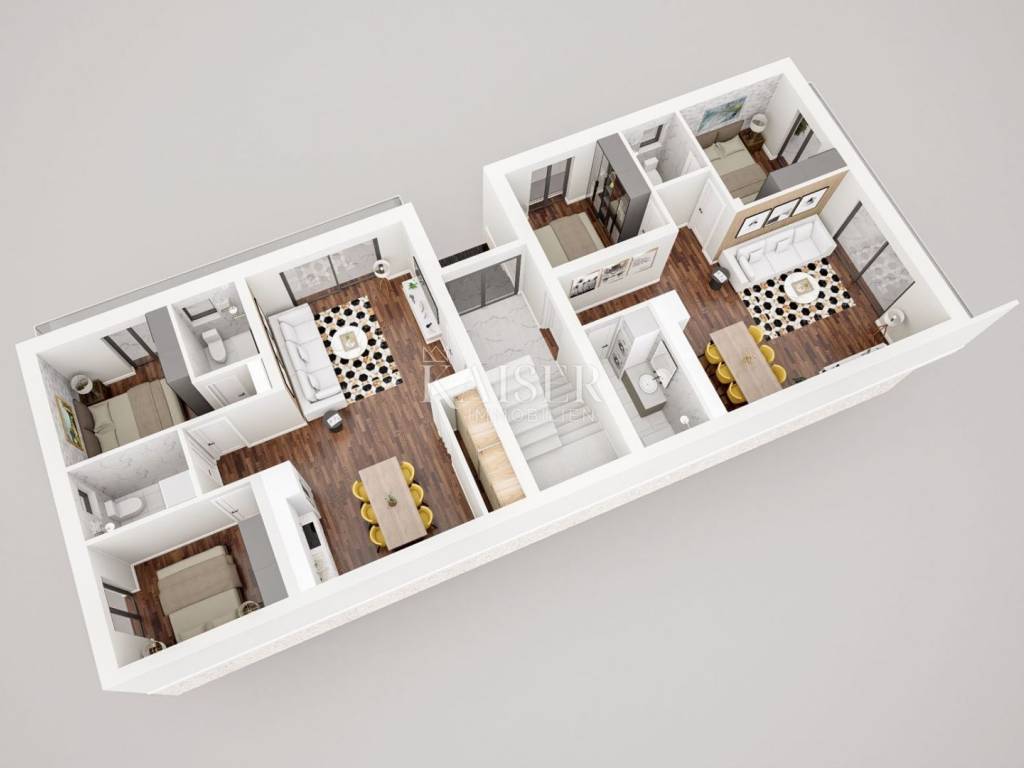 Kaiser Immobilien presents a modern apartment in a new building 3km from Umag, with a sea view, in a sought-after location. For sale is a 66.45m2 apartment located on the ground floor of a residential building, the apartment consists of a living room, open-plan kitchen and dining room, two bedrooms, two bathrooms, a 12m2 basement storage room, an 11m2 terrace and a 34m2 roof terrace with a panoramic sea view. There is a private parking space in front of the building. For maximum comfort, the apartment is equipped with underfloor heating in the living room and bathrooms, air conditioning for heating and cooling is located in all rooms. New construction, ready to move in early 2026. It is sold on a turnkey basis, without furniture. An excellent opportunity for a pleasant stay or tourist rental. A special advantage of this property is its proximity to the Stella Maris beach, a free kindergarten and a school, which further increases the value and attractiveness of the location. Distance: Pula Airport - 80 km Koper - 30 km Ljubljana - 140 km Munich - 540 km Vienna - 520 km Prague - 850 km The agency commission for the buyer is 3% + VAT and is paid in the case of purchasing a property, upon conclusion of the first legal act. Do not miss the opportunity to become the owner of this beautiful modern apartment that offers the perfect combination of luxury and excellent location. Contact us with confidence for more information and to arrange a viewing. Seller: Dean Cerovac phone: 0038598538347 email address: dean.cerovac@kaiser-immobilien.hr