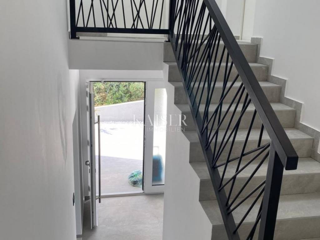 Modern apartment in a green environment near the sea Kaiser Immobilien is proud to present a beautiful apartment in a new building located in the quiet surroundings of Baška, in one of the most beautiful parts of the island of Krk. This modern building with a total of four residential units fits perfectly into the natural environment, surrounded by forests and Mediterranean greenery, providing a sense of privacy, peace and true relaxation. The apartment is located on the first floor and occupies an area of 64.05 m². The space has been carefully designed to provide maximum comfort and functionality. The central part is made up of a spacious open-space living room connected to the kitchen and dining room, while two bedrooms offer a peaceful retreat for relaxation. The living area opens onto a 12 m² covered terrace, the perfect place for morning coffee or relaxing at sunset. The southern orientation of the apartment allows for plenty of natural light and warmth throughout the day. Special attention has been paid to the quality of workmanship and details. Top-quality materials have been used - elegant ceramics, modern sanitary equipment and aluminum joinery with electric shutters. The apartment is equipped with security doors and air conditioning, which ensure a pleasant temperature in all seasons. There are two parking spaces in the shared garden, and the buyer is exempt from paying real estate tax, which is an additional benefit. Only a few minutes' drive separates this peaceful location from the sea and the center of Baška, known for its magnificent Vela Plaža, one of the most famous in the Adriatic. The pebble coast with turquoise sea stretches for almost two kilometers, ideal for families, swimmers and anyone who wants to enjoy the beauty of the Mediterranean. Baška is also a place of rich cultural heritage - the famous Baška Tablet, one of the most important monuments of Croatian literacy, was found here. In addition to history and the sea, Baška offers plenty of activities throughout the year - cultural events, festivals, concerts and gastronomic events bring this place to life at all times. Nature lovers and active vacationers can enjoy numerous hiking and mountain trails that lead through green hills and olive groves, with views of the sea and the islands of the Kvarner Bay. Thanks to its excellent transport connections, the island of Krk is easily accessible from many European capitals. It is only about 190 kilometers to Ljubljana, about 510 km to Budapest, 520 km to Vienna, 570 km to Munich, and about 780 km to Prague. The Krk Bridge allows for easy access by car throughout the year, while Rijeka Airport is just a short drive away. This apartment represents an ideal combination of modern design, peaceful surroundings, and proximity to the sea - the perfect choice for anyone looking for their own corner on one of the most beautiful Adriatic islands. The agency's commission for the buyer is 3% + VAT. The commission covers all services related to the purchase and is paid only in the case of purchasing a property, upon conclusion of the legal act. For any additional information, please contact me at 00385919254809 or at the email address nelica@kaiser-immobilien.hr