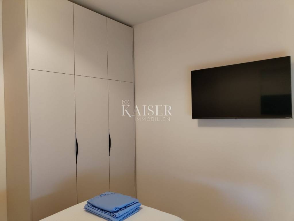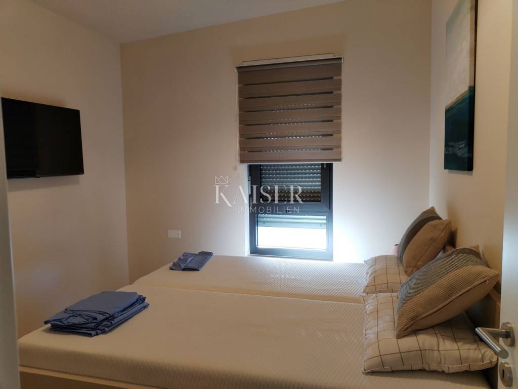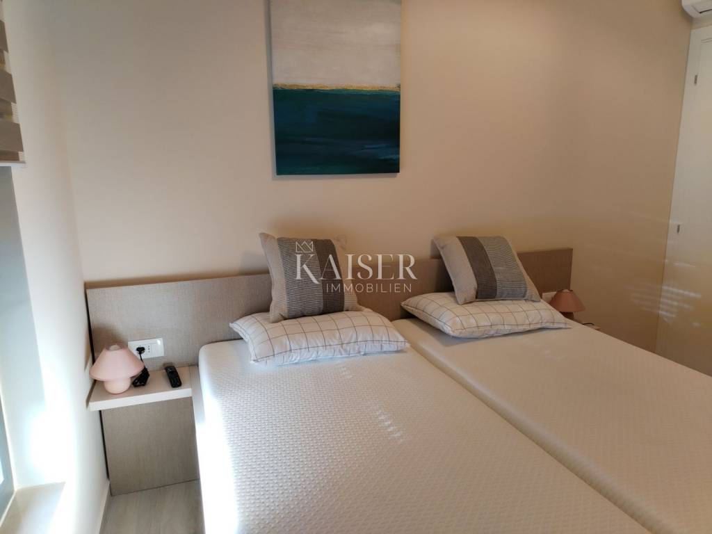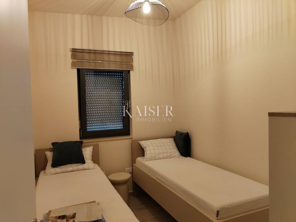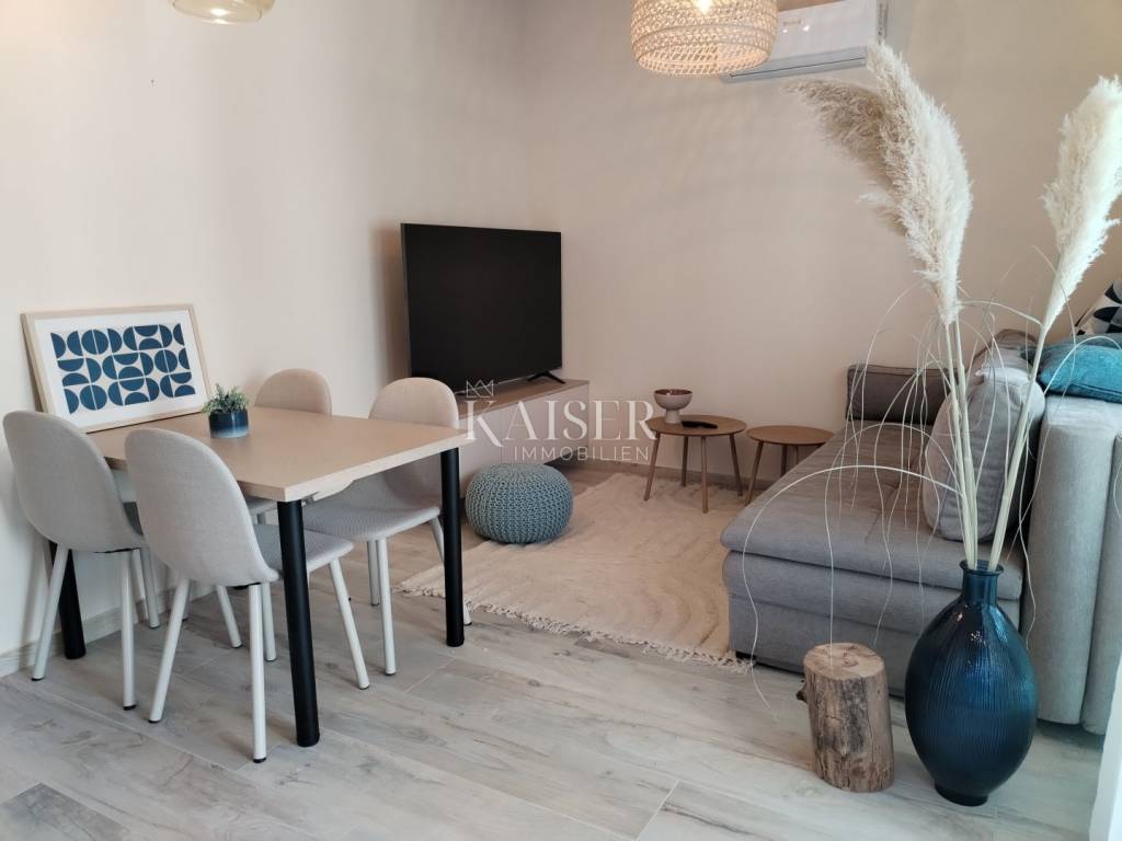 Kaiser Immobilien proudly presents a modern apartment in the vicinity of Umag, in an exclusive location 300m from the sea. We offer an apartment in a new building, just 5 km from the center of Umag, the apartment has a net area of 45.3 m2, a terrace of 9 m2, a storage room of 13.4 m2 and a covered parking space. The apartment is located on the first floor of a residential building and is sold fully furnished. The apartment consists of a spacious living room with an open-plan kitchen and dining room, 2 bedrooms, a hallway, a bathroom, a storage room and a covered terrace. The apartment is equipped with underfloor heating in the bathroom, while air conditioning in all rooms ensures a comfortable temperature throughout the year. The building is characterized by top quality construction and built-in materials, top-quality aluminum joinery with triple-layered glass and UV protection, roller shutters with electric lifts contribute to comfort, mosquito nets, a modern facade provides superior energy insulation throughout the year. Distance: Pula Airport - 80 km Koper - 40 km Ljubljana - 140 km Munich - 540 km Vienna - 520 km Prague - 850 km The agency commission for the buyer is 3% + VAT and is paid in the case of purchasing a property, upon conclusion of the first legal act. Do not miss the opportunity to become the owner of this beautiful modern apartment that offers the perfect combination of modern style and excellent location. Contact us with confidence for more information and to arrange a viewing. Seller: Dean Cerovac phone: 0038598538347 email address: dean.cerovac@kaiser-immobilien.hr