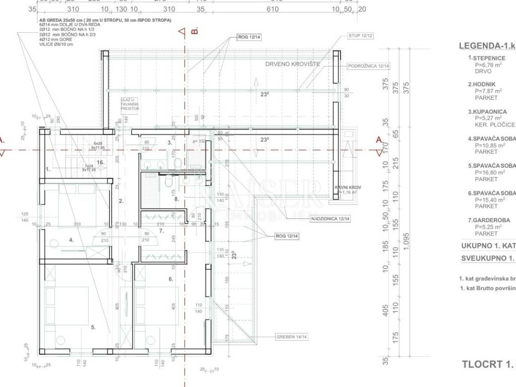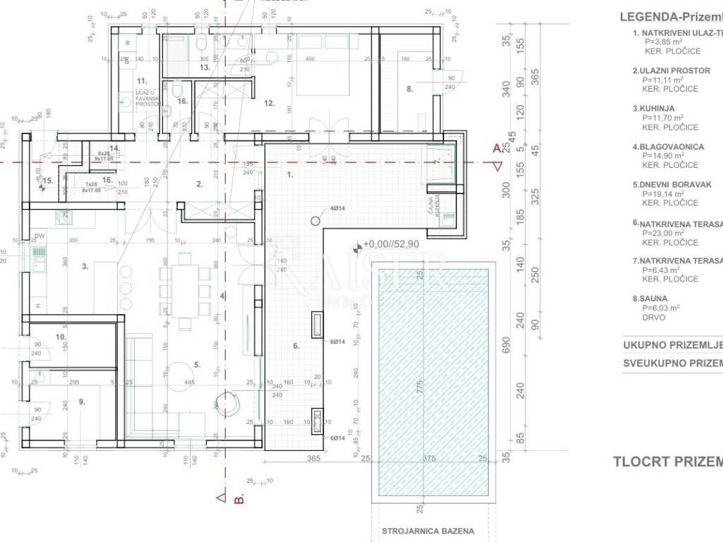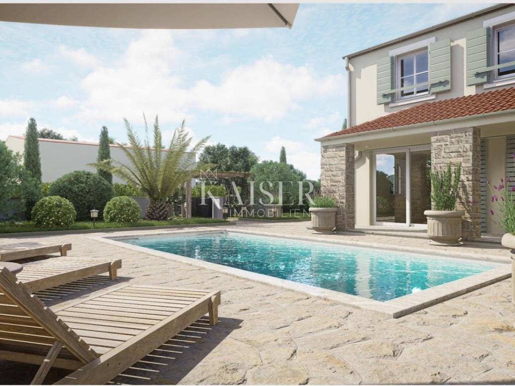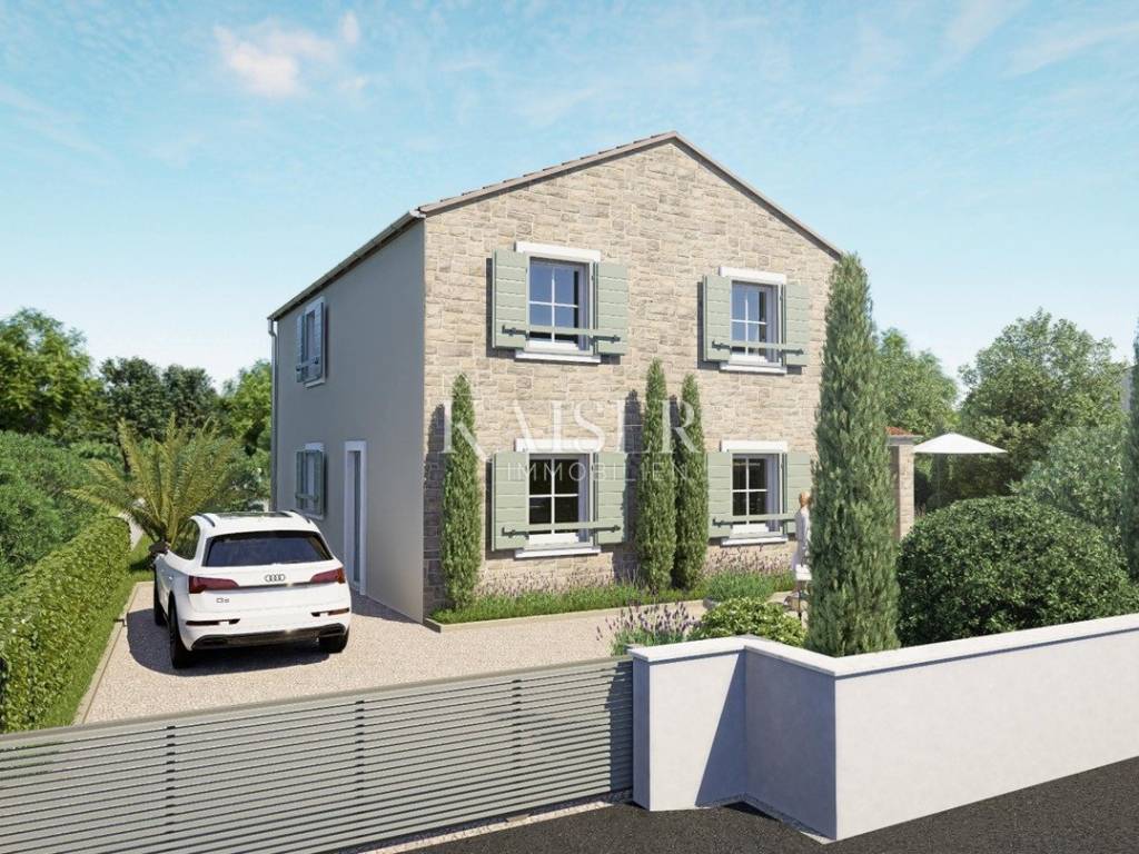 Kaiser Immobilien presents: Luxury family villa with swimming pool under construction Located in the peaceful and natural surroundings of the small Dalmatian town of Poljica Brig, near the historic town of Nin near Zadar, this beautiful family villa with its spacious area of 215.07 m², divided into two floors, and a swimming pool of 29.06 m², offers everything you need for a luxurious life or vacation. The total gross area of the house is 227.49 m². The villa is designed to provide its future owners with a spacious, but at the same time comfortable and functional living space. The spacious and elegant interior of the ground floor of the house, with a total area of 140.90 m², is designed to allow for a smooth flow of space and maximum comfort. Already upon entering, a covered entrance area of 3.85 m² leads to a spacious entrance hall (11.10 m²), which naturally continues into the open concept living room, dining room and kitchen. The 11.70 m² kitchen and 14.90 m² dining room are ideal for family gatherings, while the 19.14 m² living room exudes airiness and light thanks to large glass surfaces. For a complete atmosphere, there are also covered terraces (23.30 m² and 8.43 m²) that offer a pleasant outdoor living space with an integrated outdoor kitchen and barbecue with a beautiful view of the garden and pool. A special feature of the ground floor is the sauna (8.03 m²), which provides additional relaxation. The ground floor also contains a bedroom (16.93 m²) with its own bathroom, ideal for guests or owners who want maximum privacy on the main floor. Privacy and comfort on the first floor, which has a total of 74.17 m², is provided by an elegant staircase (6.76 m²). The floor is designed as a private relaxation area and contains three spacious bedrooms (10.85 m², 16.80 m², 15.40 m²) equipped with high-standard parquet. Each room has enough light and provides a feeling of warmth and privacy. Additional practicality is provided by a dressing room (5.25 m²), and two modern bathrooms (5.27 m² and 5.97 m²) with high-quality ceramic tiles. One of the biggest assets of this villa is the beautiful swimming pool of 29.06 m² (7.75 mx 3.75 m), ideal for refreshment during hot summer days. Around the pool there is a furnished terrace that allows sunbathing and socializing. Additional spaces such as storage rooms (4.51 m² and 1.61 m²), a service room (7.19 m²) and a laundry room (4.69 m²) ensure the practicality and organization of the home. There are also special storage rooms for wood and technical equipment, which allows for a tidy and functional outdoor space. This property was built according to the highest standards of modern construction, with an emphasis on durability, energy efficiency and resistance to weather conditions. The load-bearing walls are made of Porotherm blocks, known for their exceptional thermal and sound insulation properties. Double insulation ensures high energy efficiency and minimal heat loss. The roof structure is made with metal purlins, which guarantees durability and resistance to external influences. The entire house has electrical installations. The first phase of plumbing installations has been completed in the house and garden. The water connection has been made in the yard, while the electricity connection has been paid in full, including a special construction electricity connection. The swimming pool has already been dug out and concreted, with the first phase of installation completed. The septic tank has also been dug out and concreted. Concrete fence walls have been built around the entire plot, ensuring privacy and security. The villa has a valid building permit for the construction of a residential unit with a swimming pool and an auxiliary building (2.B group). Construction began in February 2024, with a properly maintained E-construction log, which further confirms the transparency and quality of the work performed. All utility contributions have been paid to the City of Nin, thus fulfilling all administrative requirements for the continuation of construction and the final legalization of the facility. This luxury villa is a perfect blend of modern architecture, comfort and nature. It is an ideal home for those seeking spaciousness, privacy and a high quality of life. With its position, quality construction and rich equipment, this house provides the perfect retreat for a family or an investment in tourist accommodation. Ground floor area: Covered entrance-terrace: 3.85 m² Entrance area: 11.10 m² Kitchen: 11.70 m² Dining room: 14.90 m² Living room: 19.14 m² Covered terrace: 23.30 m² Covered terrace - fireplace: 8.43 m² Sauna: 8.03 m² Service: 7.19 m² Storage room: 4.51 m² Laundry room: 4.69 m² Bedroom: 16.93 m² Bathroom: 4.58 m² Stairs: 2.04 m² Wood storage: 2.10 m² Storage room: 1.61 m² Total ground floor area: 140.90 m² First floor area: Stairs: 6.76 m² Hallway: 7.87 m² Bathroom: 5.27 m² Bedroom: 10.85 m² Bedroom: 16.80 m² Bedroom: 15.40 m² Wardrobe: 5.25 m² Bathroom: 5.97 m² Total floor area: 74.17m Poljica-Brig is a village near Nin, about 15-20 minutes drive from Zadar. Although Poljica-Brig is not located directly on the coast, the beaches in Nin and the surrounding towns are within a few minutes drive, providing the opportunity to enjoy the clear sea and sunbathing. Thanks to its location, Poljica-Brig offers a peaceful rural ambience, while at the same time providing quick access to urban amenities. Nin – 7 km (10 min) Zadar – 17 km (20 min) Biograd na Moru – 50 km (40 min) Šibenik – 90 km (1h) Split – 150 km (1h 30 min) Zagreb – 280 km (2h 45 min) National parks: Paklenica NP – 55 km (45 min) Kornati NP – access from Zadar (boat trips) Krka NP – 85 km (1h) Plitvice Lakes NP – 130 km (1h 45 min) Poljica-Brig has excellent traffic The buyer pays an agency fee of 3% + VAT and is charged with the first legal act. For more information and a viewing, please contact us with confiden