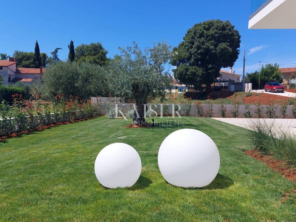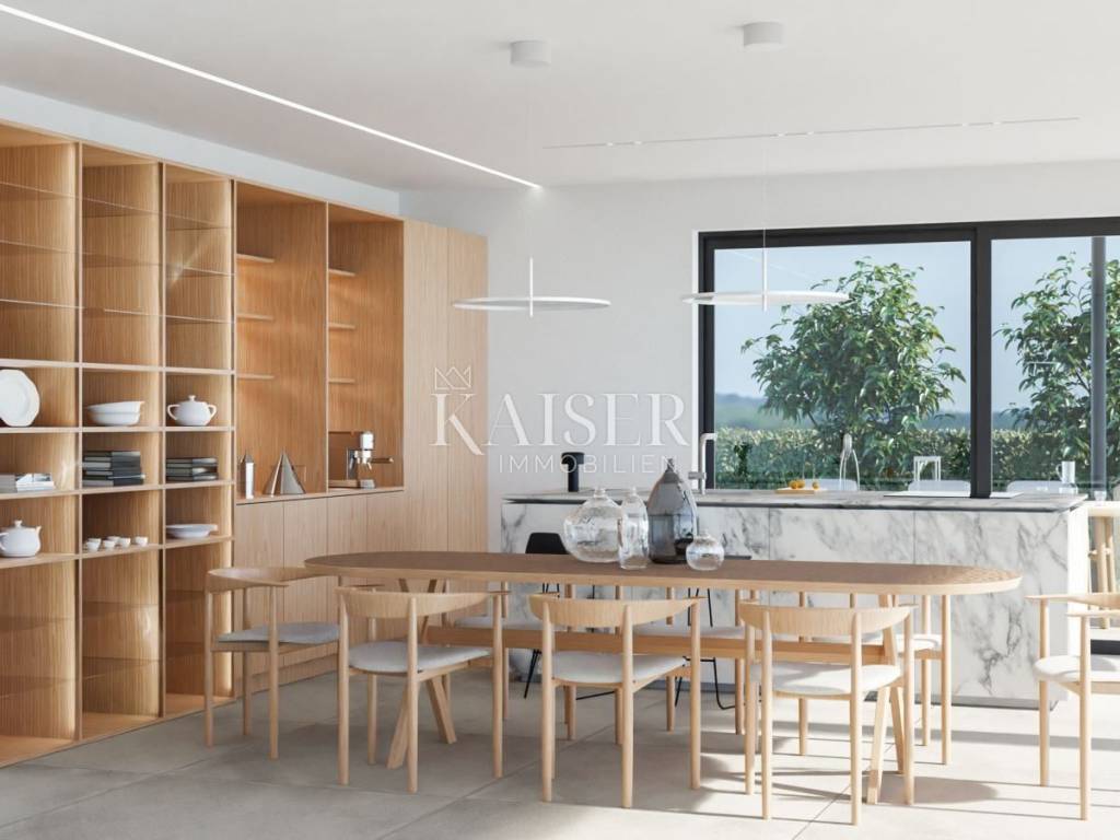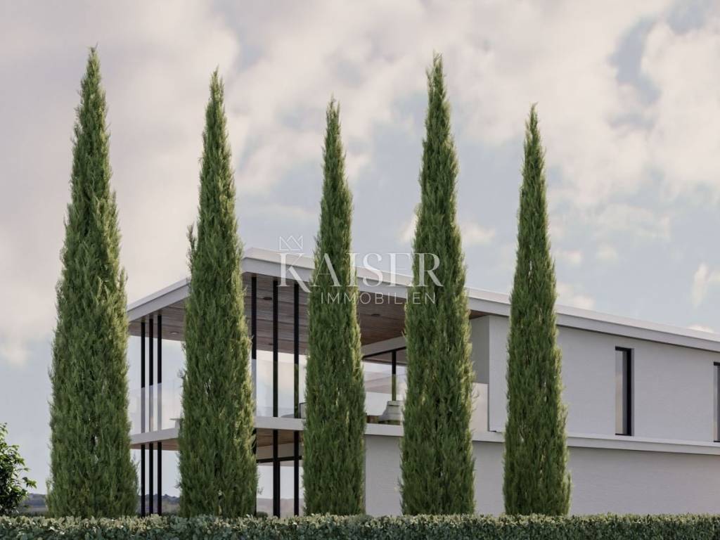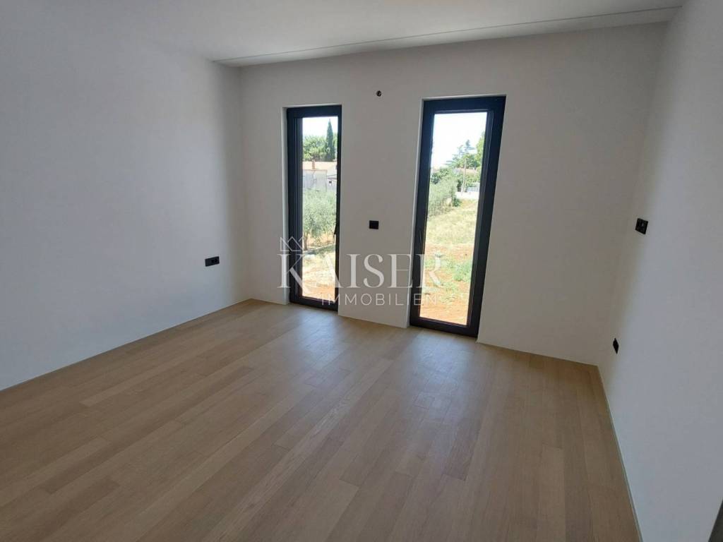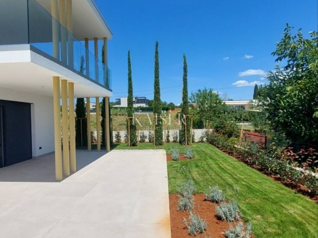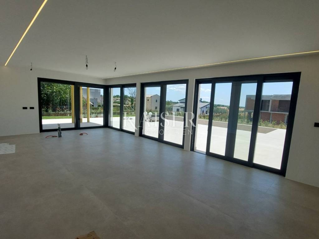 Kaiser Immobilien presents you a villa in Istria, just ten kilometers from the sea and the city of Poreč, in a small charming place on a hilly terrain surrounded by olive groves, stone houses and narrow streets with a typical Istrian atmosphere: wineries, taverns, cycling routes, nature trails... The towns of Motovun, Rovinj, Umag, Novigrad are also nearby, offering additional content. The villa with a net area of 330.5m2 is located on a plot of 971 m2, and is surrounded by a beautiful garden with Mediterranean plants, imposing pine trees 5 m high that beautify the terrace with a sunbathing area around the pool. The total net area of the villa is 330.50 m2, and on the ground floor there is an open space area with a spacious and bright living room, dining room and kitchen with a total area of 50 m2. Large glass walls open the living room to the terrace, pool and outdoor dining area. On the ground floor there is a bedroom with an en-suite bathroom and access to the terrace and pool, a guest toilet and a practical storage room. On the first floor there is a master bedroom with a covered terrace of 80m2 with a view of the surroundings, olive groves and a panoramic view of the sea. On the first floor there are two additional bedrooms with en-suite bathrooms, which means that the villa offers enough accommodation capacity for family and friends. The villa is modern and functionally equipped: the floors are covered with 120x120 cm ceramic tiles from an Italian manufacturer, first-class oak parquet from a renowned Croatian manufacturer, modern and elegant sanitary ware with furniture in the bathrooms, built-in lighting... The villa has underfloor heating via an air-to-water heat pump and cooling via a multisplit Mitsubishi system. The exterior joinery is aluminum with UV protection, the roller shutters with electric lifts contribute to comfort, and the modern facade provides superior energy insulation throughout the year... The interior doors come in the Invisible version, while the large-sized Pivot entrance doors give the villa additional elegance. The villa has a beautiful and spacious 48m2 (4x12m) swimming pool covered with ceramic tiles. The agency's commission for the buyer is 3% + VAT. The commission covers all services related to the purchase and is paid upon conclusion of the first legal act. We are at your disposal for any additional information about this and other properties on offer. Damir Mlacović damir@kaiser-immobilien.hr http://kaiser-immobilien.hr/ +385-98-339-933