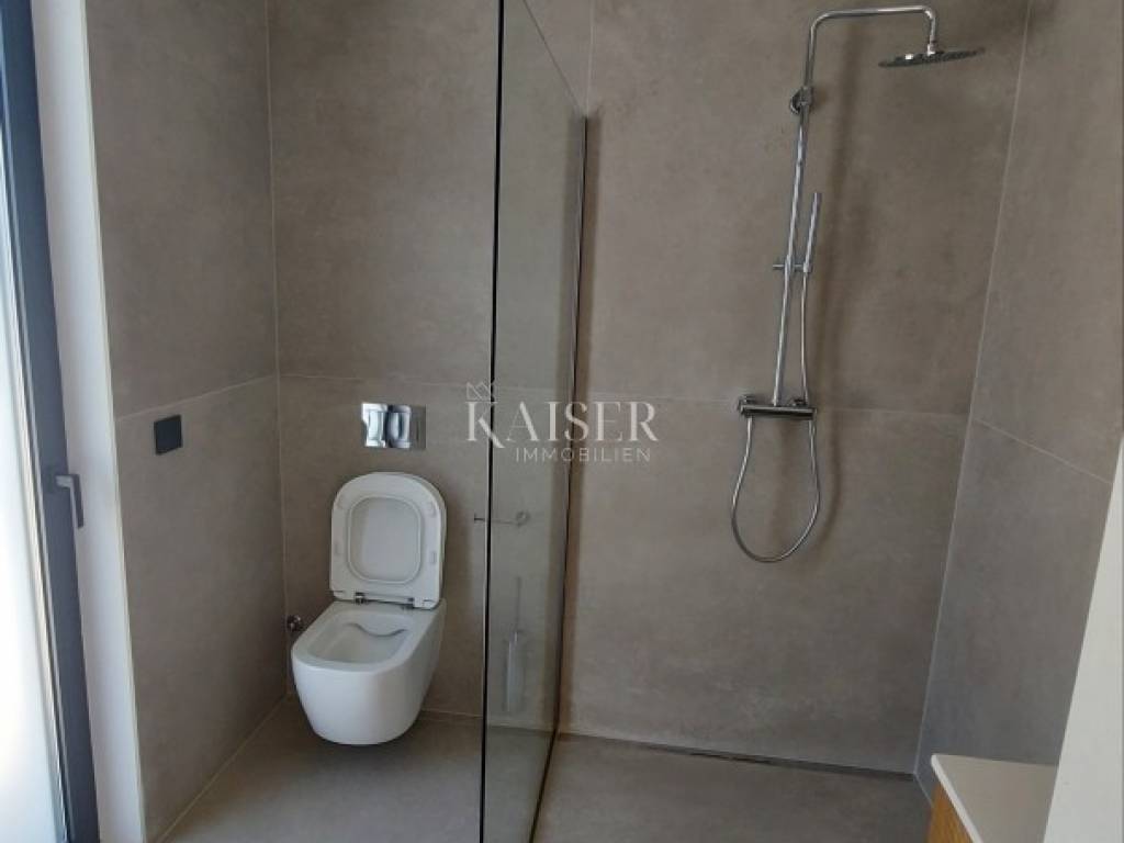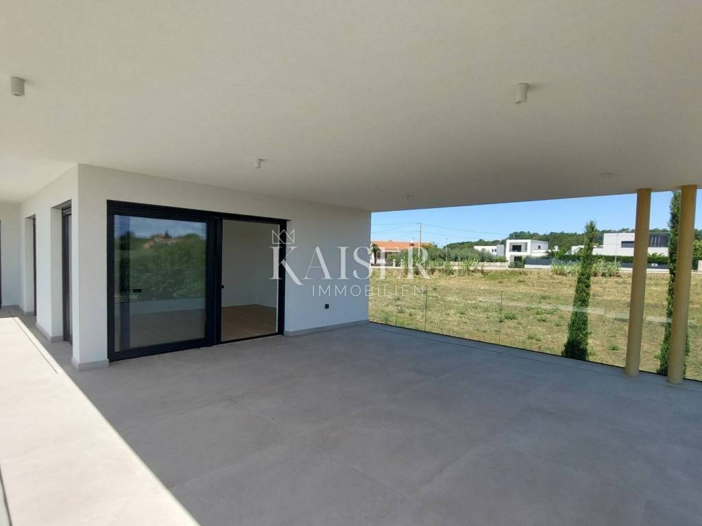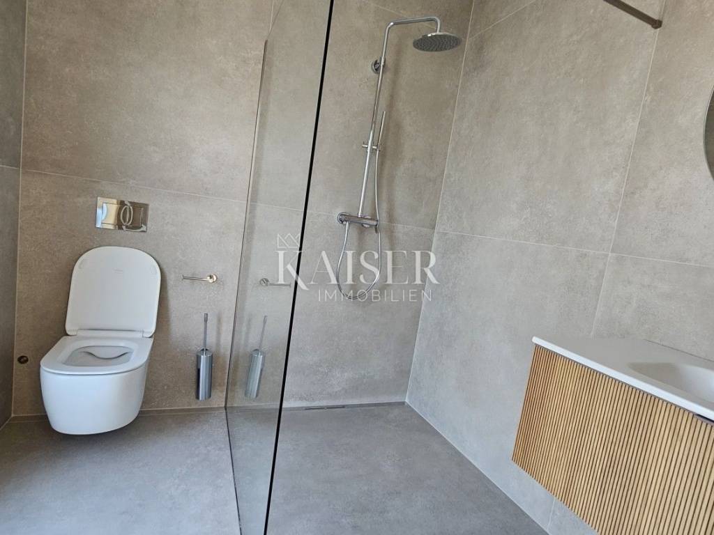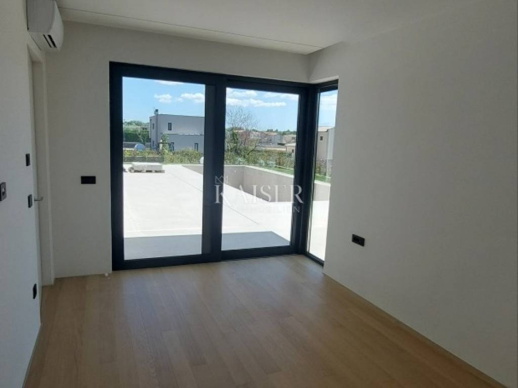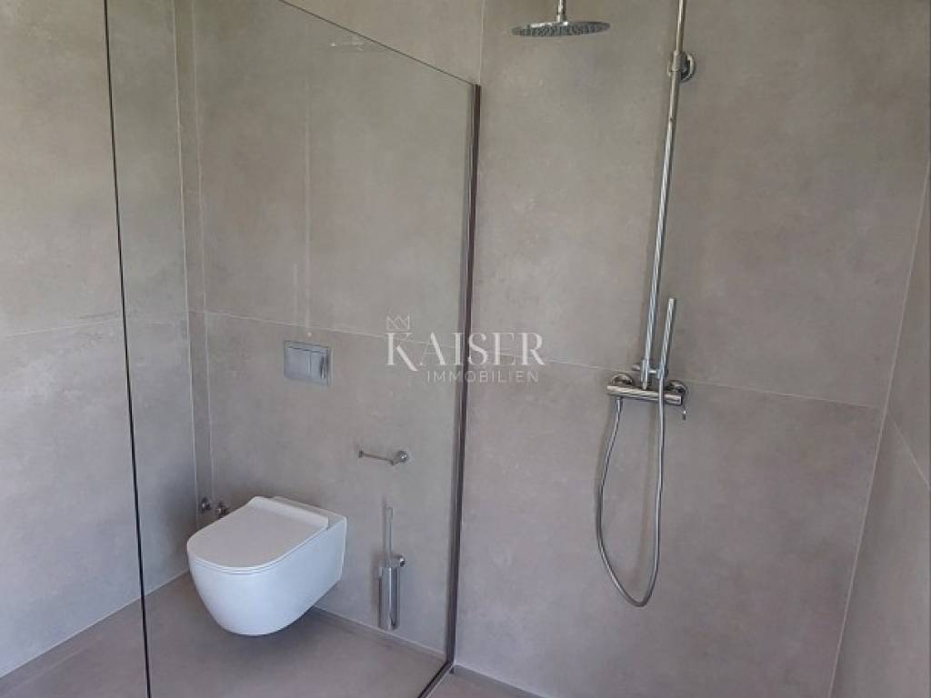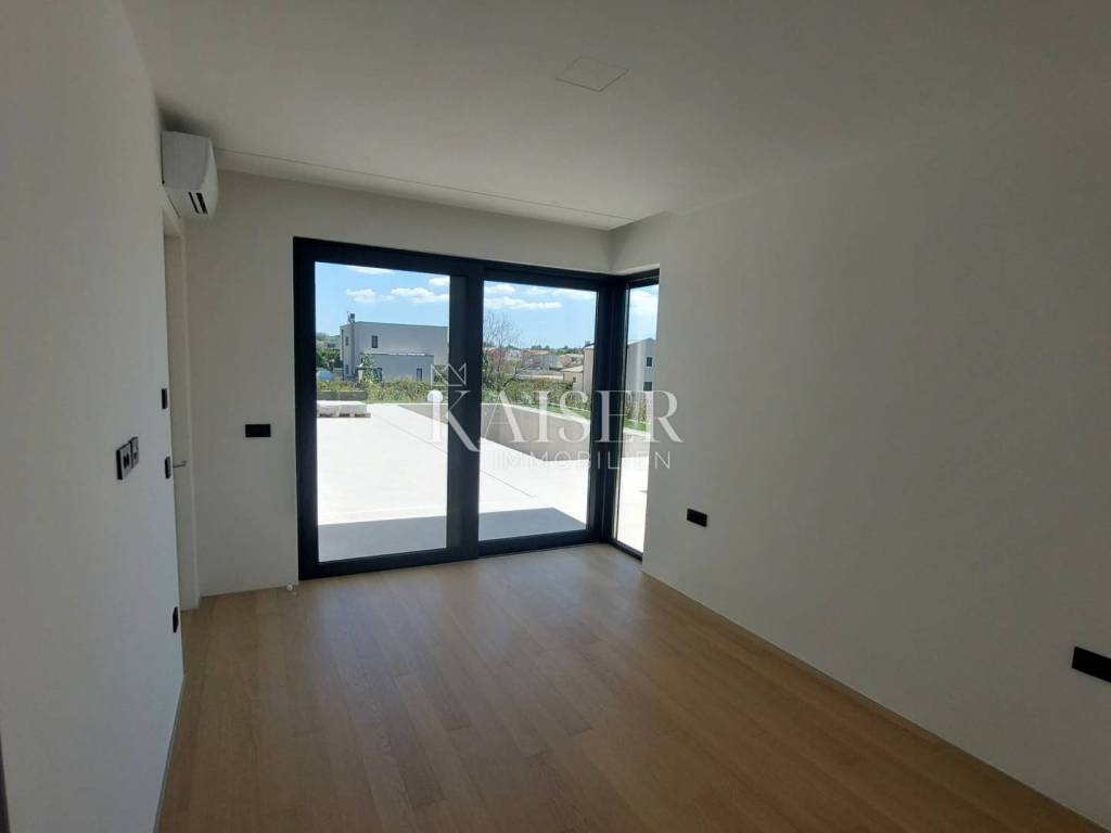 Kaiser Immobilien presents you a villa in Istria, just ten kilometers from the sea and the city of Poreč, in a small charming place on a hilly terrain surrounded by olive groves, stone houses and narrow streets with a typical Istrian atmosphere: wineries, taverns, cycling routes, nature trails... The towns of Motovun, Rovinj, Umag, Novigrad are also nearby, offering additional content. The villa with a net area of 330.5m2 is located on a plot of 971 m2, and is surrounded by a beautiful garden with Mediterranean plants, imposing pine trees 5 m high that beautify the terrace with a sunbathing area around the pool. The total net area of the villa is 330.50 m2, and on the ground floor there is an open space area with a spacious and bright living room, dining room and kitchen with a total area of 50 m2. Large glass walls open the living room to the terrace, pool and outdoor dining area. On the ground floor there is a bedroom with an en-suite bathroom and access to the terrace and pool, a guest toilet and a practical storage room. On the first floor there is a master bedroom with a covered terrace of 80m2 with a view of the surroundings, olive groves and a panoramic view of the sea. On the first floor there are two additional bedrooms with en-suite bathrooms, which means that the villa offers enough accommodation capacity for family and friends. The villa is modern and functionally equipped: the floors are covered with 120x120 cm ceramic tiles from an Italian manufacturer, first-class oak parquet from a renowned Croatian manufacturer, modern and elegant sanitary ware with furniture in the bathrooms, built-in lighting... The villa has underfloor heating via an air-to-water heat pump and cooling via a multisplit Mitsubishi system. The exterior joinery is aluminum with UV protection, the roller shutters with electric lifts contribute to comfort, and the modern facade provides superior energy insulation throughout the year... The interior doors come in the Invisible version, while the large-sized Pivot entrance doors give the villa additional elegance. The villa has a beautiful and spacious 48m2 (4x12m) swimming pool covered with ceramic tiles. The agency's commission for the buyer is 3% + VAT. The commission covers all services related to the purchase and is paid upon conclusion of the first legal act. We are at your disposal for any additional information about this and other properties on offer. Damir Mlacović damir@kaiser-immobilien.hr http://kaiser-immobilien.hr/ +385-98-339-933