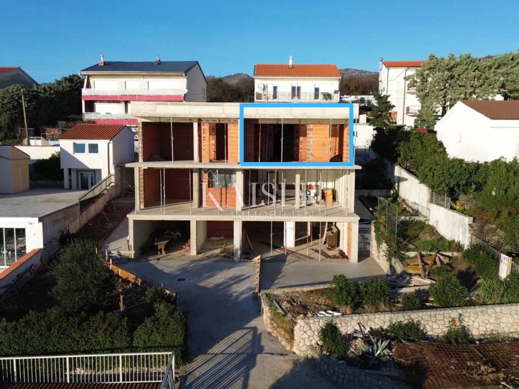 Kaiser Immobilien presents an apartment in a new building in Novi Vinodolski. The apartment is located not far from the sea, only 150m on foot. The apartment has a total living area of 58 m2, and consists of one bedroom, living room with dining room and kitchen, bathroom, storage room and balcony. The balcony offers an unobstructed panoramic view of the sea, the island of Krk, Novi Vinodolski, Učka and Velebit. The apartment is currently in the unfinished phase, and is being sold on a turnkey basis. All installations have been installed and PVC joinery will be installed, followed by plastering. Completion of the works is expected in the third quarter of 2026. It has a separate entrance and one parking space is provided. The apartment is actually on the second floor, while the entrance to the property itself will be from the back of the property directly into the apartment itself. This property is ideal for living, but also for tourist rental. The investor is willing to negotiate the price, and ceramics and laminate flooring are being agreed with clients. For all additional information, please contact the agent. Distance from the property: Restaurant 250m Cafe 250m Shop 450m Beach 200m Krk 30km Rijeka 40km Zagreb 175km Opatija 50km Ljubljana 190km The agency fee is 3% + VAT, which is charged upon conclusion of the first legal act. Contact your agent: Davor Piškulić davor@kaiser-immobilien.hr +00385 955838240