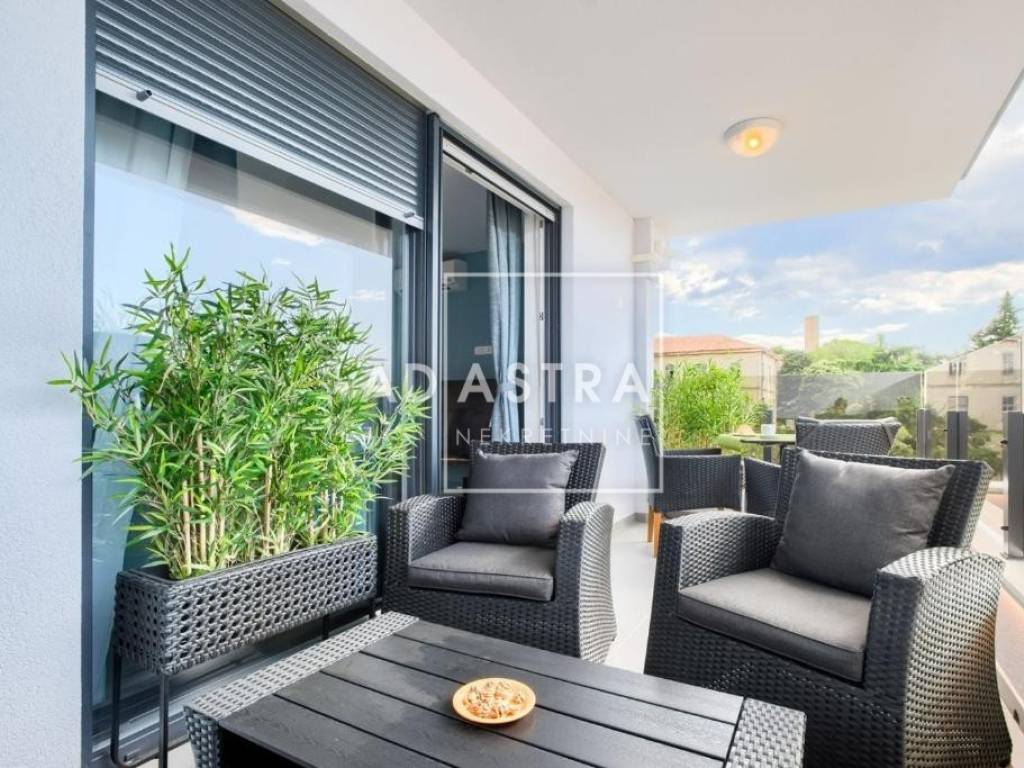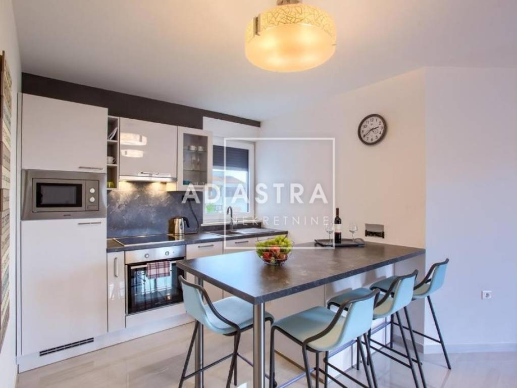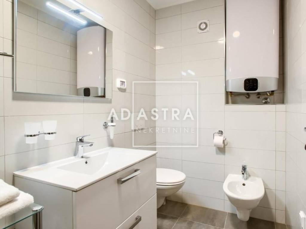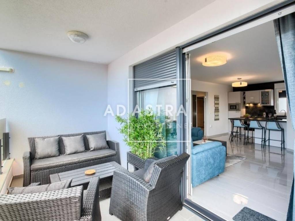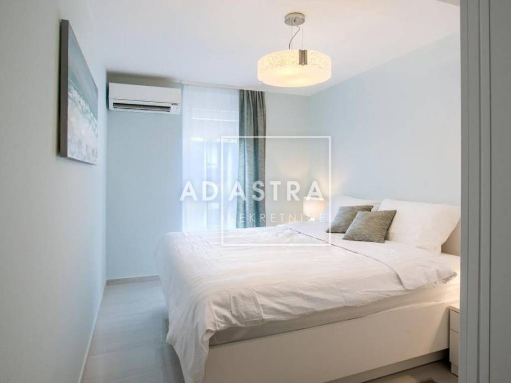 Heating and cooling are provided by two air conditioning units - one in the bedroom and the other in the living area. The apartment is also equipped with quality PVC joinery with roller shutters and mosquito nets and is sold fully furnished. The price of the apartment includes one covered parking space in the garage and an additional storage room/flat terrace with its own locked entrance. The ownership is neat (1/1), without encumbrances, while the purchase of the apartment is possible exclusively in cash.
