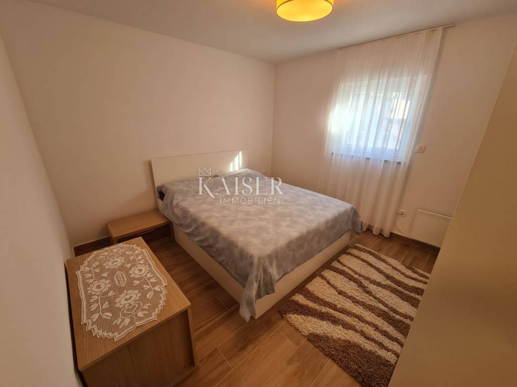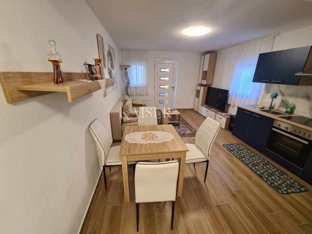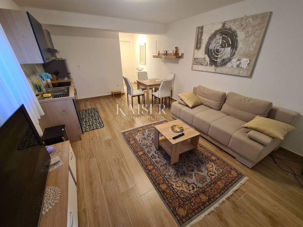 Kaiser Immobilien puts on the market a furnished apartment in the basement, located in a newly built residential building with 2 apartments, only 300 m from the sea. The apartment is located in the basement and consists of a bedroom, a bathroom, and a living room - kitchen, dining room and living room. An additional feature of this facility is the closed loggia of 25 m2, which can be opened if necessary. There are also two parking spaces at the entrance. The apartment is sold fully equipped with quality furniture and harmonious details that make it the right choice even for the most demanding. Beach: 300 m Shop: 150 m Airport: 10 km Restaurants: 3 km
