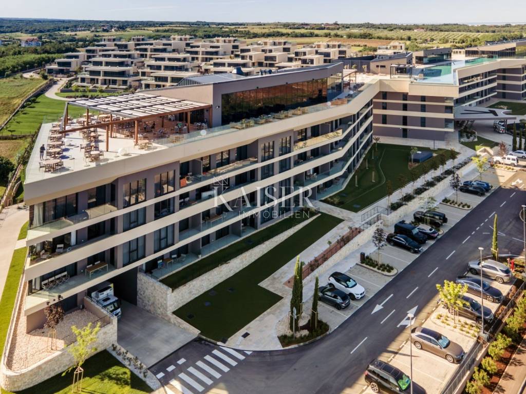 Savudrija, a quiet fishing village in the very north of Croatian Istria, is a carefully guarded secret of the Mediterranean. It is famous for the oldest active lighthouse in this part of the Adriatic, and is an ideal place to relax body and soul. Quiet and peaceful, perfect for an escape from everyday life, and at the same time rich in amenities and activities that will turn your vacation into an exciting adventure. Discover numerous wine roads, top-notch sports and cultural facilities, olive oil roads and romantic Istrian medieval towns. Laid by the waves of the Adriatic, in the shade of rich fragrant vegetation and with a view that takes your breath away, there is a luxury resort. Built to the highest standards and equipped with all the services and additional amenities you could wish for, this resort offers the peace, quiet and luxury of your own property, while at the same time enjoying a service that will pamper you and allow you to have relaxed and unforgettable days of vacation. Here, the unlimited relaxation of staying in your own property is combined with top-notch services, and all you have to do is enjoy the amenities: Rooftop infinity pool of 105 m - the largest rooftop infinity pool in Europe. It provides you with a unique swimming experience with a stunning view of the Piran Bay and the Dolomite Alps. The central garden pool is a favorite choice for family relaxation because part of the pool is adapted to the depth of children and is ideal for playing. Right next to the resort is a beach where you can relax with the smell of the sea and the sound of the waves. Wellness: relax in the magical hands of wellness experts who will give you the right advice and provide a personalized ritual treatment after which you will feel reborn. Kaiser Immobilien presents you with beautiful and modern apartments perfectly integrated into the Mediterranean climate. High construction standards allow you to immerse yourself in the resort's offer, while at the same time ensuring complete privacy, luxury and peace intended only for you and your loved ones. Priority use of all services in the resort is ensured at all times. New materials, fresh design ahead of trends, sustainable construction, aromatic Mediterranean horticulture and unobstructed views, combined with an innovative concept of real property maintenance and management, with service worthy of a five-star hotel. The care of the property can be completely left to the resort, which ensures a carefree holiday, and as an upgrade and return on investment. You and your money are safe here - all you have to do is enjoy. Opt for one of the luxury apartments. You can choose the size of the apartment, the style of interior decoration and the type of maintenance. After that, you can relax and enjoy. Investing in an apartment in a resort is an investment in a carefree, hedonistic holiday for the whole family. Services and facilities at your disposal: • 24-hour supervision • maintenance service • concierge • transfers (by road or sea) from Venice, Pula, Rijeka and Trieste • on-site caretaker • electric buggy - free transport to the nearby beach • electric car charging station • restaurants and cafes by the pool on the ground • gym and sports facilities • on-site shopping • luxury restaurant on the roof terrace of the aparthotel (main building) • wellness & SPA • swimming pools with children's facilities • children's playground • babysitting service on request • private chef service on request • 101m long infinity pool on the roof terrace level • indoor pool area on the roof terrace level • private beach with bar • ground-level pool (garden pool) • children's pool on the ground level We highlight the professional 18-hole Adriatic golf course located in the immediate vicinity, by the sea, and the construction of another golf course is in preparation. We present the one-bedroom apartment C35 with an area of 64m2. The apartment consists of a living room and kitchen, bedroom, bathroom and balcony: your private luxurious piece of paradise. The apartment is located in building C, close to all the resort's facilities, especially the wellness and indoor pool located on the roof of building C. The apartment is sold furnished with modern and stylish furniture. Savudrija is located near several airports, the largest of which is Venice Airport. In addition, nearby airports are Ljubljana, Trieste, Pula and Rijeka, while Zagreb Airport is a 2.5-hour drive away. Savudrija is located 515 km from Vienna and 460 km from Milan. The property is subject to VAT, so the buyer does not pay the 3% real estate tax. The agency's commission for the buyer is 3% + VAT. The commission covers all services related to the purchase and is paid only in the case of purchasing a property, upon concluding the first legal act. If you want this luxury apartment in the resort to become your new home, please contact us. Damir Mlacović e-mail: damir@kaiser-immobilien.hr tel: +385-98-339-933