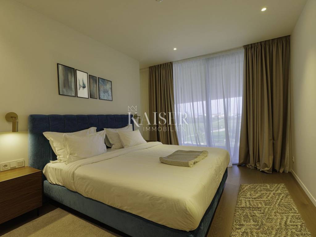 Savudrija, a quiet fishing village in the very north of Croatian Istria, is a carefully guarded secret of the Mediterranean. It is famous for the oldest active lighthouse in this part of the Adriatic, and is an ideal place to relax body and soul. Quiet and peaceful, perfect for an escape from everyday life, and at the same time rich in amenities and activities that will turn your vacation into an exciting adventure. Discover numerous wine roads, top-notch sports and cultural facilities, olive oil roads and romantic Istrian medieval towns. Laid by the waves of the Adriatic, in the shade of rich fragrant vegetation and with a view that takes your breath away, there is a luxury resort. Built to the highest standards and equipped with all the services and additional amenities you could wish for, this resort offers the peace, quiet and luxury of your own property, while at the same time enjoying a service that will pamper you and allow you to have relaxed and unforgettable days of vacation. Here, the unlimited relaxation of staying in your own property is combined with top-notch services, and all you have to do is enjoy the amenities: Rooftop infinity pool of 105 m - the largest rooftop infinity pool in Europe. It provides you with a unique swimming experience with a stunning view of the Piran Bay and the Dolomite Alps. The central garden pool is a favorite choice for family relaxation because part of the pool is adapted to the depth of children and is ideal for playing. Right next to the resort is a beach where you can relax with the smell of the sea and the sound of the waves. Wellness: relax in the magical hands of wellness experts who will give you the right advice and provide a personalized ritual treatment after which you will feel reborn. Kaiser Immobilien presents you with beautiful and modern apartments perfectly integrated into the Mediterranean climate. High construction standards allow you to immerse yourself in the resort's offer, while at the same time ensuring complete privacy, luxury and peace intended only for you and your loved ones. Priority use of all services in the resort is ensured at all times. New materials, fresh design ahead of trends, sustainable construction, aromatic Mediterranean horticulture and unobstructed views, combined with an innovative concept of real property maintenance and management, with service worthy of a five-star hotel. The care of the property can be completely left to the resort, which ensures a carefree holiday, and as an upgrade and return on investment. You and your money are safe here - all you have to do is enjoy. Opt for one of the luxury apartments. You can choose the size of the apartment, the style of interior decoration and the type of maintenance. After that, you can relax and enjoy. Investing in an apartment in a resort is an investment in a carefree, hedonistic holiday for the whole family. Services and facilities at your disposal: • 24-hour supervision • maintenance service • concierge • transfers (by road or sea) from Venice, Pula, Rijeka and Trieste • on-site caretaker • electric buggy - free transport to the nearby beach • electric car charging station • restaurants and cafes by the pool on the ground • gym and sports facilities • on-site shopping • luxury restaurant on the roof terrace of the aparthotel (main building) • wellness & SPA • swimming pools with children's facilities • children's playground • babysitting service on request • private chef service on request • 101m long infinity pool on the roof terrace level • indoor pool area on the roof terrace level • private beach with bar • ground-level pool (garden pool) • children's pool on the ground level We highlight the professional 18-hole Adriatic golf course located in the immediate vicinity, by the sea, and the construction of another golf course is in preparation. We present an apartment (A42) with two bedrooms, measuring 114m2, located on the third floor. The apartment consists of a living room and kitchen, two bedrooms, two bathrooms, a toilet, a laundry room and a spacious balcony. The apartment is located in building A, close to all the resort's facilities, especially the impressive outdoor infinity pool located on the roof of building A. The apartment is sold equipped with modern and stylish furniture. Savudrija is located near several airports, the largest of which is Venice Airport. In addition, nearby airports are Ljubljana, Trieste, Pula and Rijeka, while Zagreb Airport is a 2.5-hour drive away. Savudrija is located 515 km from Vienna and 460 km from Milan. The property is subject to VAT, so the buyer does not pay the 3% real estate tax. The agency's commission for the buyer is 3% + VAT. The commission covers all services related to the purchase and is paid only in the case of purchasing a property, upon concluding the first legal act. If you want this luxury apartment in the resort to become your new home, please contact us. Damir Mlacović e-mail: damir@kaiser-immobilien.hr tel: +385-98-339-933