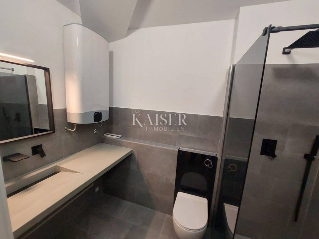 Kaiser Immobilien agency offers an apartment in Veli Vrh, an attractive and rapidly growing part of Pula. Pula is, in addition to being a tourist destination, an urban city and the main Istrian port. It is located in the southwestern part of the Istrian peninsula, and impresses with its history and well-preserved monuments from the Roman era. Veli Vrh is a part of the city that is developing extremely quickly, and is becoming an attractive part that provides all the conditions for quality living and living. The apartment is located at the very entrance to the city, 400 m from the sea, on the second floor of a building with an elevator, close to all the amenities needed for family life. Upon entering the apartment, a view opens up to the open space living area consisting of a kitchen, dining room and living room with a gallery measuring 32.9 m2, from which you can exit to an elegant closed loggia that can be used regardless of the weather. The apartment has two bedrooms, both of which share a common loggia, and one has its own bathroom. The apartment has another bathroom and a hallway, as well as its own parking space. It is equipped with aluminum locks and security doors, quality ceramics and a modern bathroom. This apartment is being sold as a share of the building's floor, because the floor has been converted from a business to a residential area. Pula center: 4 km Pula Airport: 9 km Zagreb Airport: 270 km Ljubljana: 199 km Vienna, Munich: 600 km The agency commission for the buyer is 3% + VAT, and is paid only when selling the property, when signing the first legal act. For all further information, please contact: Marijana Cuculić Phone: + 385 98 186 9950 E-mail: marijana.cuculic@kaiser-immobilien.hr