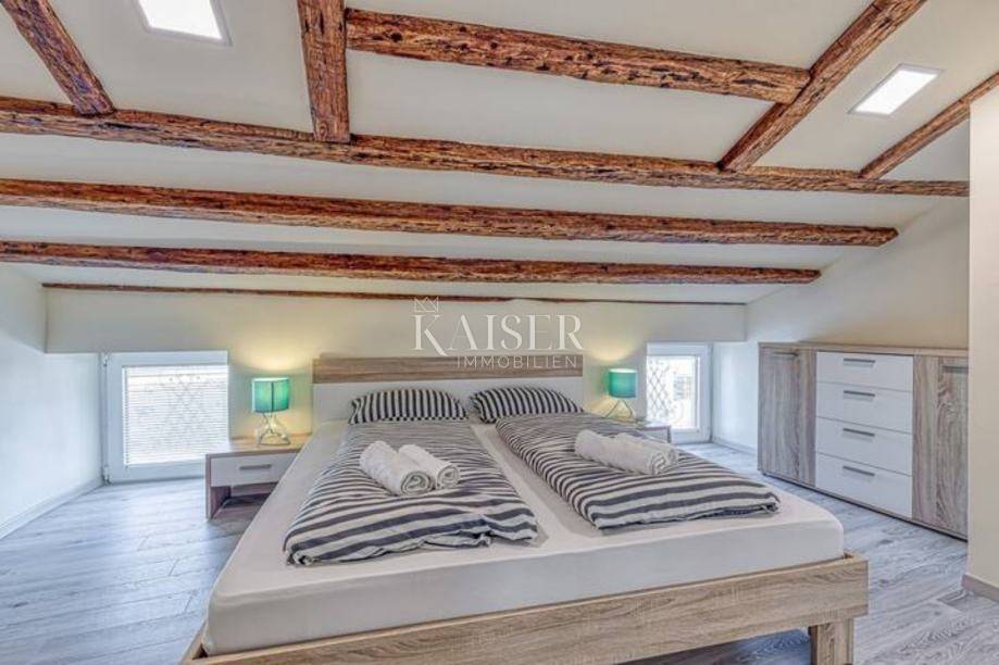 Kaiser Immobilien is selling a modern, completely renovated apartment of 50 m², located in the very heart of the old town of Poreč, in an extremely attractive location just 10 meters from the sea and the promenade, with an open view of the island of Sveti Nikola. The apartment is located in the attic of the building on the 3rd floor, and consists of: -one bedroom with a double bed -living room with a sofa bed -equipped kitchen with dining area -bathroom with shower -balcony with panoramic sea view The property is fully air-conditioned, modernly decorated, bright and airy, suitable for living throughout the year. The apartment is ideal for personal use, as well as for tourist rental, which makes it an excellent investment. The apartment is located in one of the most desirable locations in Poreč - within the historic core of the old town, where everything you need is literally at your fingertips. Within a few minutes' walk there are top restaurants, charming cafes, local shops, souvenir shops, as well as a market with local products. In the immediate vicinity there are also numerous sights, such as the Euphrasian Basilica (UNESCO World Heritage Site), the old city walls, galleries and cultural attractions that form the core of historic Poreč. This location offers a unique combination of authentic Mediterranean atmosphere and everyday convenience of city center life. Ownership neat, 1/1 For additional information or viewing, please contact us: Dean Cvitko E-mail: dean.cvitko@kaiser-immobilien.hr Tel: +385915284449 http://kaiser-immobilien.hr/
