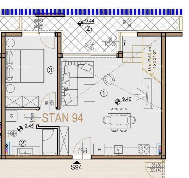 New on the market! We are selling apartments in Poreč. The building consists of two underground and three above-ground floors with galleries. The vision and goal of this project is to offer customers, users, and the City of Poreč a product that will enhance the quality of life through its design, functionality, and services, providing something more. This residential-commercial complex is of an open type, featuring underground garages, which will contribute to the increase in value and quality of services in this rapidly developing tourist destination. This apartment extends from the third floor to the gallery. The two-level apartment on the first floor has one bedroom, a kitchen with a dining area, a bathroom, a loggia, and a staircase leading to the second floor, where there is a hallway with stairs, a bathroom, a bedroom, and a rooftop terrace. The total net area of the apartment is 96.71 m². The purchase of a parking space is mandatory at a price of €35,875 (tax included), as well as a storage room. THE BUYER IS EXEMPT FROM PAYING TAX! We are accepting reservations and are at your service for any questions. +385 91 611 5706 azra@almadominvest.com +385 98 420 885
