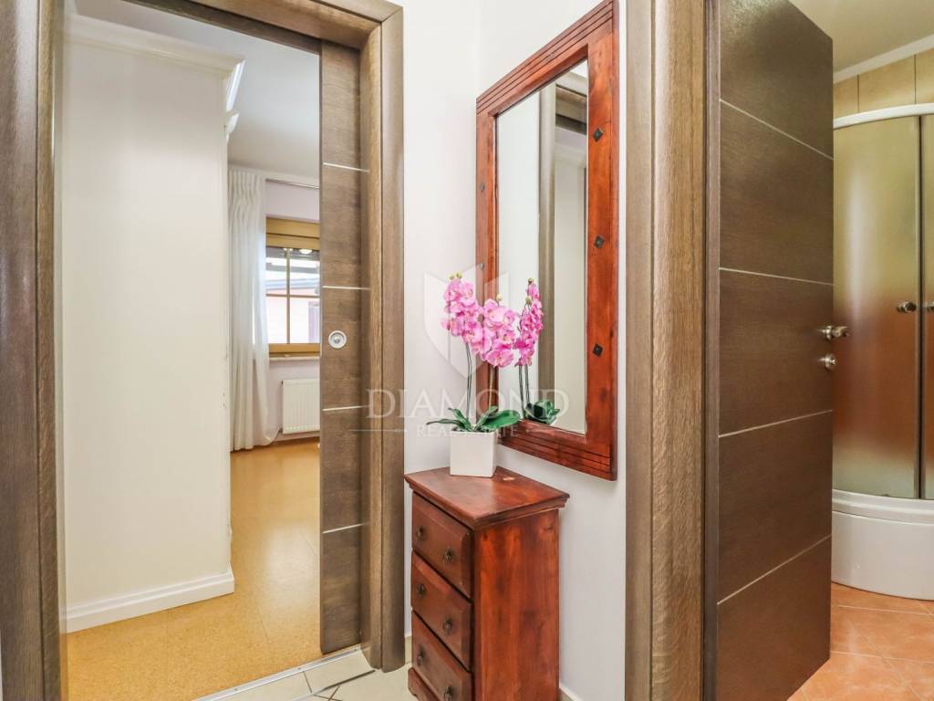 Pula, Istria This spacious building with three physically completely separate apartments and a large basement is for sale. All apartments are fully decorated, equipped and furnished. The town is air-conditioned, PVC joinery has been installed everywhere. The apartments also have fireplaces and radiators and radiators have been installed throughout the building, the only thing missing is a heat source or connection to city gas. The first apartment is a completely renovated, modern, two-story apartment with an exit to the terrace on the ground floor and an adjoining garden. On the ground floor there is a living room, a kitchen with a dining room and a toilet, while on the first floor there are 2 bedrooms and a bathroom. The second apartment is also a two-story apartment that extends from the first floor to the second floor. It consists of a living room, kitchen and dining room, 3 bedrooms, bathroom and toilet and a large covered terrace. The third apartment is completely on the ground floor, it also has a terrace and part of the garden with a barbecue. The rooms in the apartment consist of a living room, kitchen, dining room, bedroom and bathroom. Within the building there is a large basement with a separate decorated tavern. The rest of the basement has a tool room, a storage room and a technical room. The basement also has a separate entrance from the back of the house for added convenience. The building is in excellent condition, all rooms are spacious and the building itself is located in a prime location, one of the most sought-after locations in Pula. The surroundings are quiet and close to all facilities.