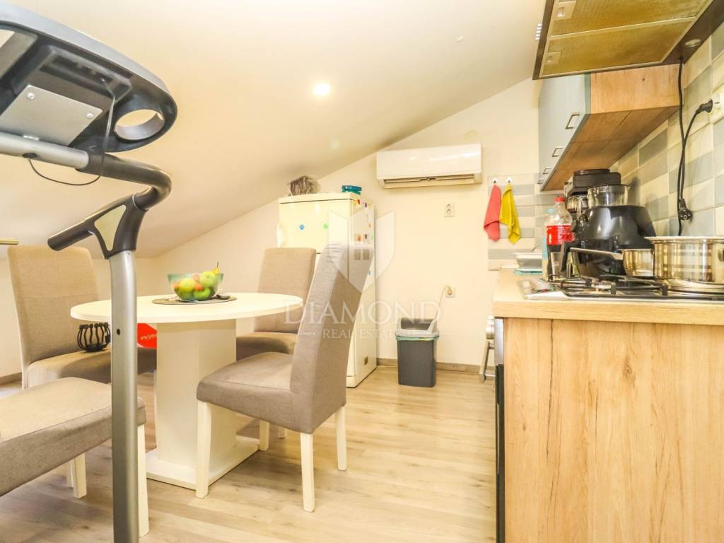 Located in one of the most desirable locations in Pula, this charming apartment is only 50 meters from the famous Arena. The apartment is located on the second and last floor of the building, providing a unique atmosphere of living in the attic.