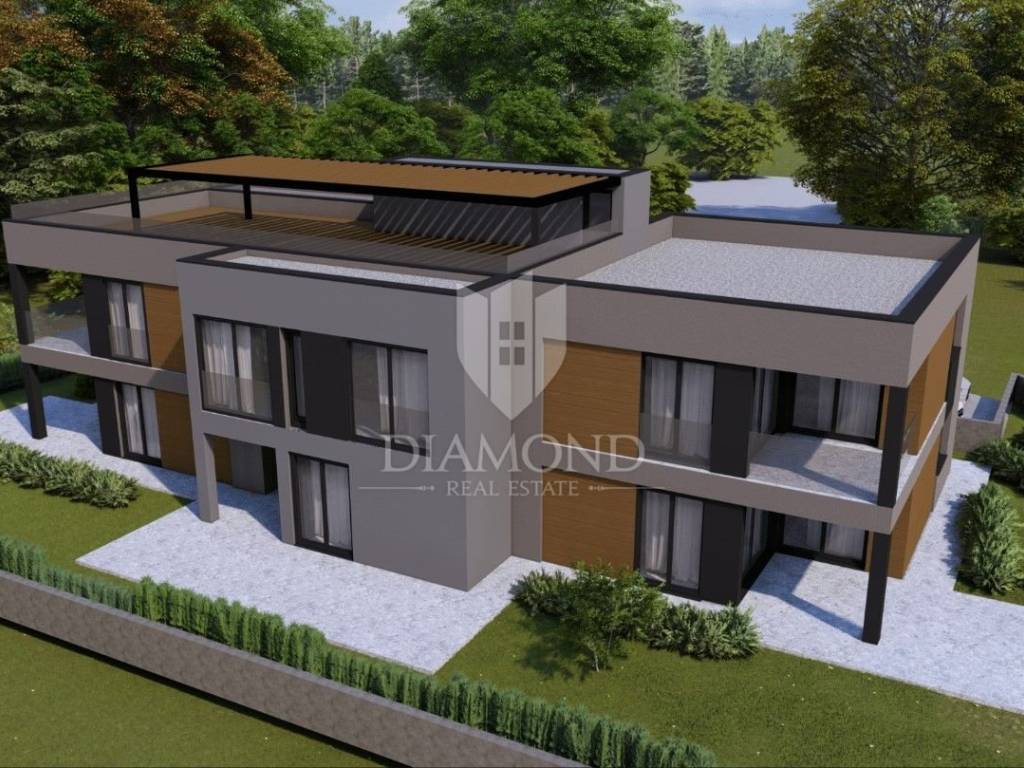 Located in a quiet neighborhood near Poreč, this elegant new development under construction offers contemporary design and top-quality living. Surrounded by greenery and family homes, the location provides privacy and tranquility while maintaining quick access to the city and the coast.
