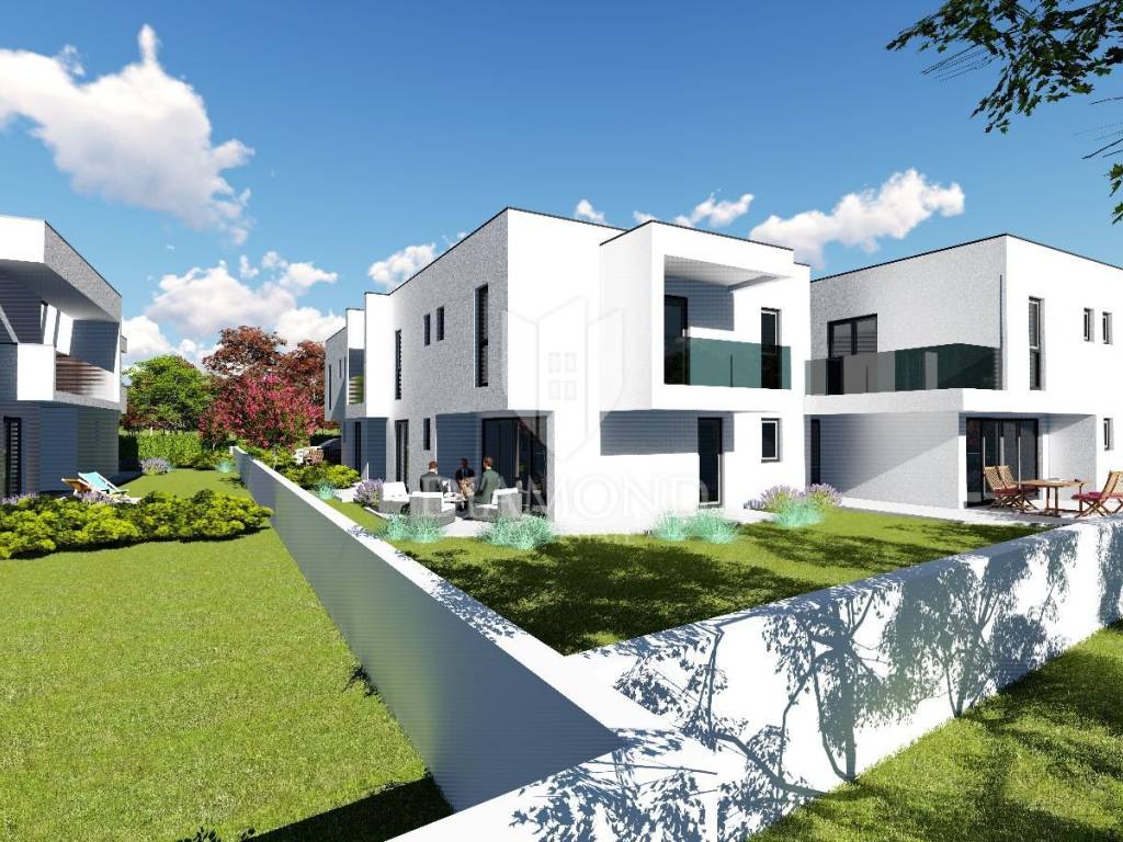 The house extends over two floors, with a total area of 167 m2 with terraces. On the ground floor there is a living room with an open-plan kitchen and dining room, 1 bedroom with its own bathroom, a hallway, a storage room and a toilet with a laundry room. From the living room there is access to a covered terrace, from which you can access the garden, where you can build a swimming pool if you wish. The first floor is accessed by an internal staircase where there is a bathroom and 3 bedrooms each with access to the terrace, 1 of which is a master bedroom with its own bathroom and dressing room. The house is built from high-quality building materials. Electric underfloor heating in the bathrooms and air conditioning for the rest of the house are planned. It has two parking spaces.