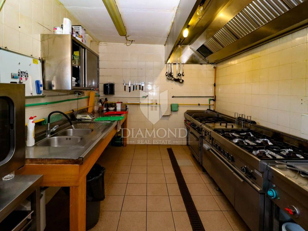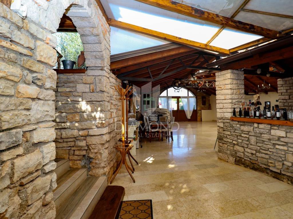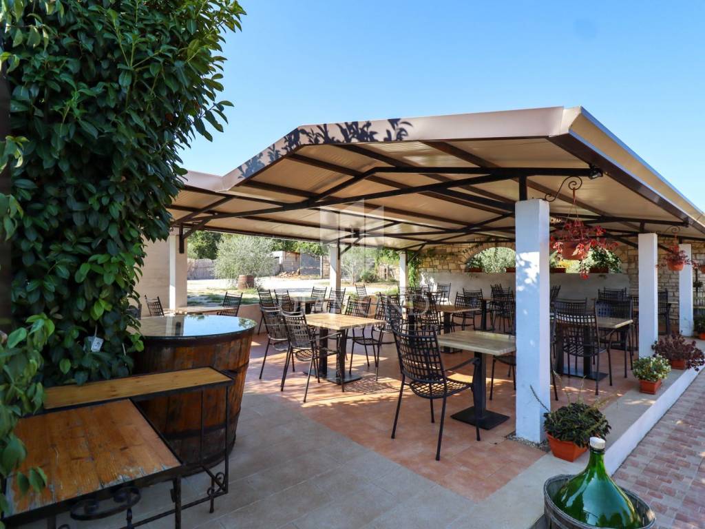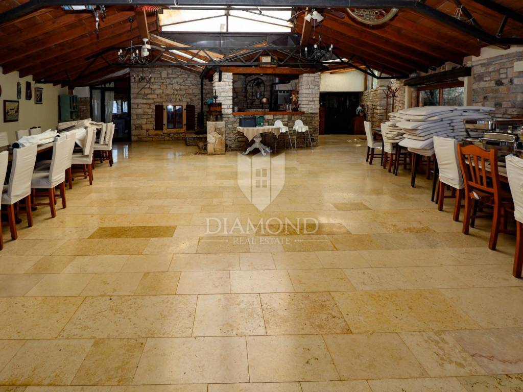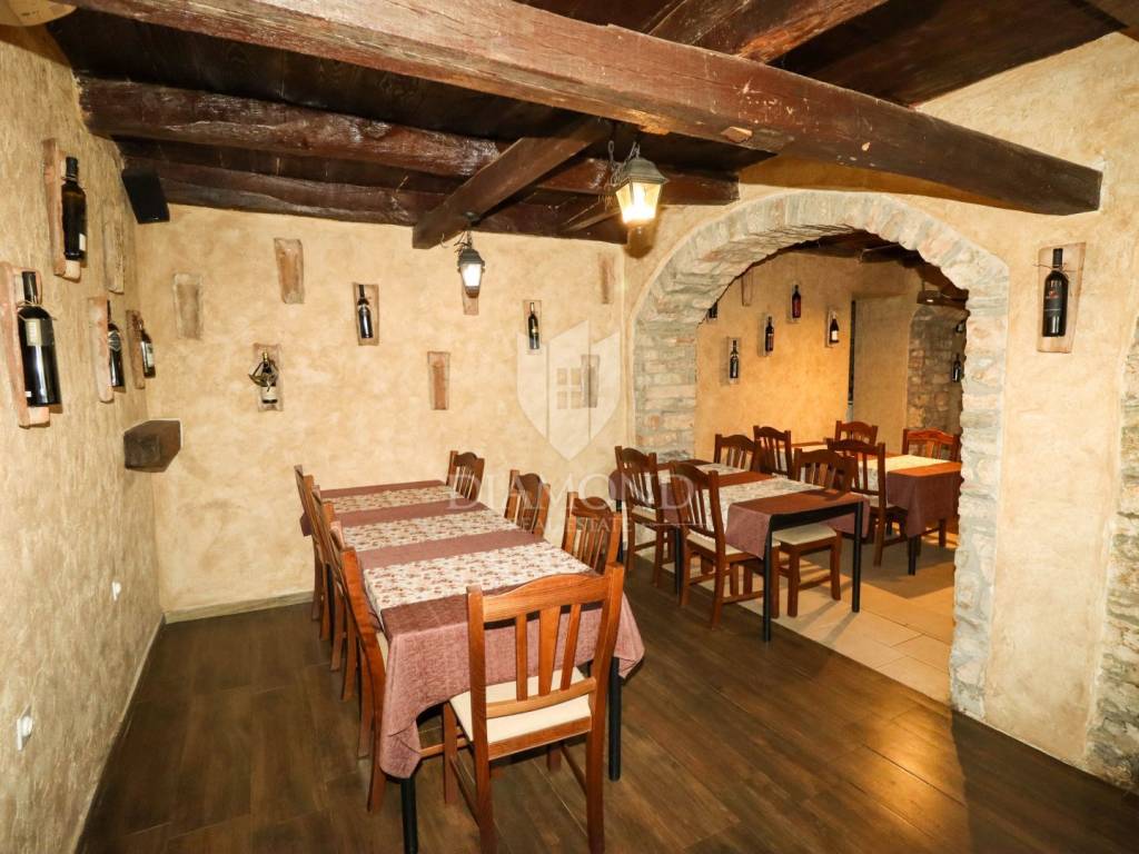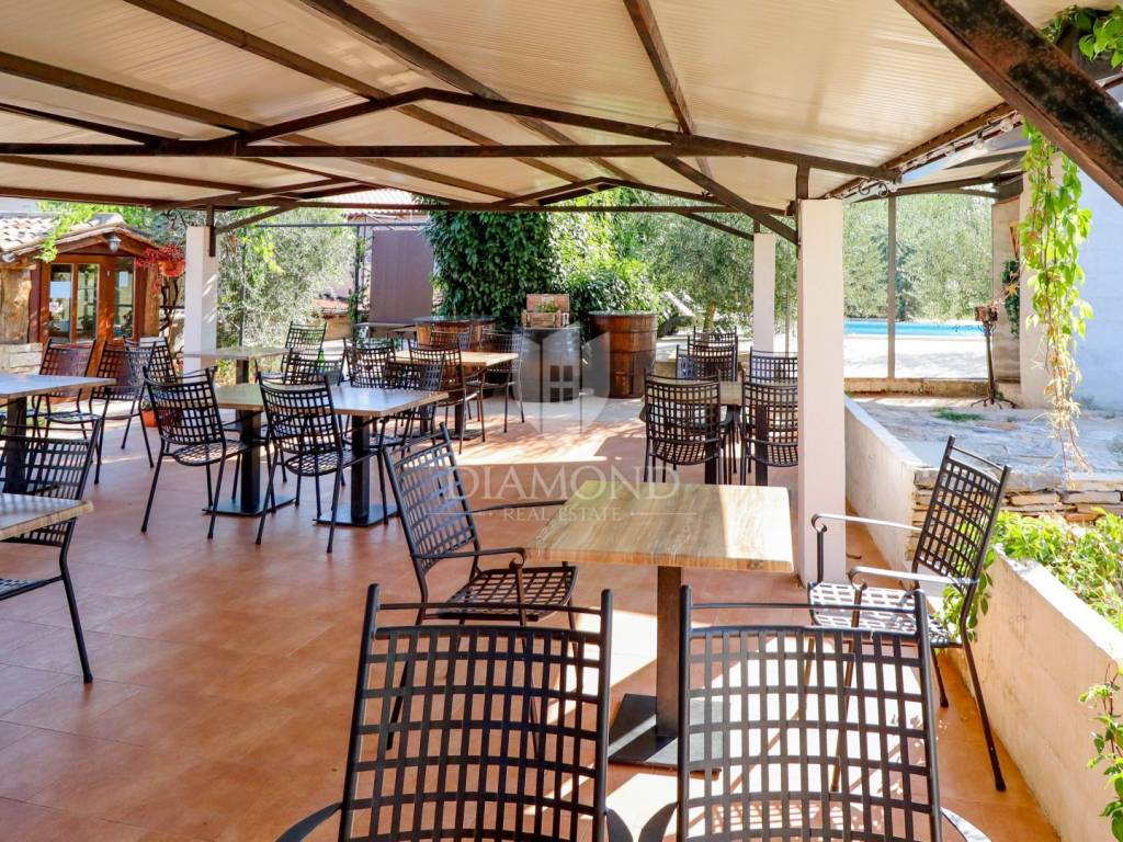 Konoba se sastoji od kuhinje sa skladištem i stražnjim ulazom za dostavu, šanka sa predprostorom, sanitarnim čvorom, unutarnje sale sa kaminom, prostrane unutarnje terase sa šankom, predivne vanjske terase uz koju se nalazi bazen sa sunčalištem. Sama lokacija nekretnine je na mirnom mjestu okružena sa prirodom.