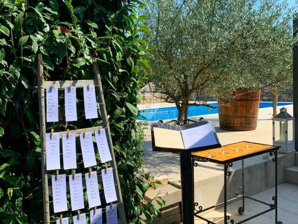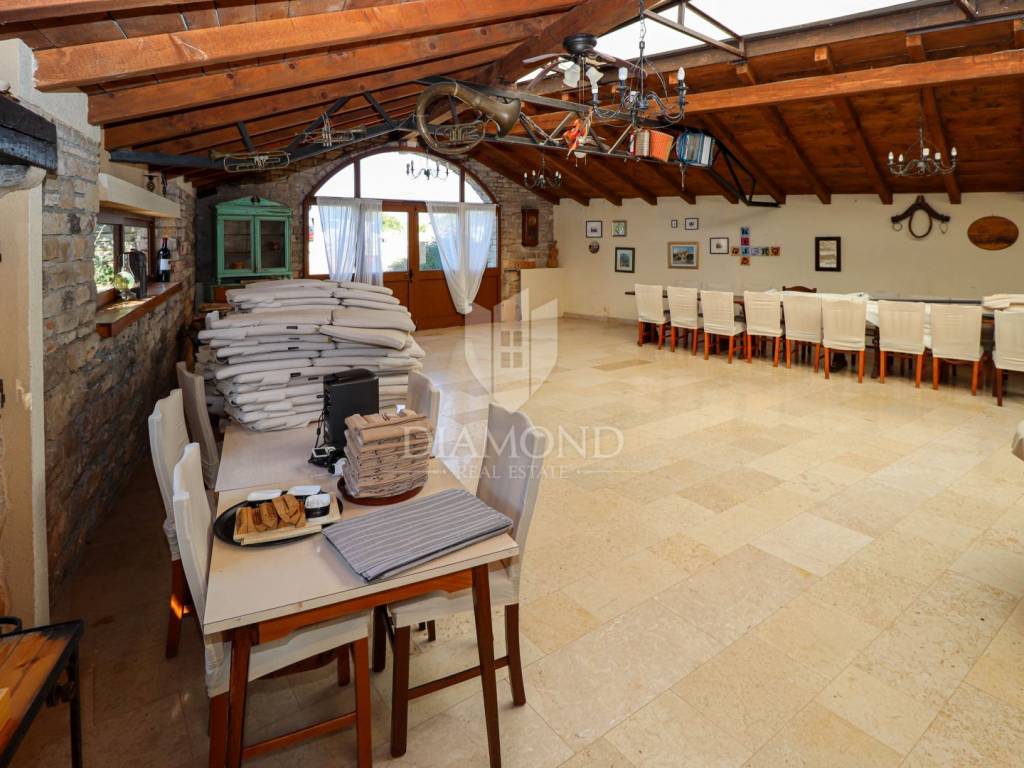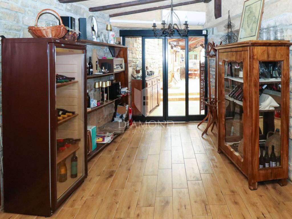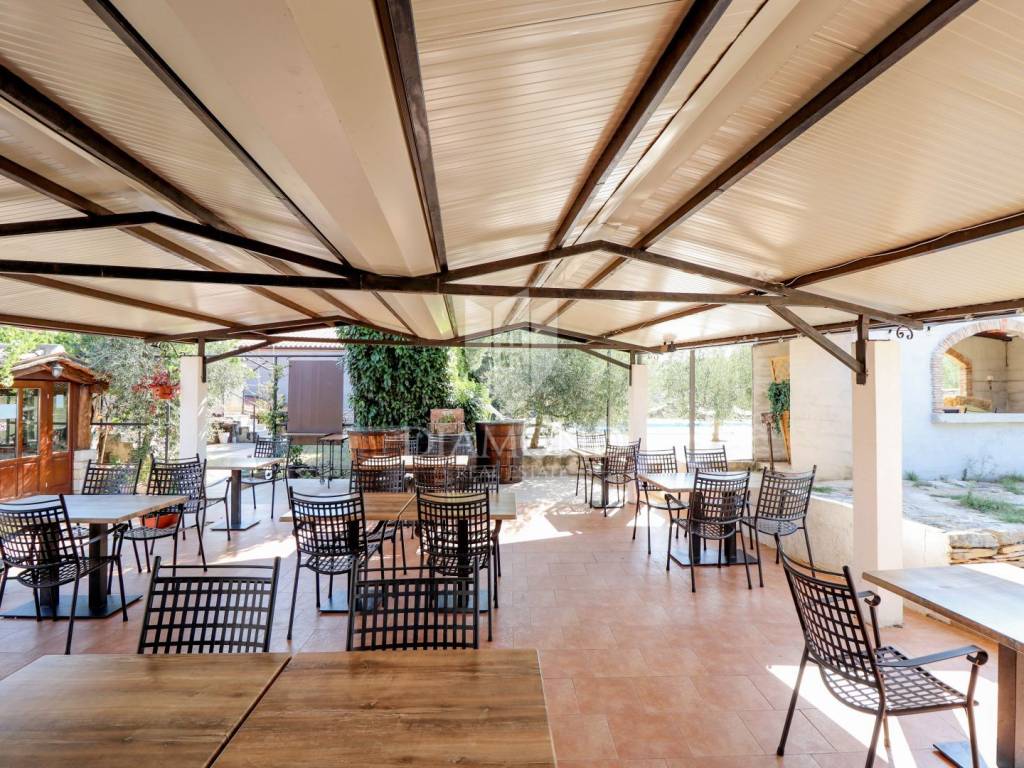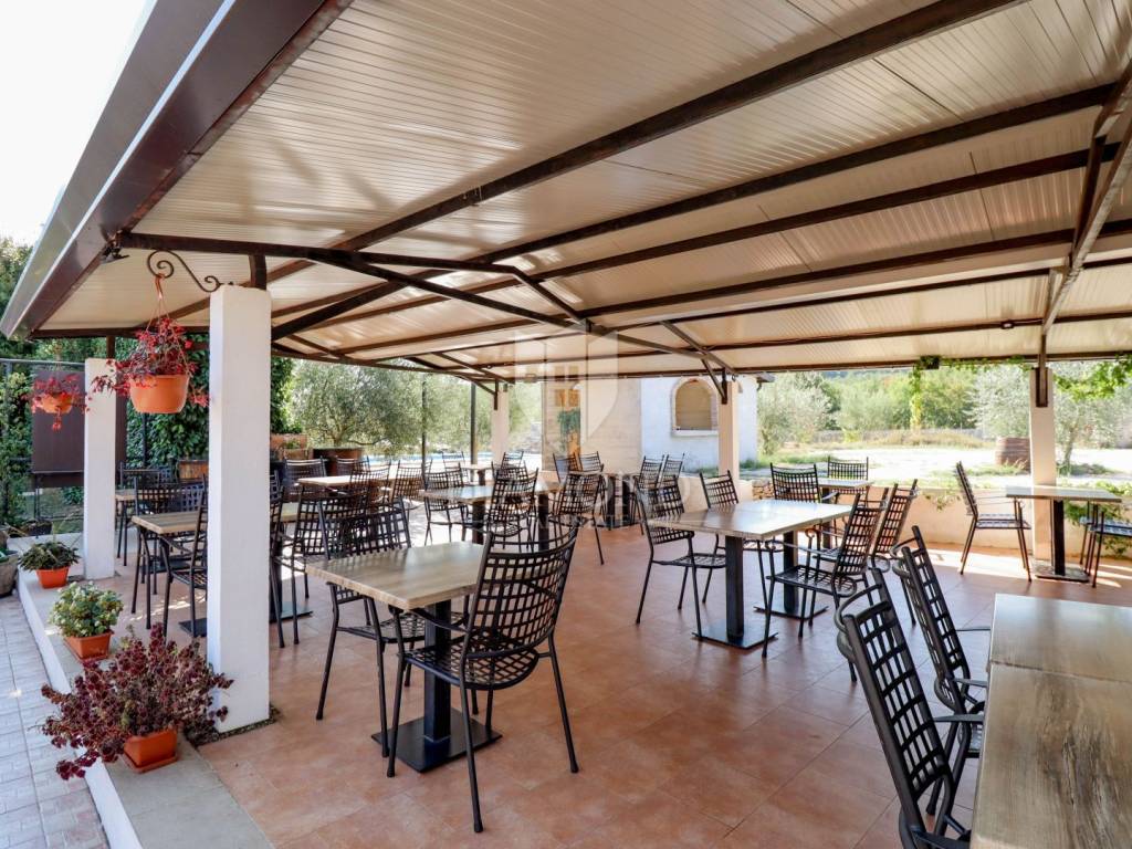 Konoba se sastoji od kuhinje sa skladištem i stražnjim ulazom za dostavu, šanka sa predprostorom, sanitarnim čvorom, unutarnje sale sa kaminom, prostrane unutarnje terase sa šankom, predivne vanjske terase uz koju se nalazi bazen sa sunčalištem. Sama lokacija nekretnine je na mirnom mjestu okružena sa prirodom.