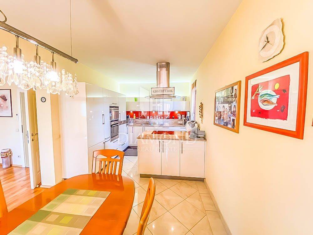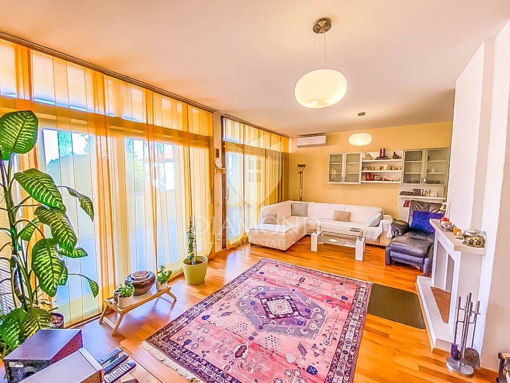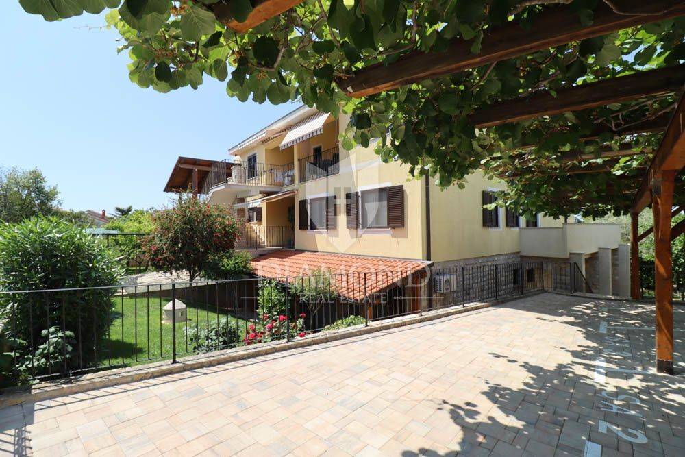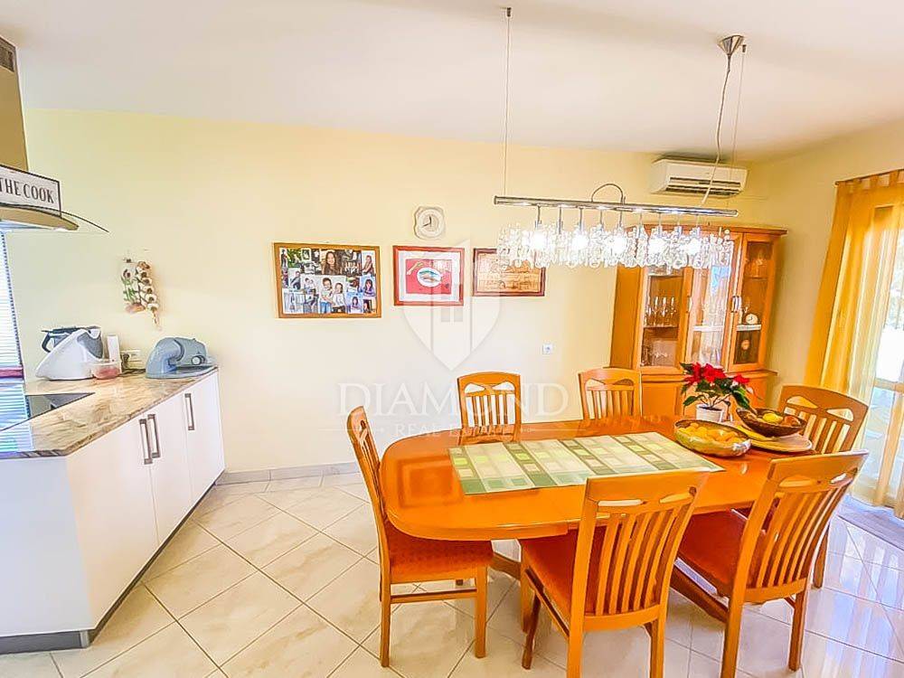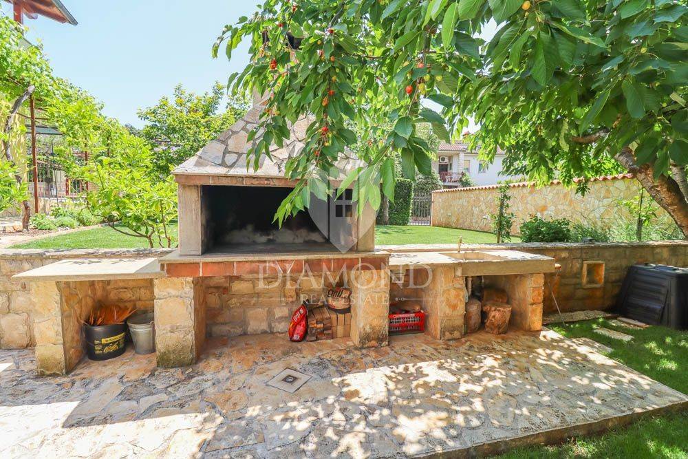 The special feature of this house is in the yard, which, in addition to 6 covered parking spaces and one garage, also has a beautiful lawn with automatic irrigation. The house is surrounded by numerous fruit trees, olive trees, vines and various flowers. It also contains a stone grill, a summer house under which there is an air-conditioned cellar with a wine cellar.