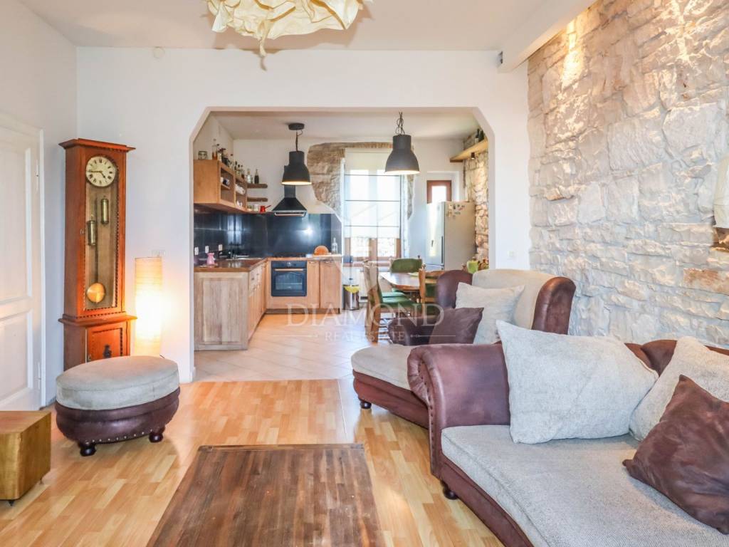 We present to you this unique apartment situated in a charming old villa in an excellent location in Rovinj. This spacious apartment, with a total area of 150 m², spans two levels.