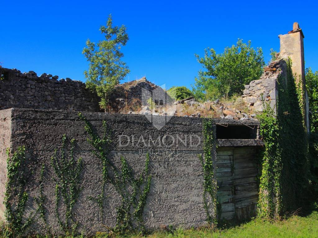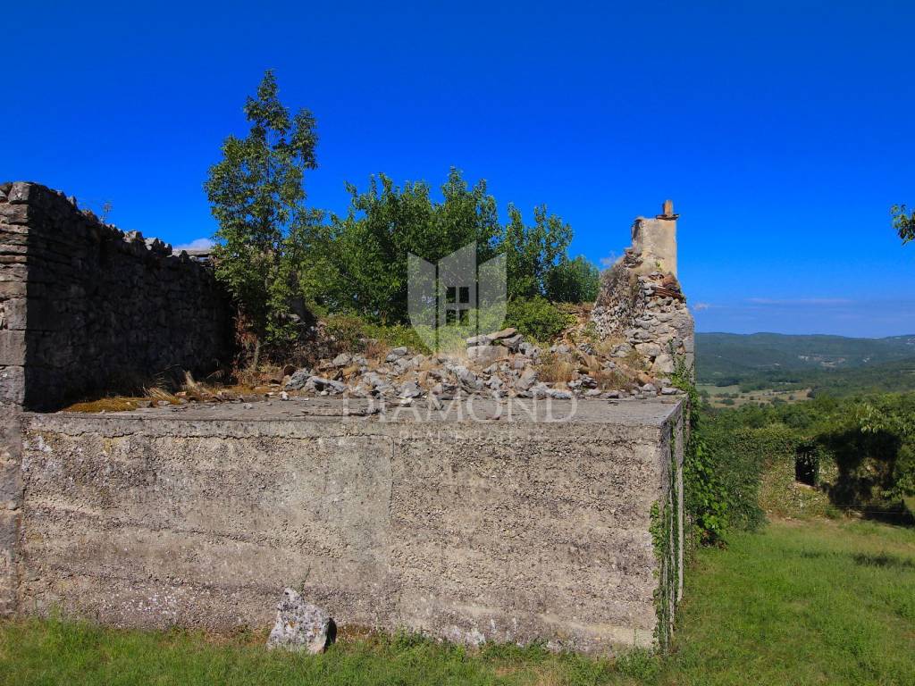 Boljun, old stone house for renovation We are selling an old house in the vicinity of Boljun, in a small quiet village. This antique has an area of 150 square meters, in front of the house there is another house on a plot of 112 square meters. The house has electricity and water connection on the plot. The house needs to be completely renovated. It is surrounded by nature and greenery. There are family houses in the vicinity, and the view extends to the old town of Boljun and spacious green meadows. Due to its location, the house is ideal for a quiet family life or for tourism.