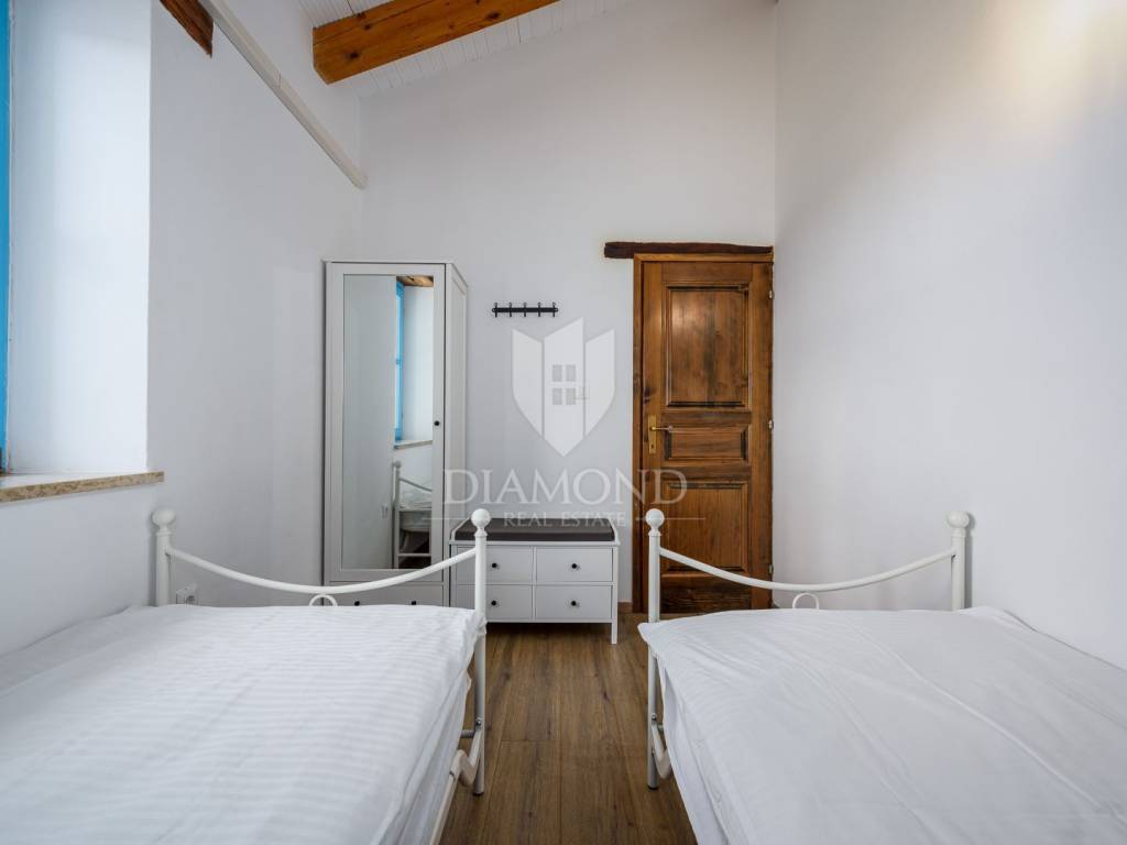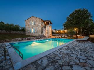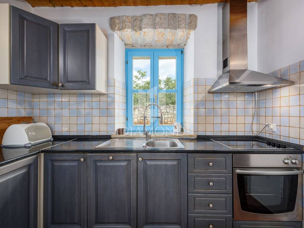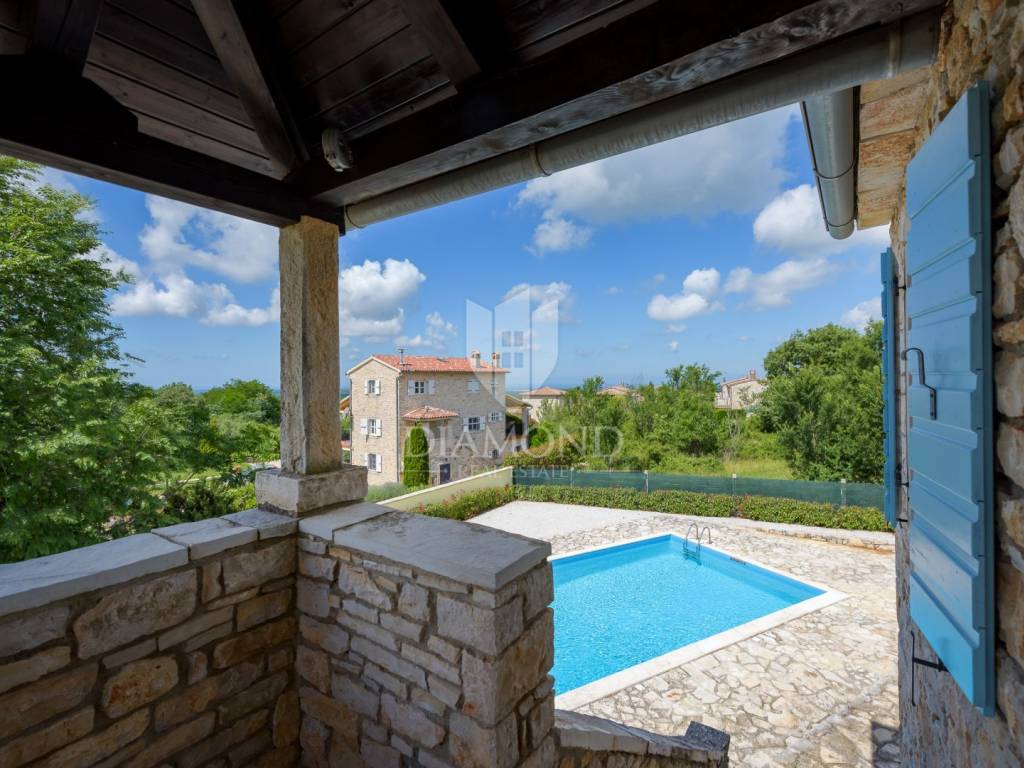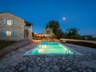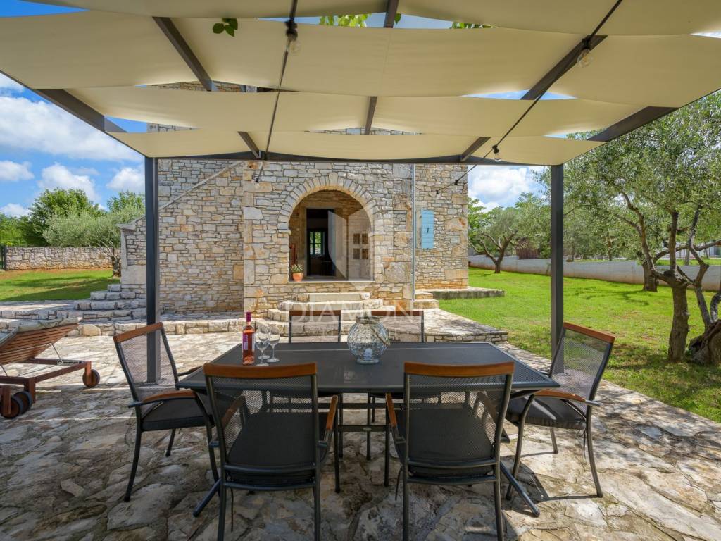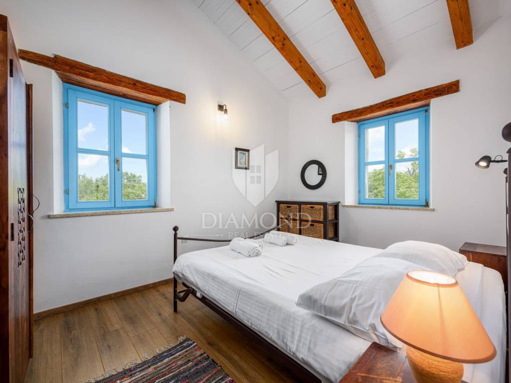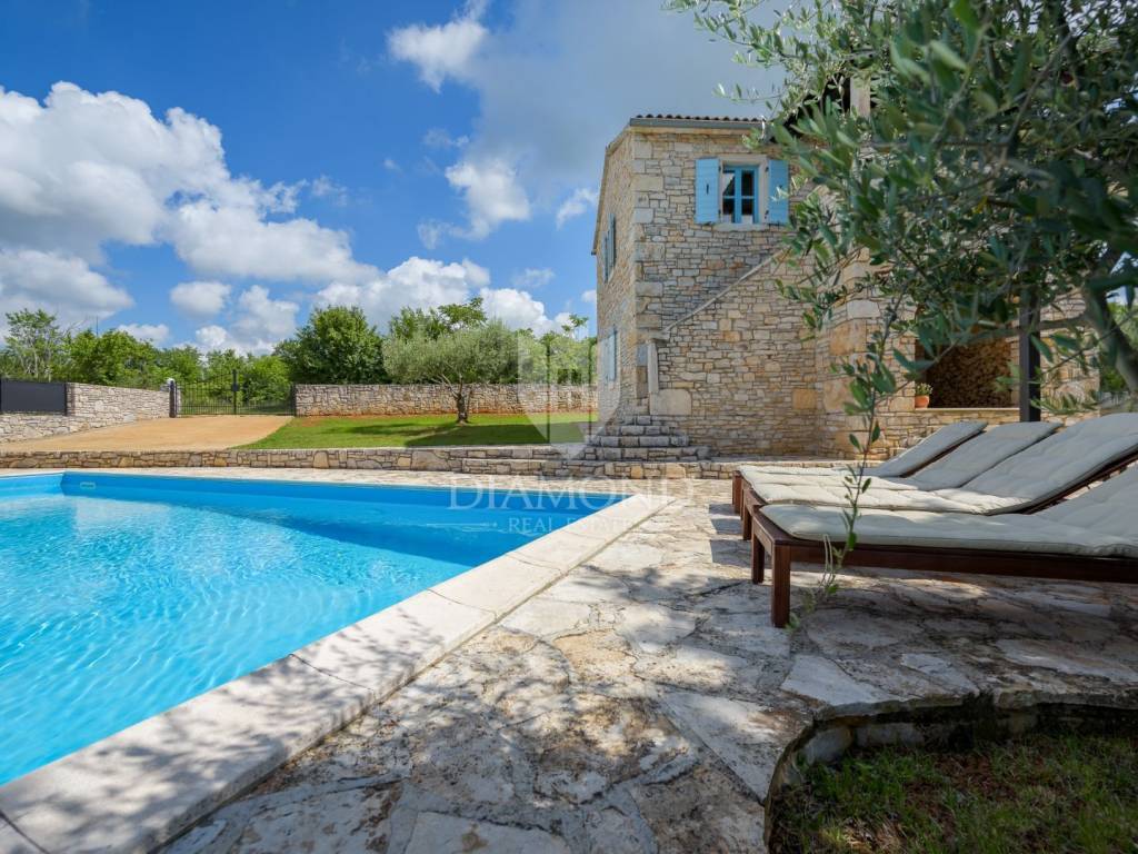Istrian autochthonous stone house with swimming pool, near Poreč! This beautiful Istrian stone house with a swimming pool is for sale. The house is located in a quiet place only fifteen minutes from the city of Poreč. Located on a spacious plot of 969 m2, the house offers 110 m2 of net living space on two floors. On the ground floor of the house there is a living room, a kitchen with a dining area and a guest toilet. We climb the spiral stairs to the first floor of the house where there are three bedrooms and a bathroom. On the first floor there is also a terrace connected by external stairs. The terrace offers a beautiful view of the surrounding landscape and the sea in the background. In the living room there is a wood-burning stove that creates a very pleasant and warm atmosphere on cold winter days. In addition, two new air conditioners for heating and cooling were installed in the house, one on each floor of the house. In the spacious fenced yard of the house, there is a swimming pool of size 11x5 meters, ideal for refreshing in the summer months. In the continuation of the yard next to the pool, there is a pergola for relaxing and staying in the shade on hot summer days. There is enough parking space for two cars in the yard of the house. Behind the house there is also a shed for wood and a storage room for garden maintenance tools. This charming stone house, located only a few minutes from all the necessary facilities for life, is a unique opportunity for family life as well as for investment in a tourist rental.