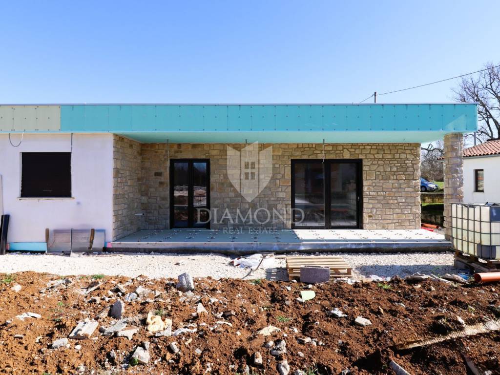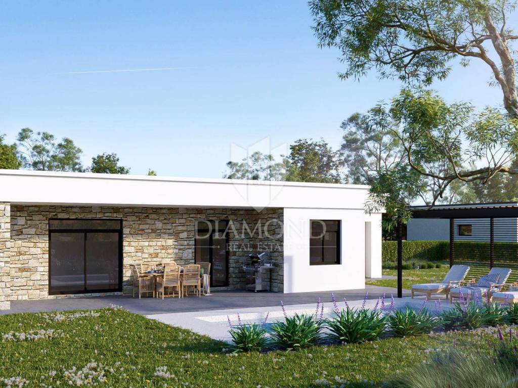 Modern single-storey house with swimming pool – 5 km from Poreč and the sea A new, modern single-storey house with a swimming pool is for sale in a quiet place near Poreč. This quality-built house offers 100 m² of carefully designed living space. The main area includes a kitchen with a dining room and a spacious living room, while below there are three bedrooms, the main one of which has its own bathroom. In addition, the house has another bathroom and a laundry room. The house is equipped with amenities that meet high standards of comfort and functionality, such as PVC joinery with triple glazing, underfloor heating throughout the house, preparation for air conditioning in each room (a 4.2 kW air conditioning unit is installed in the main area), blinds and mosquito nets on all windows, and preparation for solar heating and an electric car charger will be made. The outdoor area provides a pleasant environment for enjoying the 500 m2 garden. There is a covered terrace, and below there is a 7x3 m swimming pool with a machine room, ready for use. The house has four parking spaces. A property perfect for a relaxing family vacation or as an investment in a tourist rental The location is exceptional - close to all amenities and the city center, and at the same time a quiet environment ideal for a vacation, which is why this property is perfect for a relaxing family vacation or as an investment in a tourist rental. It is being sold turnkey, without furniture, and the move-in is scheduled for April 2025. The price includes VAT, which means that the buyer does not pay real estate tax! For additional information and viewing, please feel free to contact us!