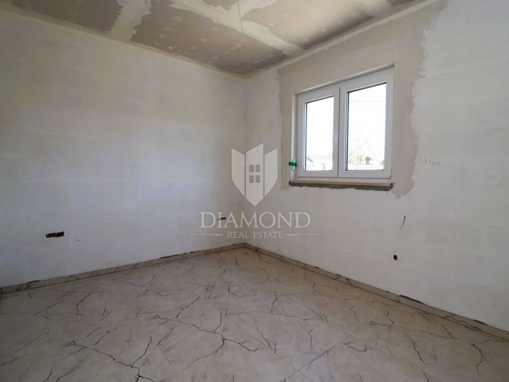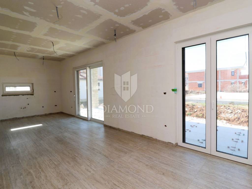 Modern single-storey house with swimming pool – 5 km from Poreč and the sea A new, modern single-storey house with a swimming pool is for sale in a quiet place near Poreč. This quality-built house offers 100 m² of carefully designed living space. The main area includes a kitchen with a dining room and a spacious living room, while below there are three bedrooms, the main one of which has its own bathroom. In addition, the house has another bathroom and a laundry room. The house is equipped with amenities that meet high standards of comfort and functionality, such as PVC joinery with triple glazing, underfloor heating throughout the house, preparation for air conditioning in each room (a 4.2 kW air conditioning unit is installed in the main area), blinds and mosquito nets on all windows, and preparation for solar heating and an electric car charger will be made. The outdoor area provides a pleasant environment for enjoying the 500 m2 garden. There is a covered terrace, and below there is a 7x3 m swimming pool with a machine room, ready for use. The house has four parking spaces. A property perfect for a relaxing family vacation or as an investment in a tourist rental The location is exceptional - close to all amenities and the city center, and at the same time a quiet environment ideal for a vacation, which is why this property is perfect for a relaxing family vacation or as an investment in a tourist rental. It is being sold turnkey, without furniture, and the move-in is scheduled for April 2025. The price includes VAT, which means that the buyer does not pay real estate tax! For additional information and viewing, please feel free to contact us!